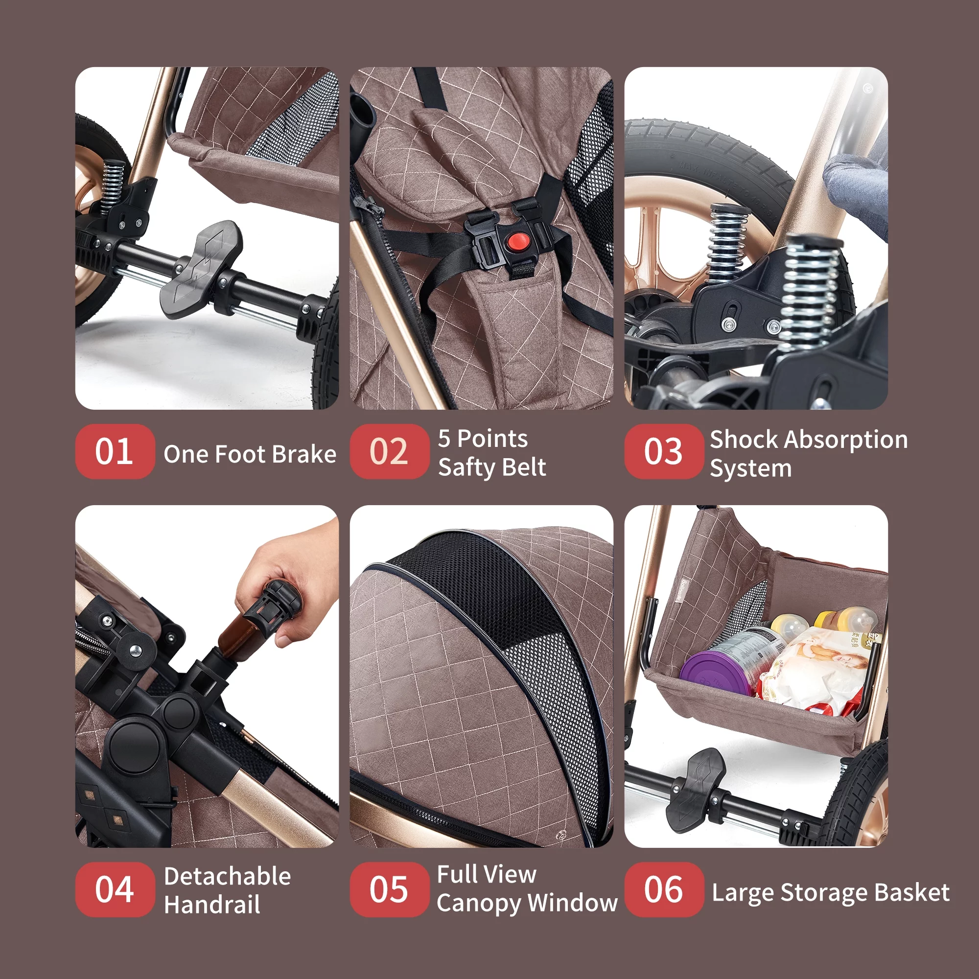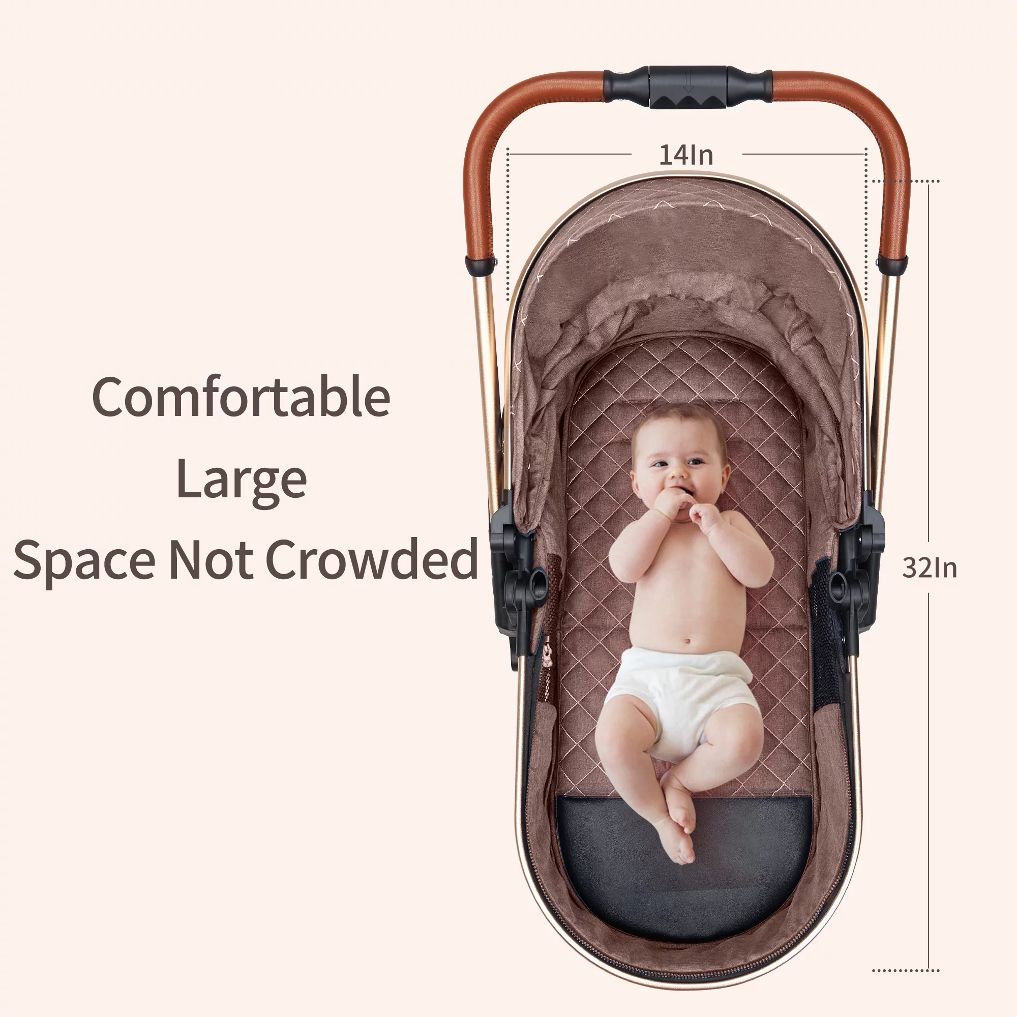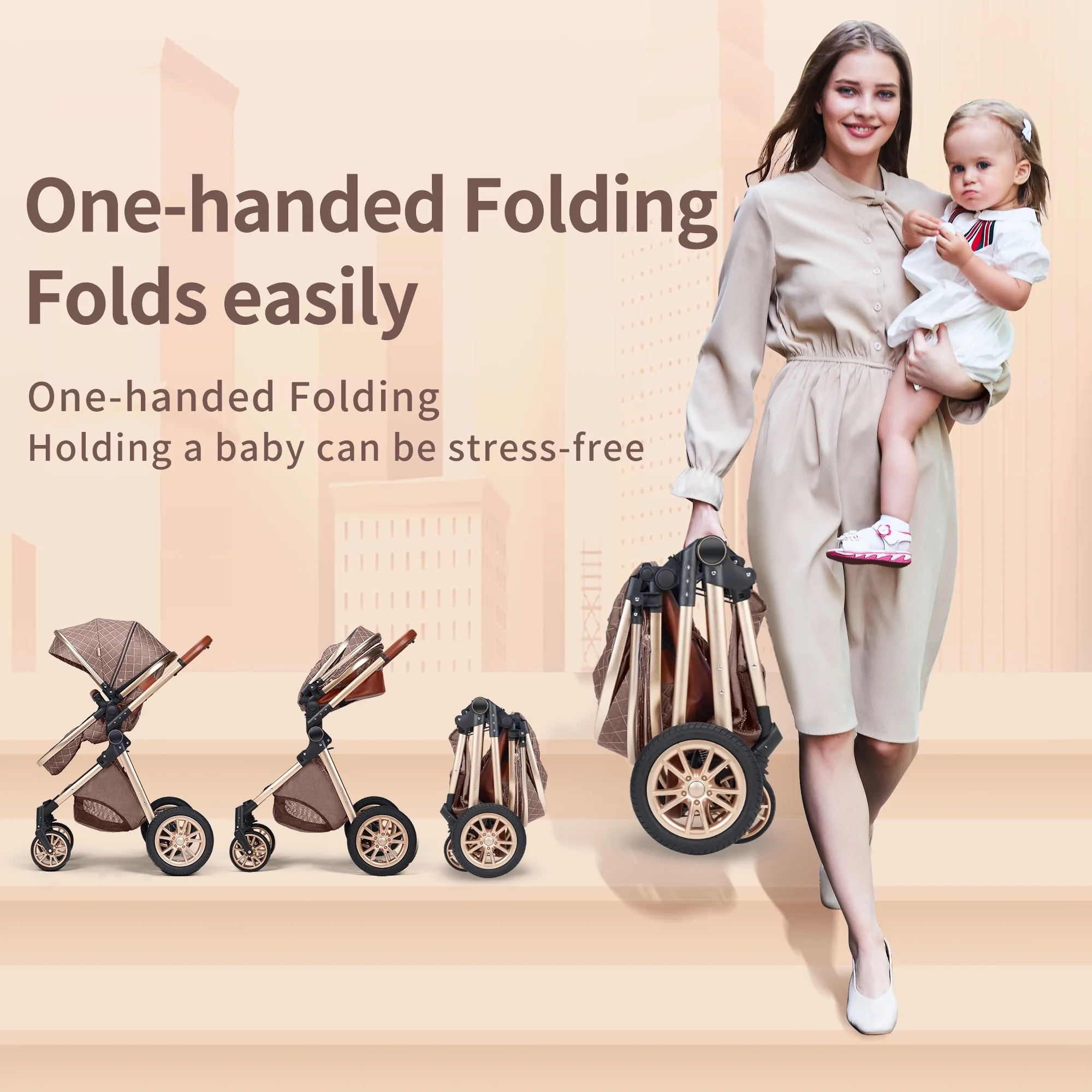 Luxury Pram High Landscape Baby Stroller Folding Pushchair for 0-36 Months Kids,Red