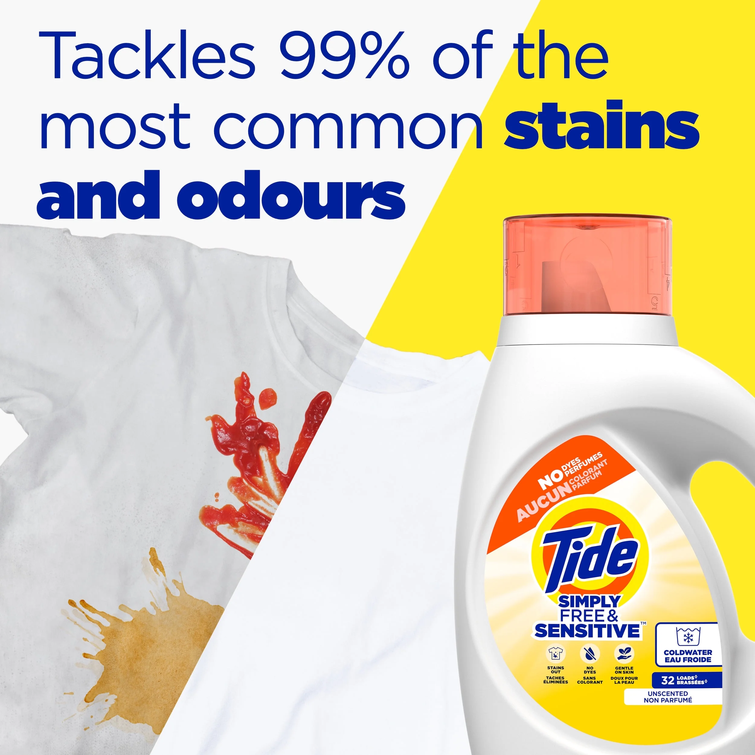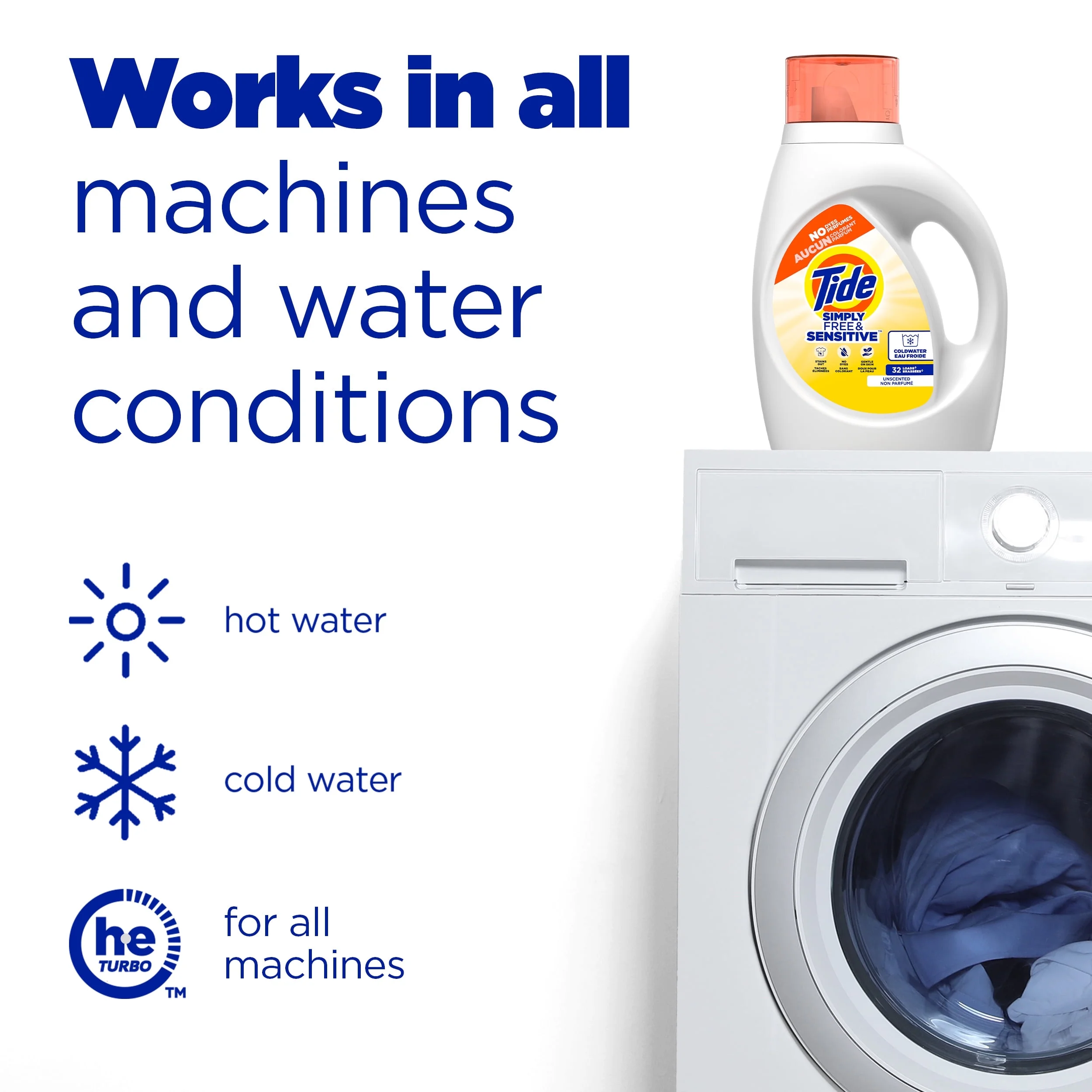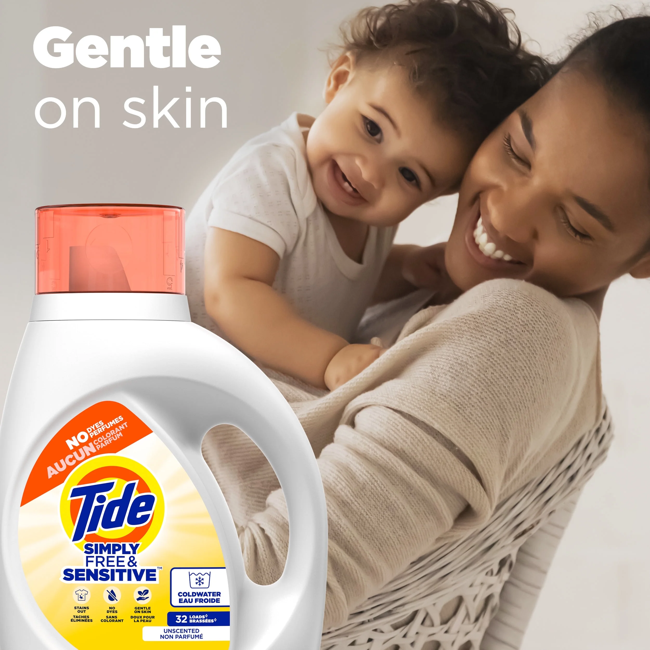 Tide Simply Liquid Laundry Detergent, Free & Sensitive, 32 fl oz, 24 Loads