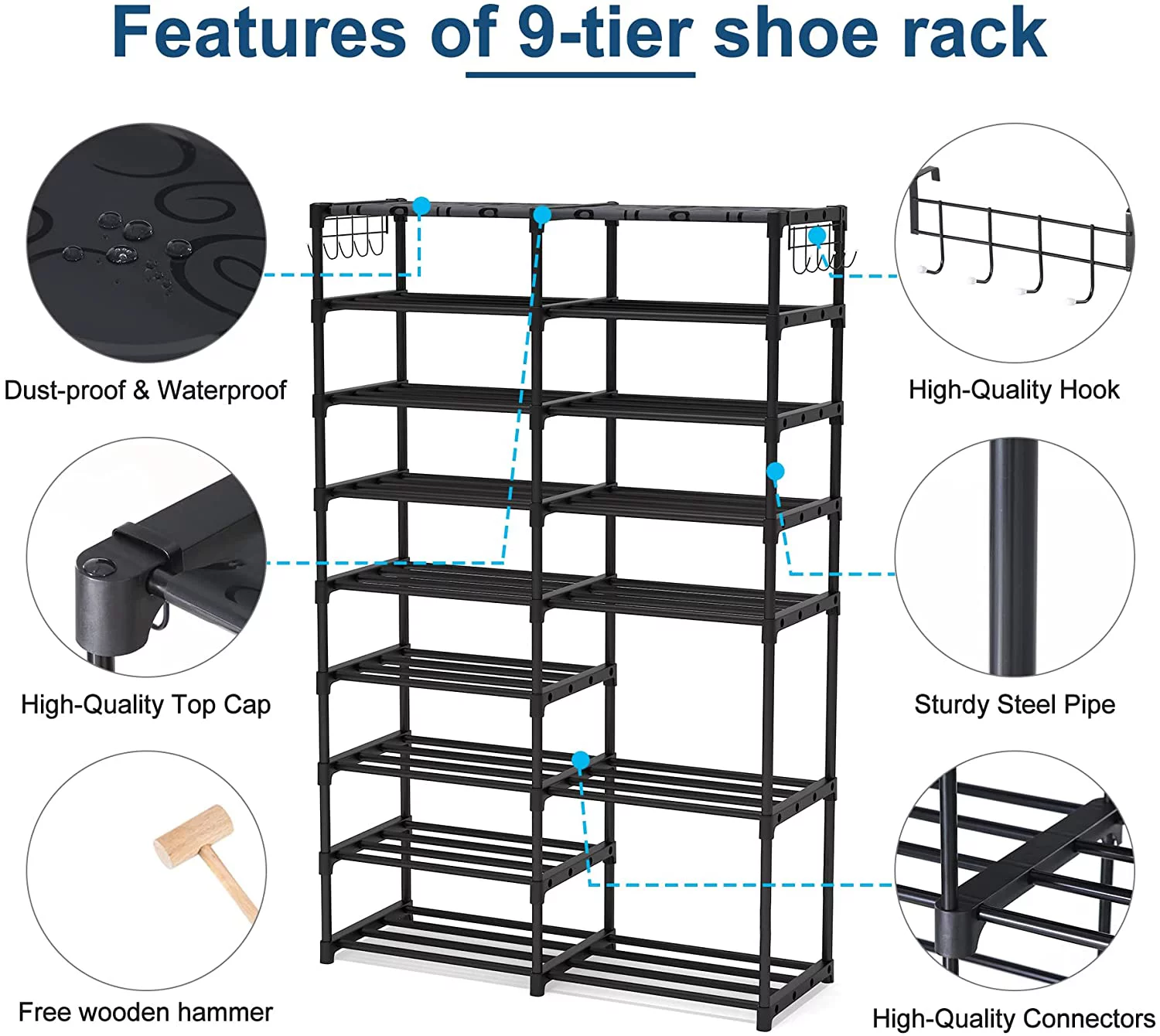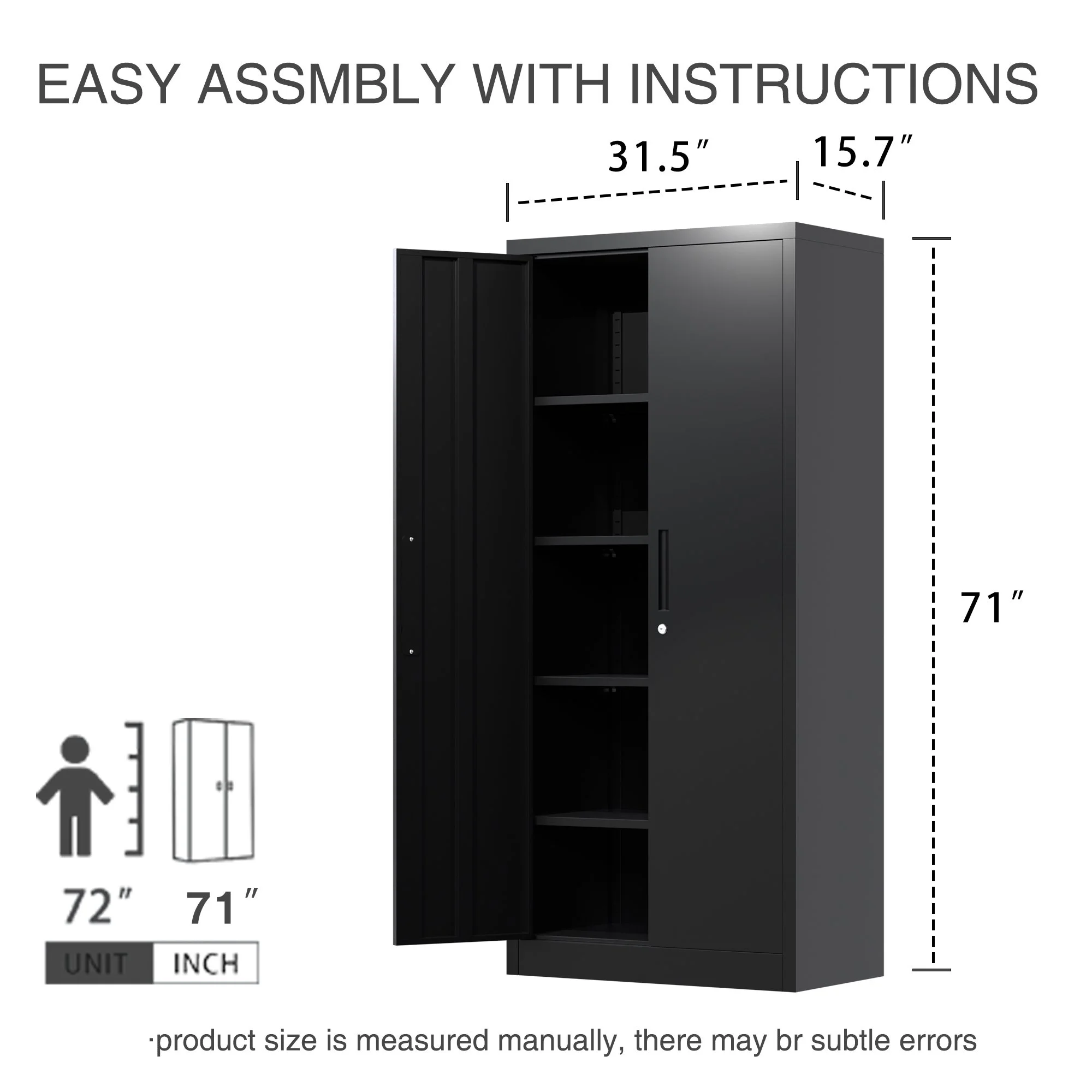 Zakamaur 71'Metal Garage Storage Cabinet with Lockable Doors and 4 Shelves, 15.7"L*31.5"W*71"H,Black