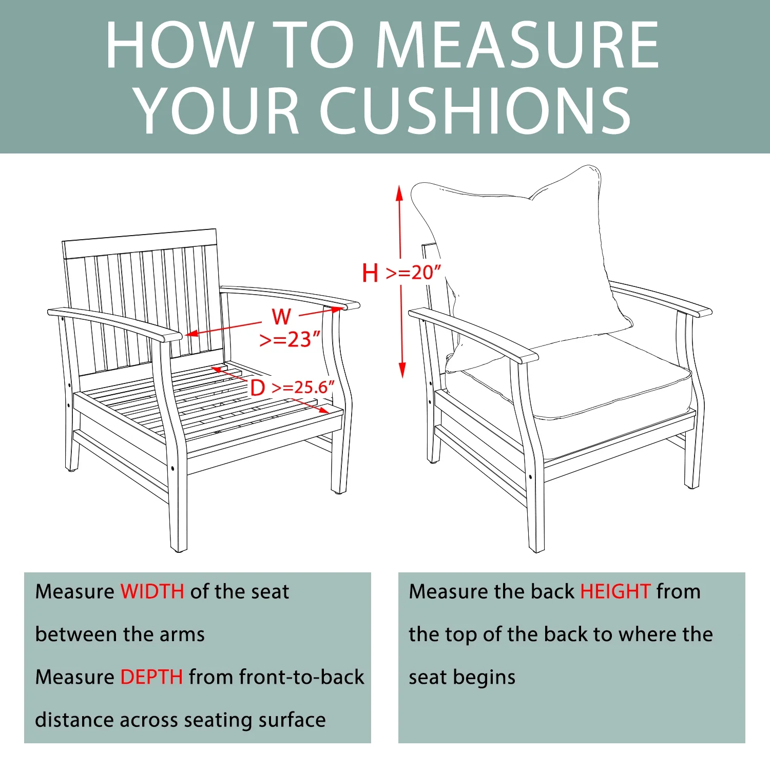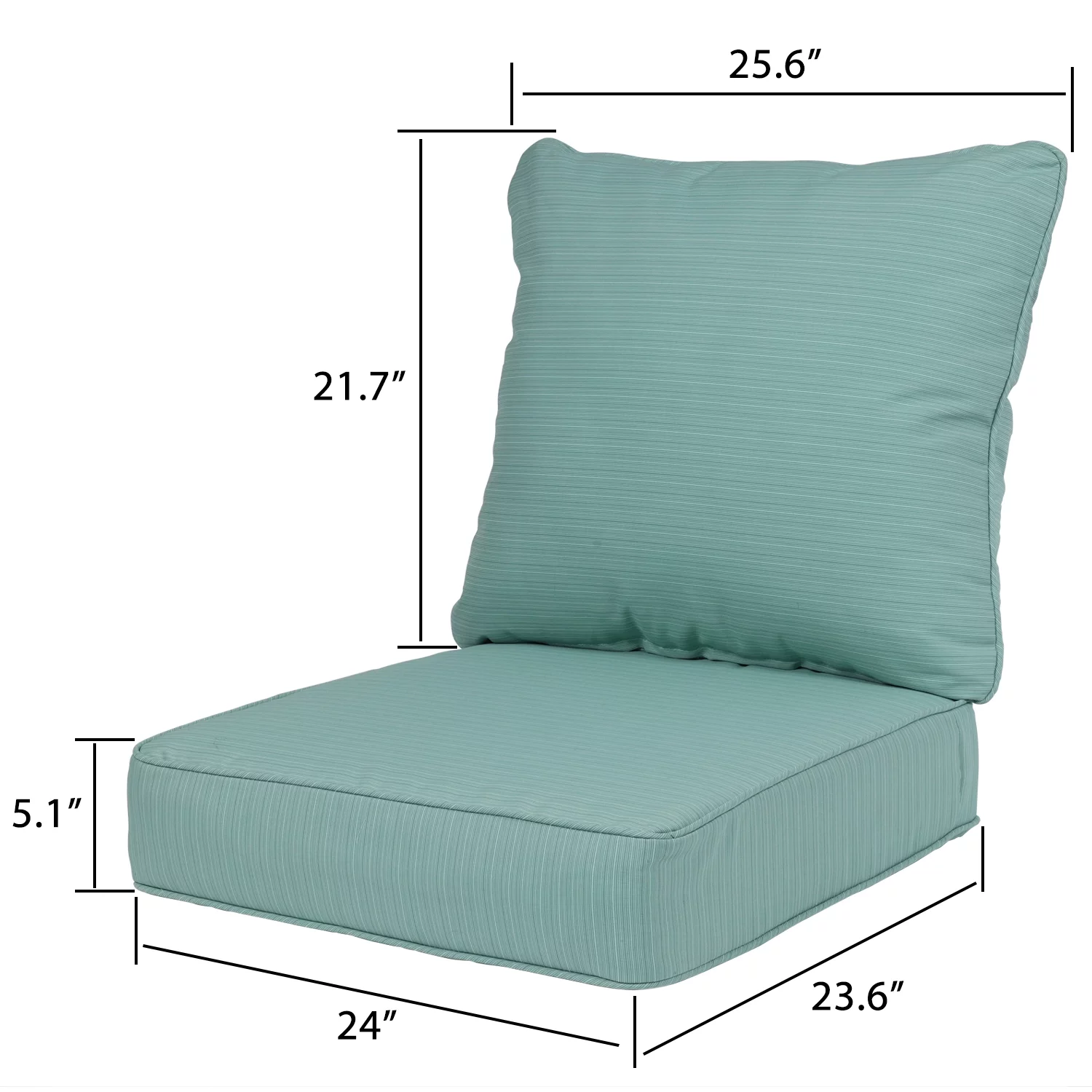 Aoodor 24'' x 23.6'' Outdoor Patio Deep Seating Cushion Set with Ties, Sofa Seat/Back Striped Cushion- Set of 2