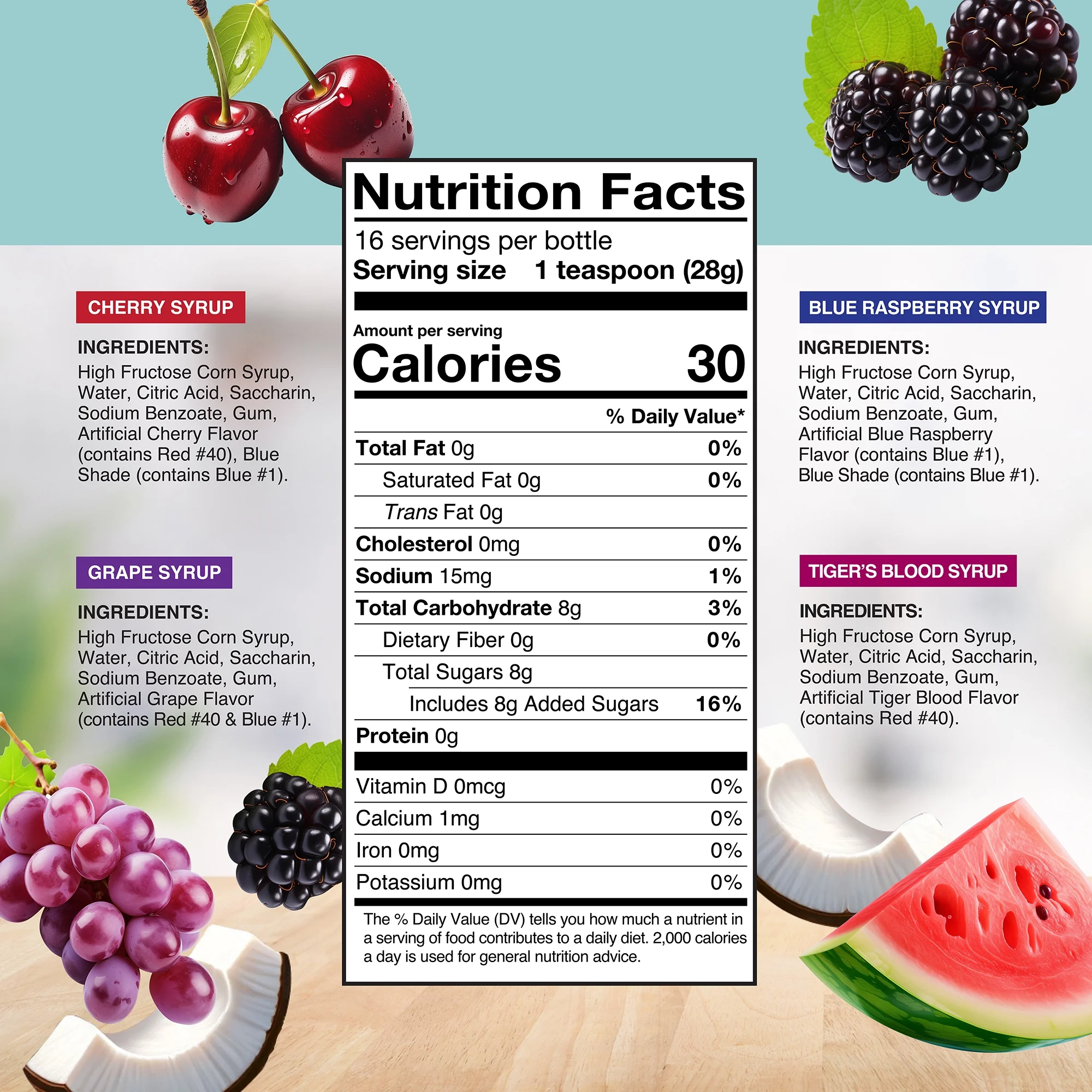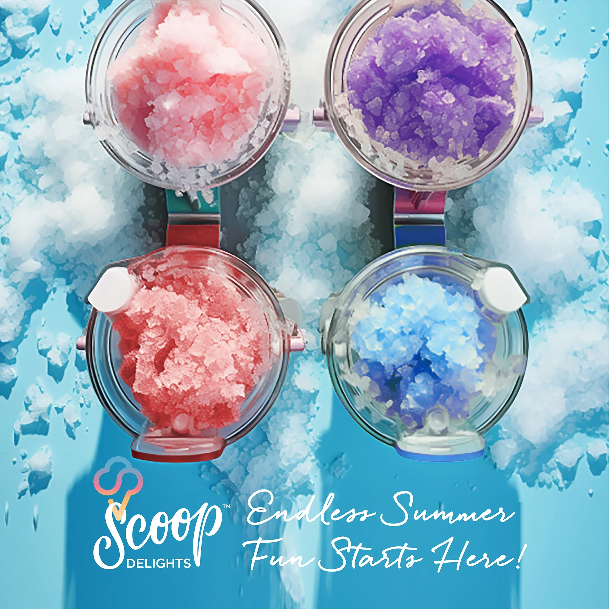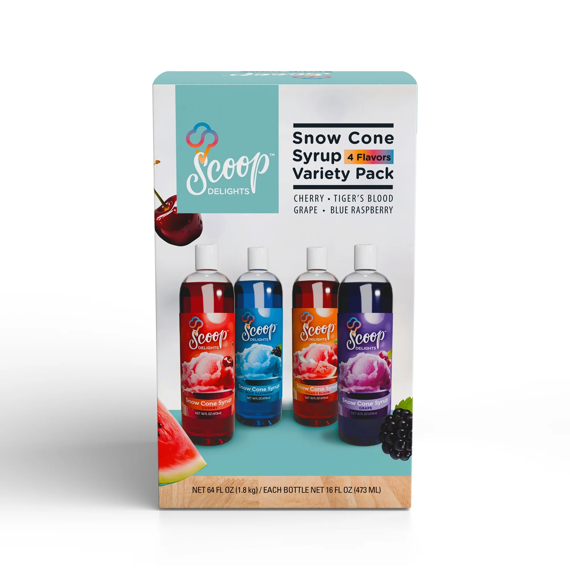 Scoop Delights Shaved Ice Syrup 4 Assorted Bottles, 16 oz Snow Cone Flavors, for All Ages