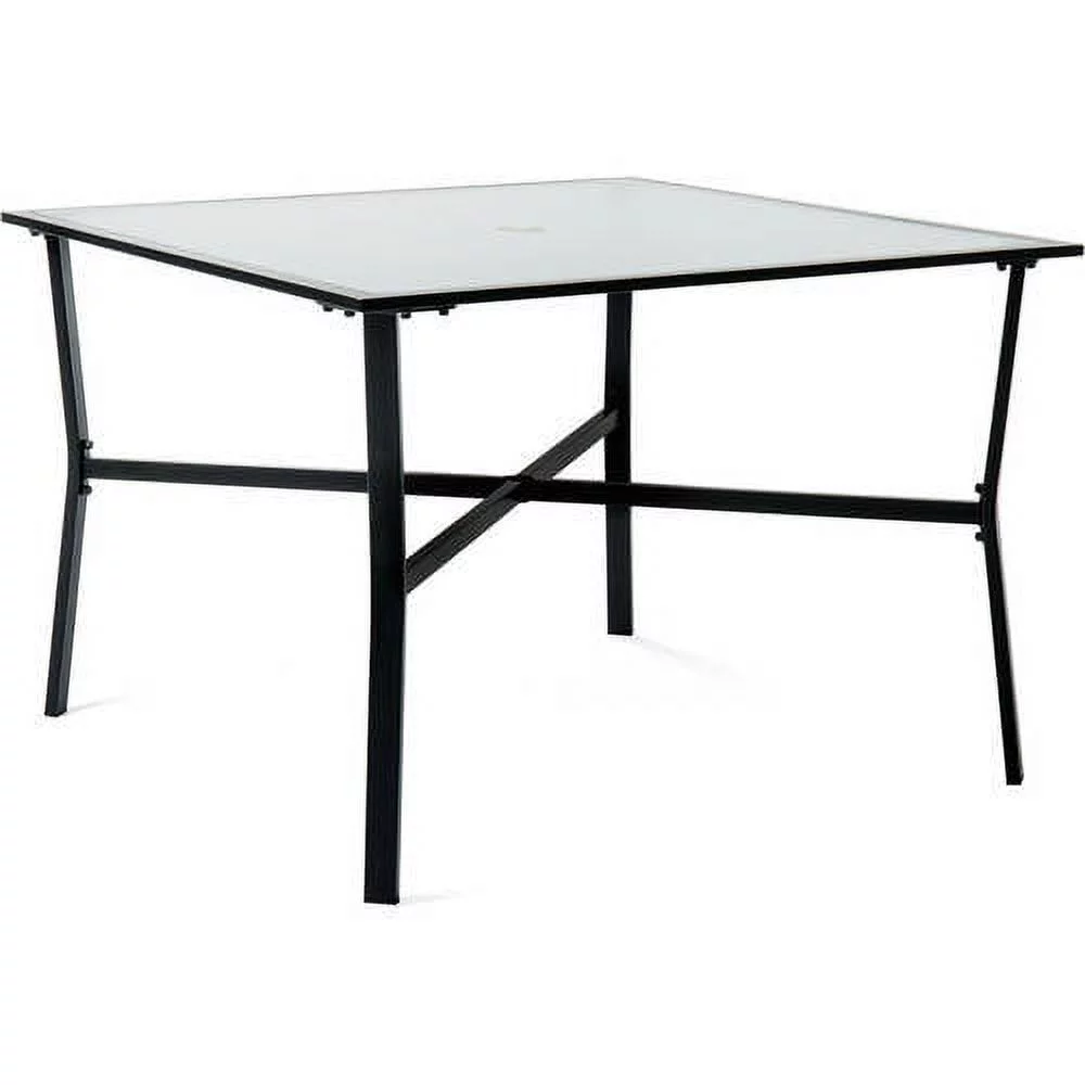 Hanover Lavallette 5-Piece Modern Outdoor Steel Dining Set with Umbrella, Ocean Blue