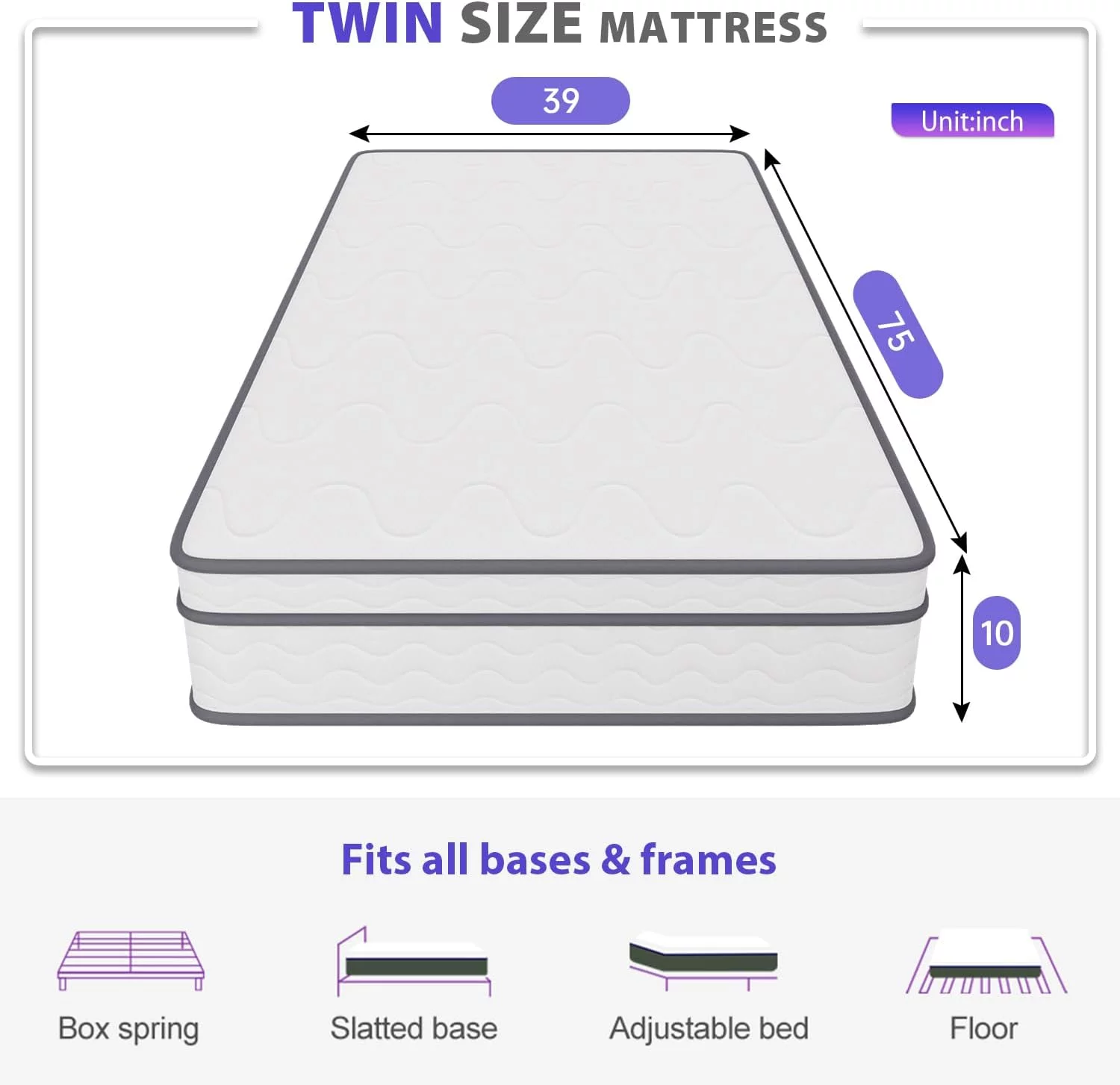 Dkelincs Twin Size Mattress, 10 inch Innerspring Mattress Medium Firm Hybrid Mattress Bed-in-a-Box, Removable Cover