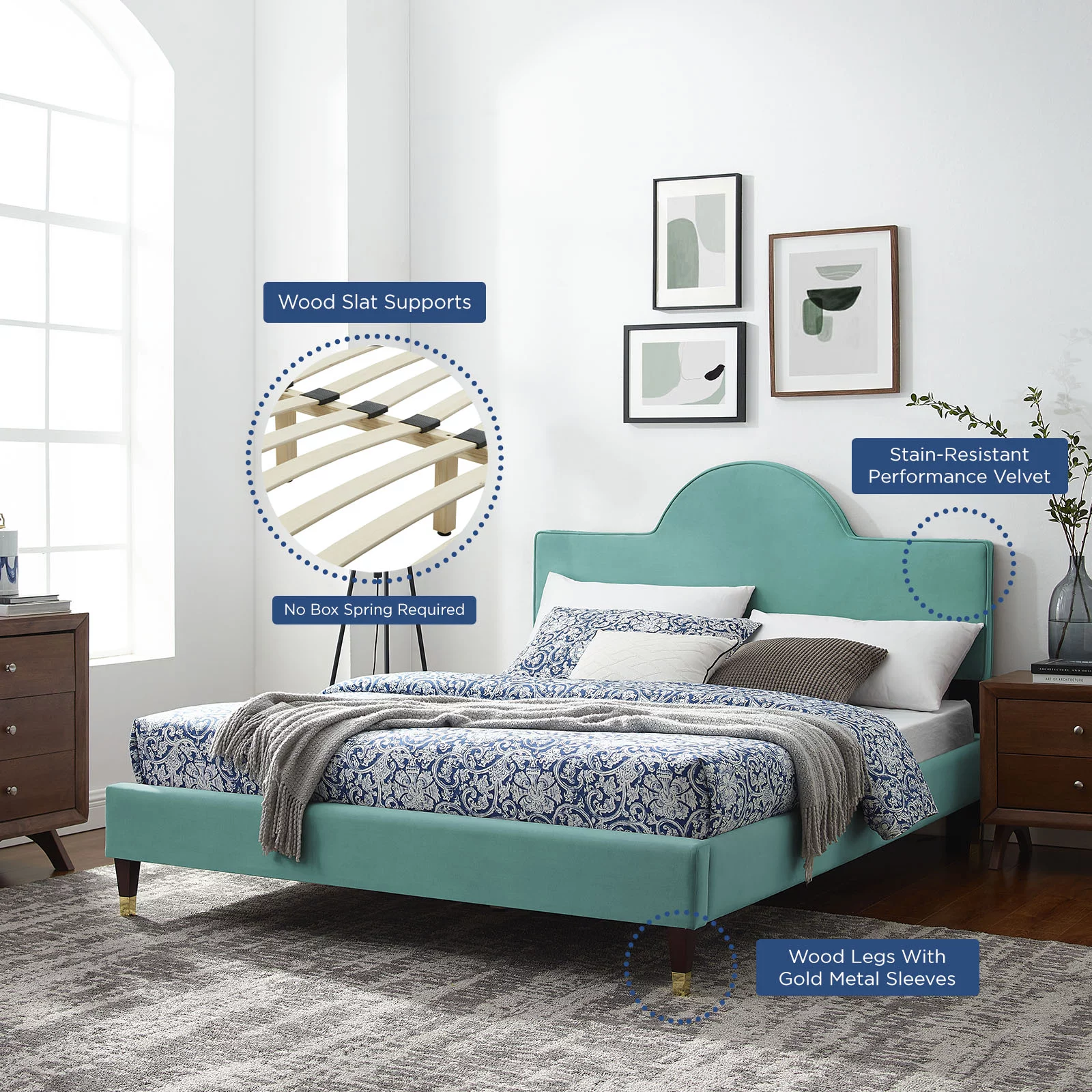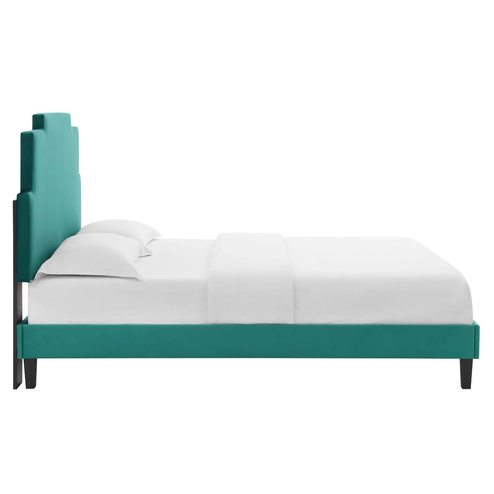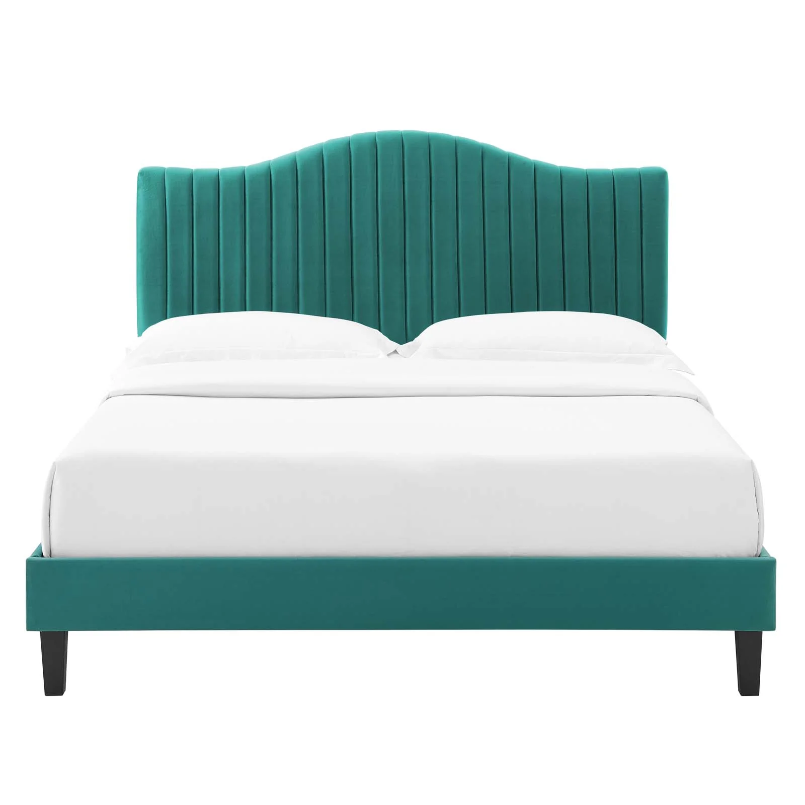 Modway Juniper Channel Tufted Performance Velvet Full Platform Bed in Teal