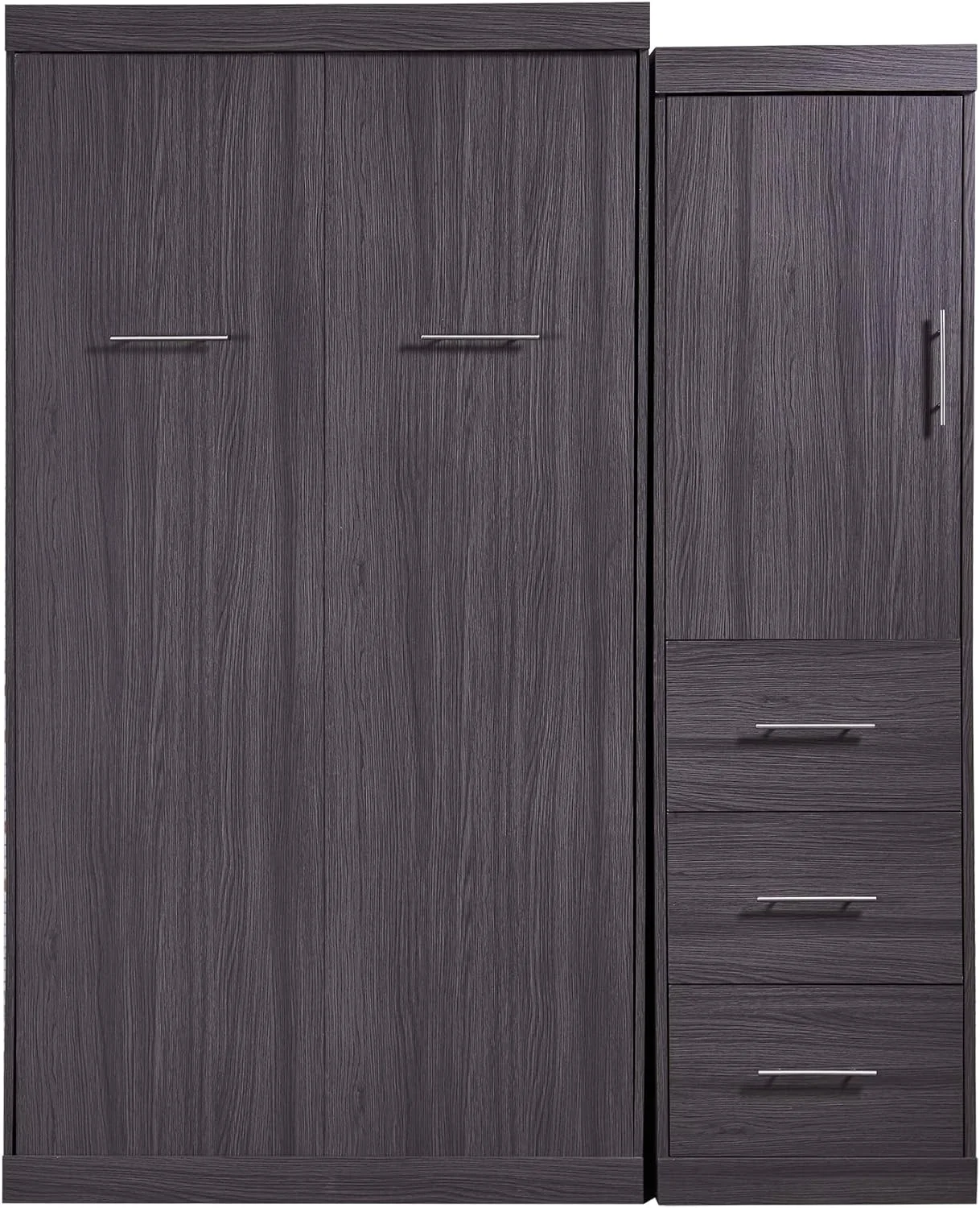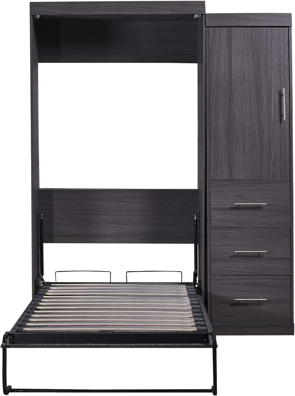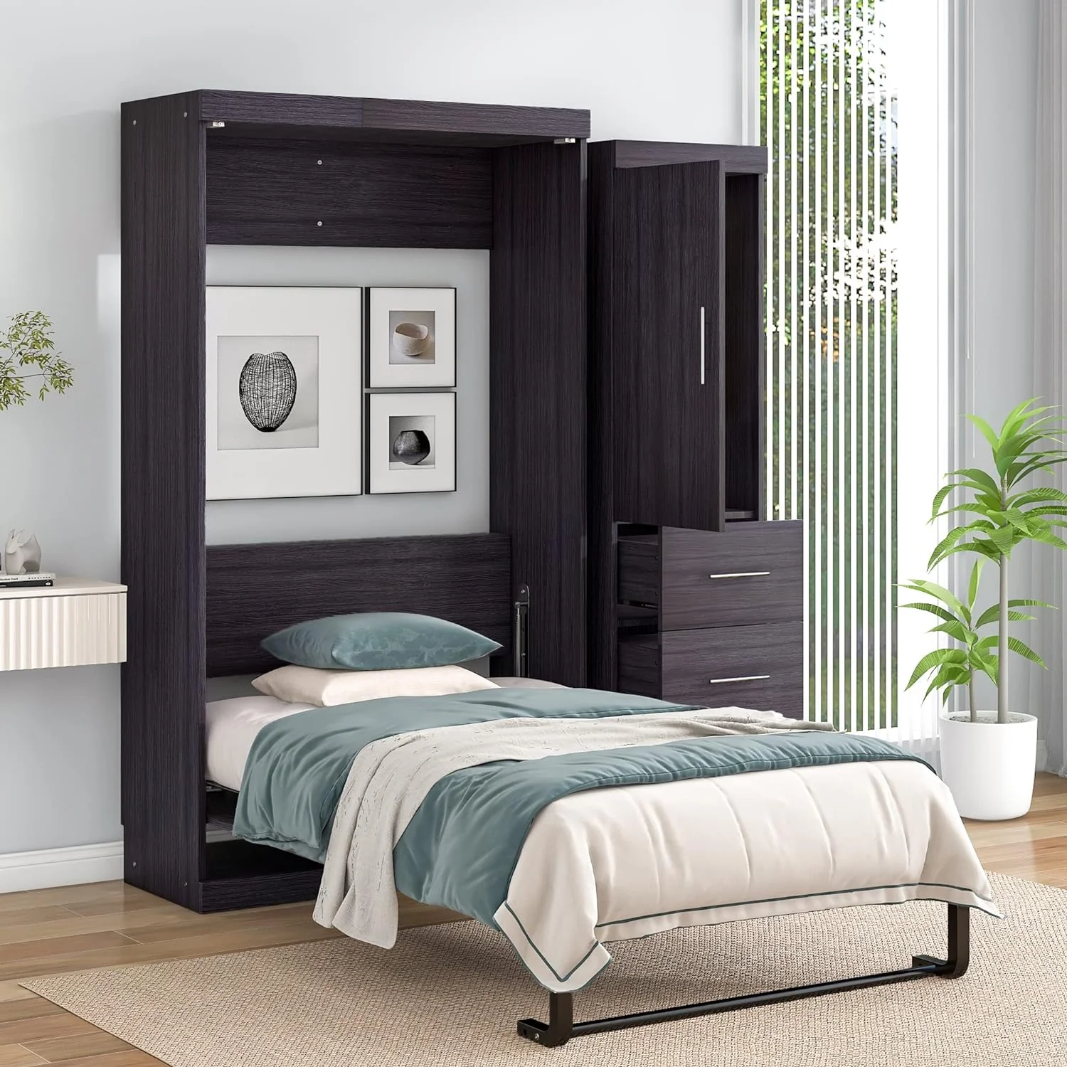 Size rphy Bed Wih Wardrobe Ad Drawers, Size Sorage Bed, Ca Be Folded Io A Cabie, Plaform Bed, Gray