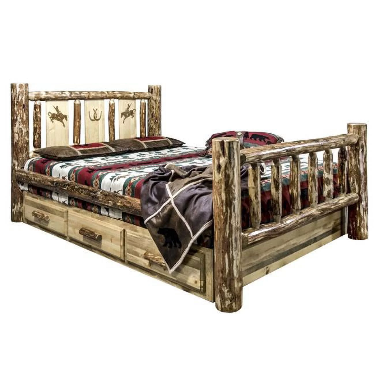 Glacier Country Collection Storage Bed with Laser Engraved Bronc Design - Twin Size - 5.5 x 21 x 16 in.