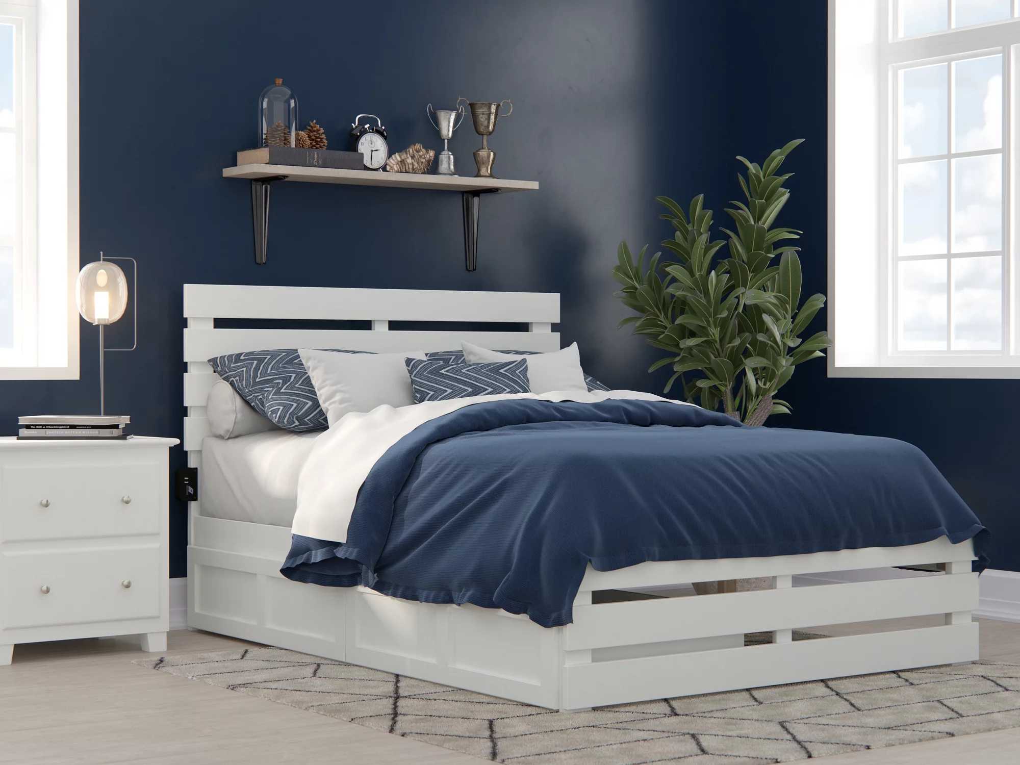 Oxford Full Bed with Footboard and USB Turbo Charger with 2 Drawers in White