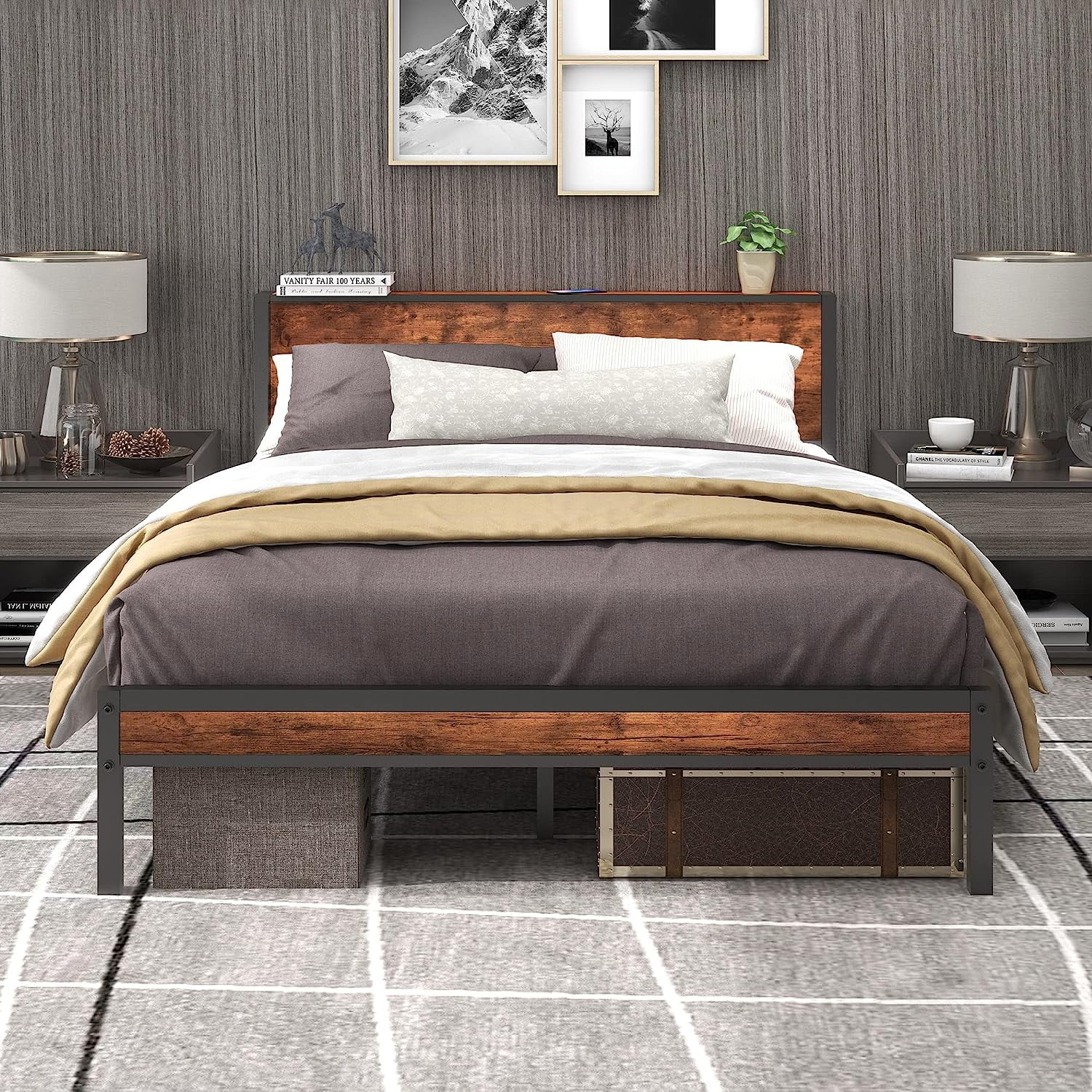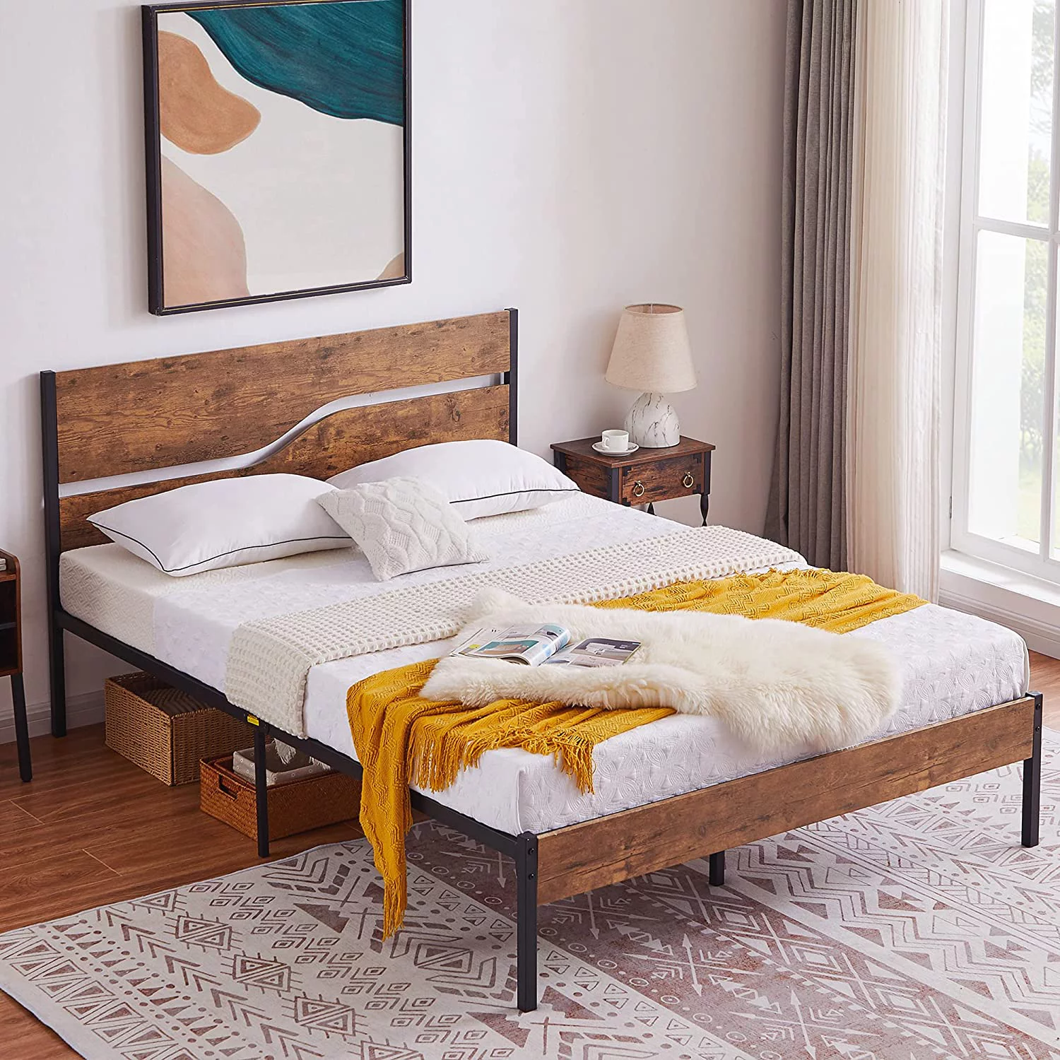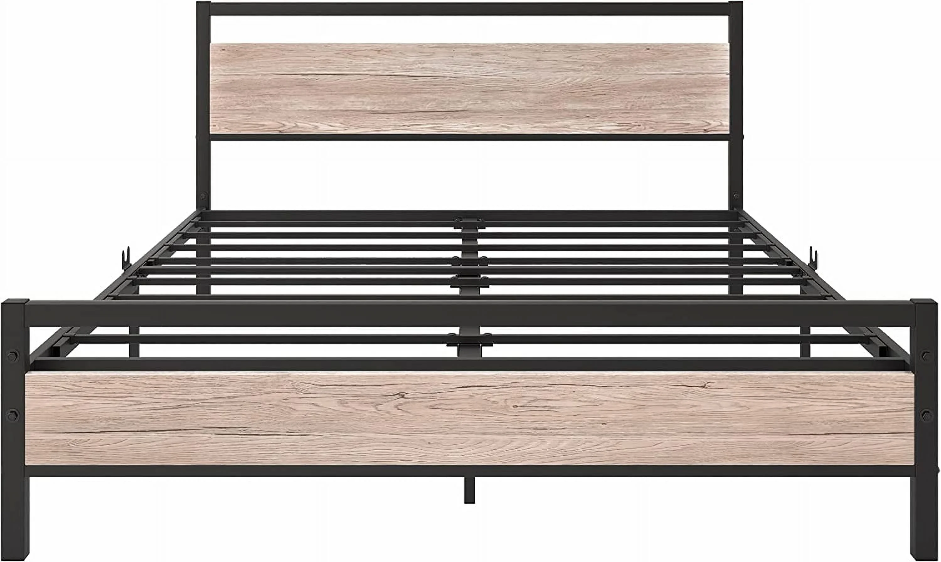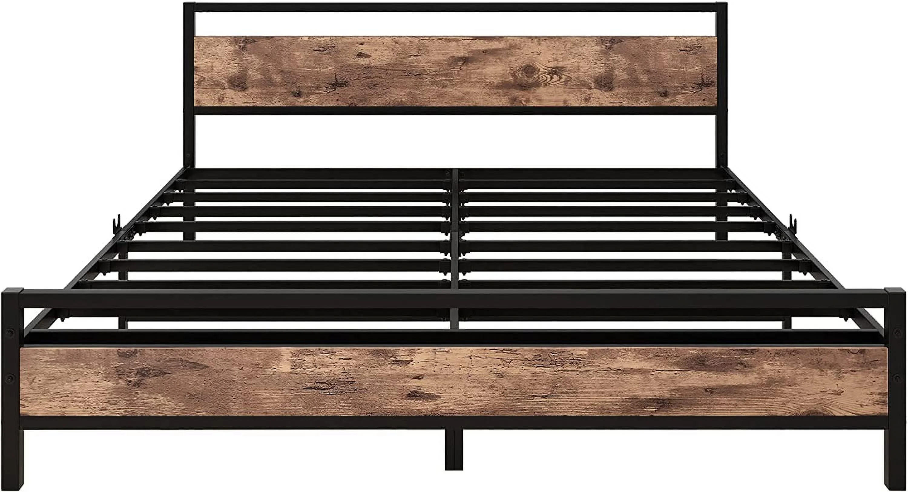 Full Size Platform Bed Frame with Rustic Vintage Wood Headboard, Strong Metal Slats Support, No Box Spring Needed