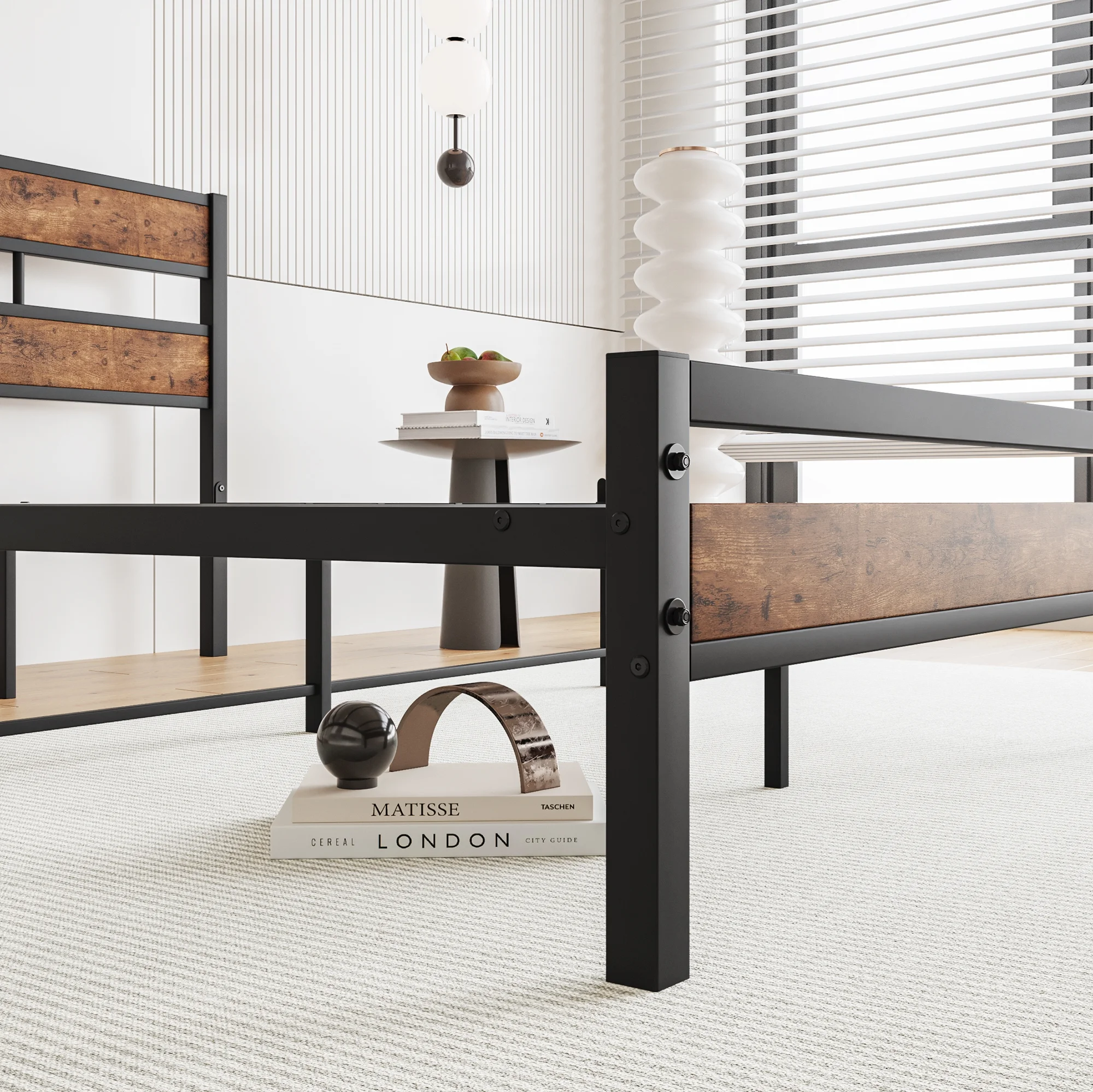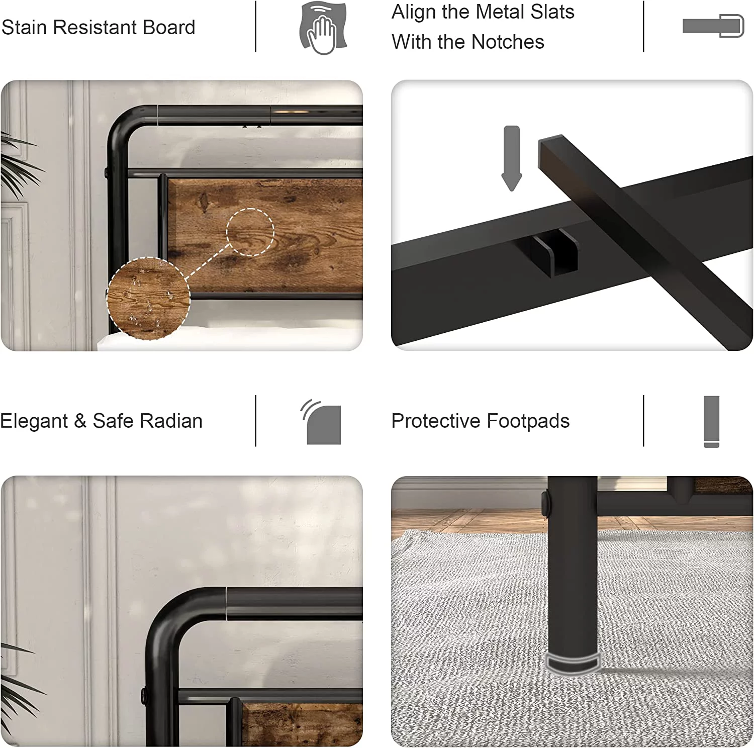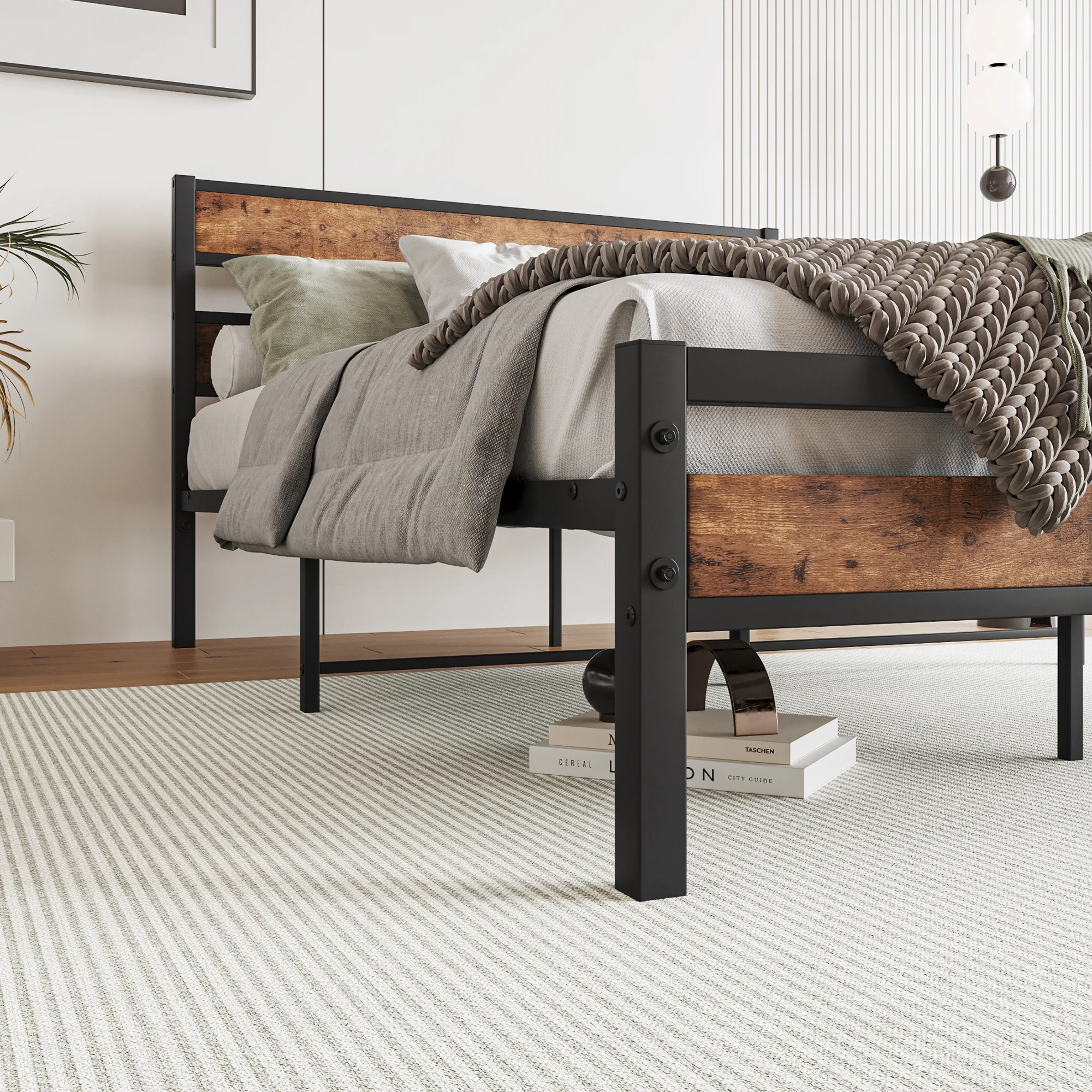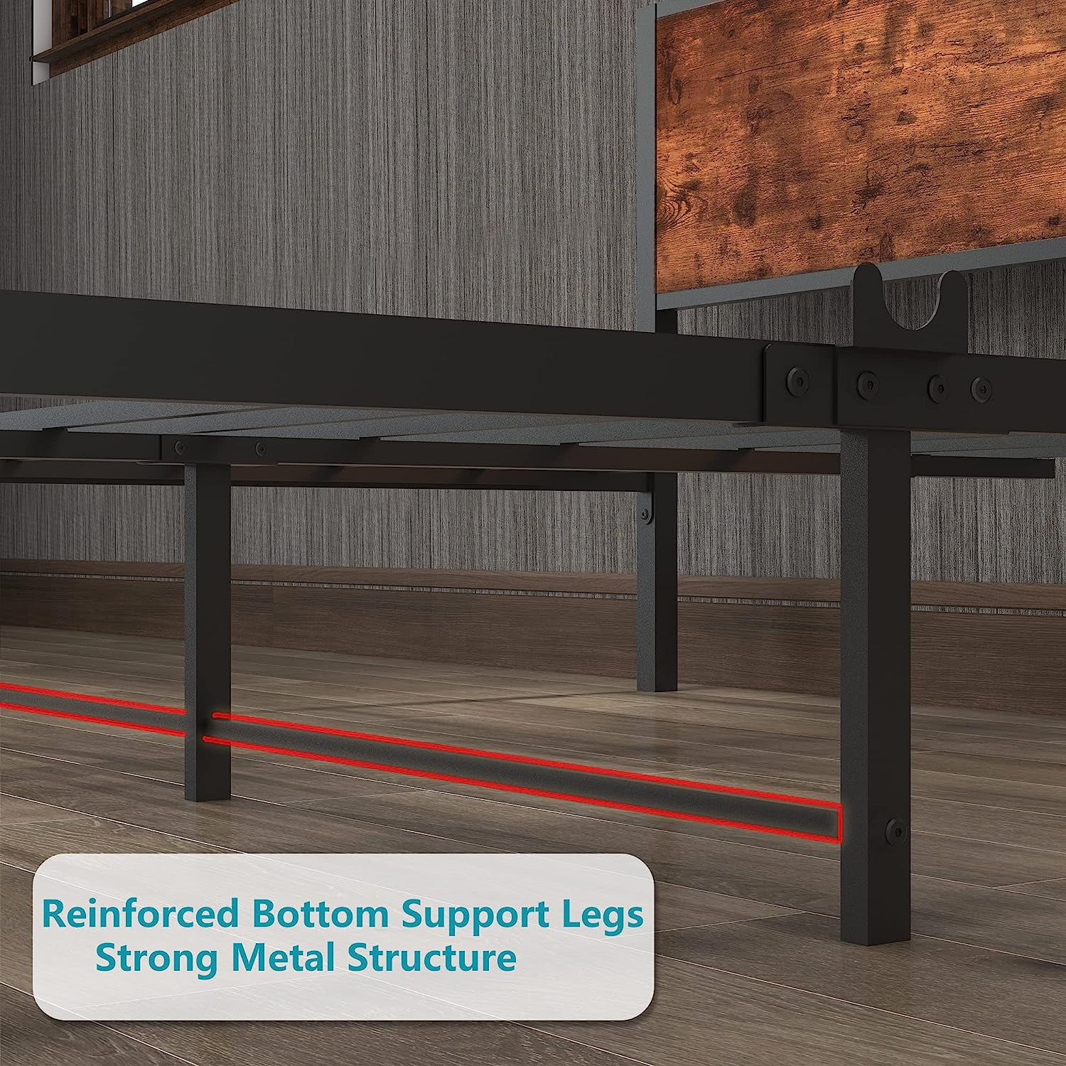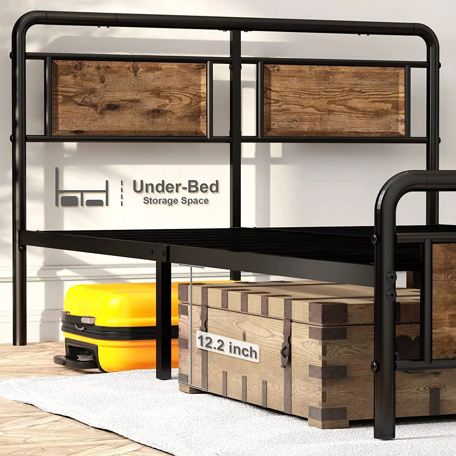 Full Size Platform Bed Frame with Rustic Vintage Wood Headboard, Strong Metal Slats Support, No Box Spring Needed
