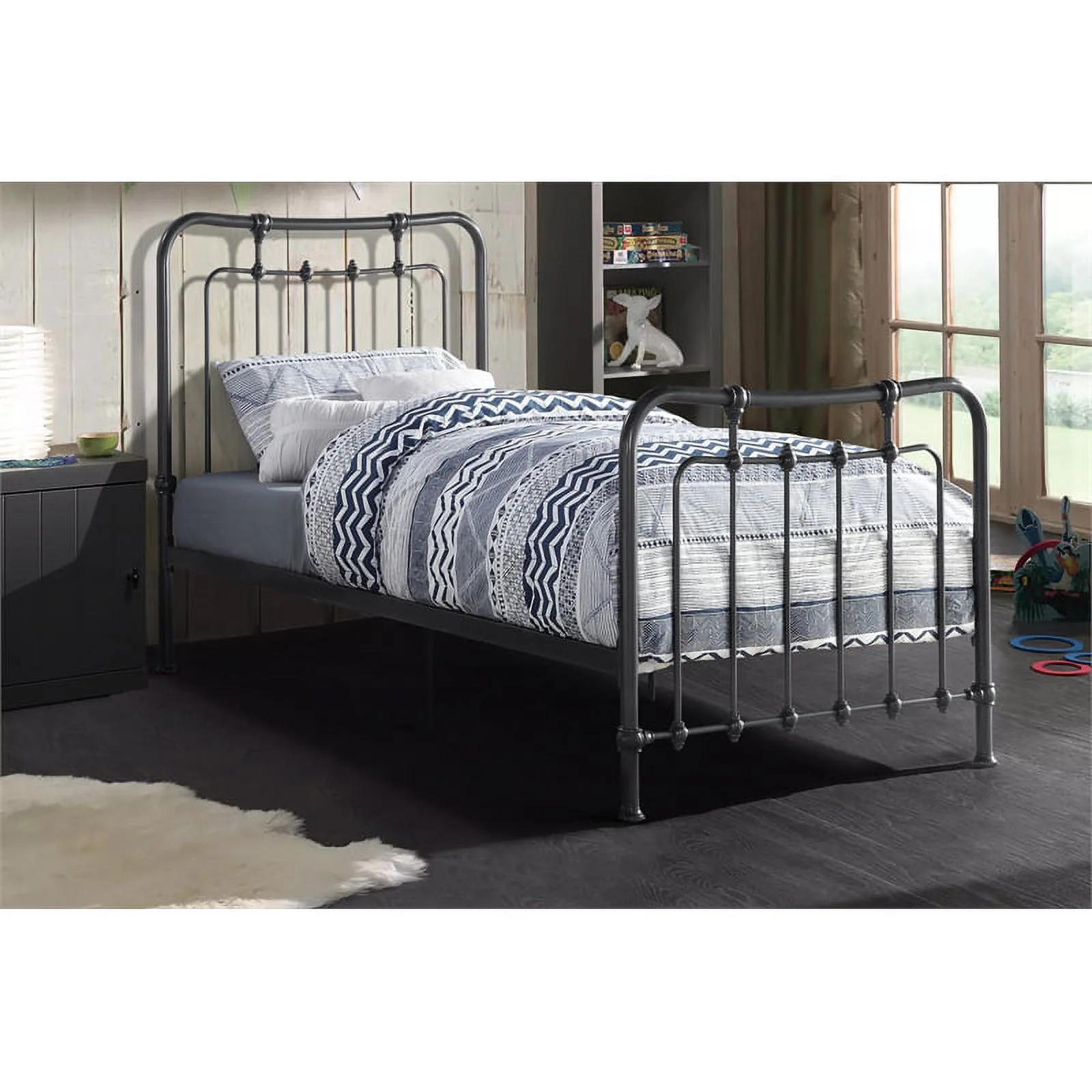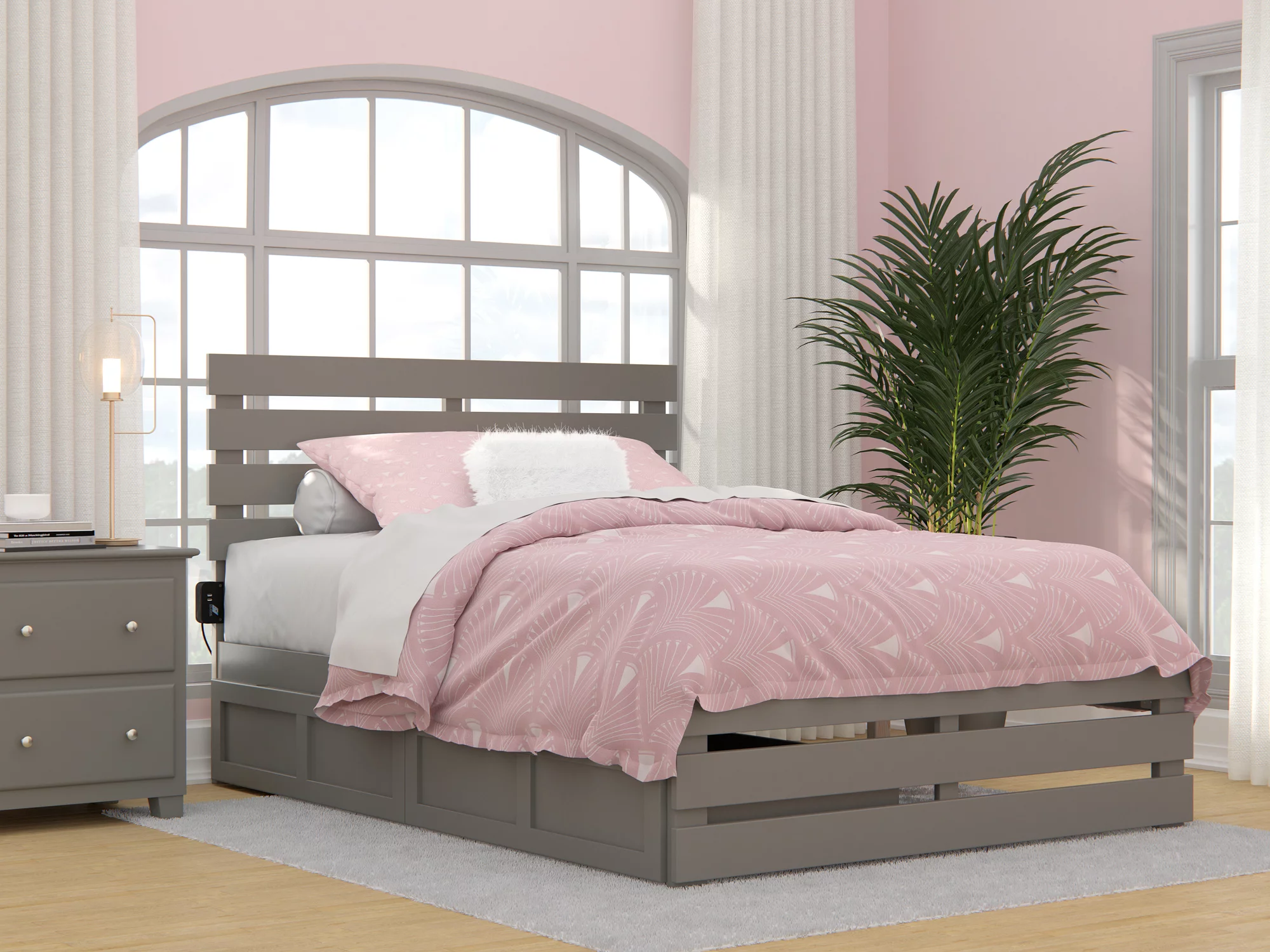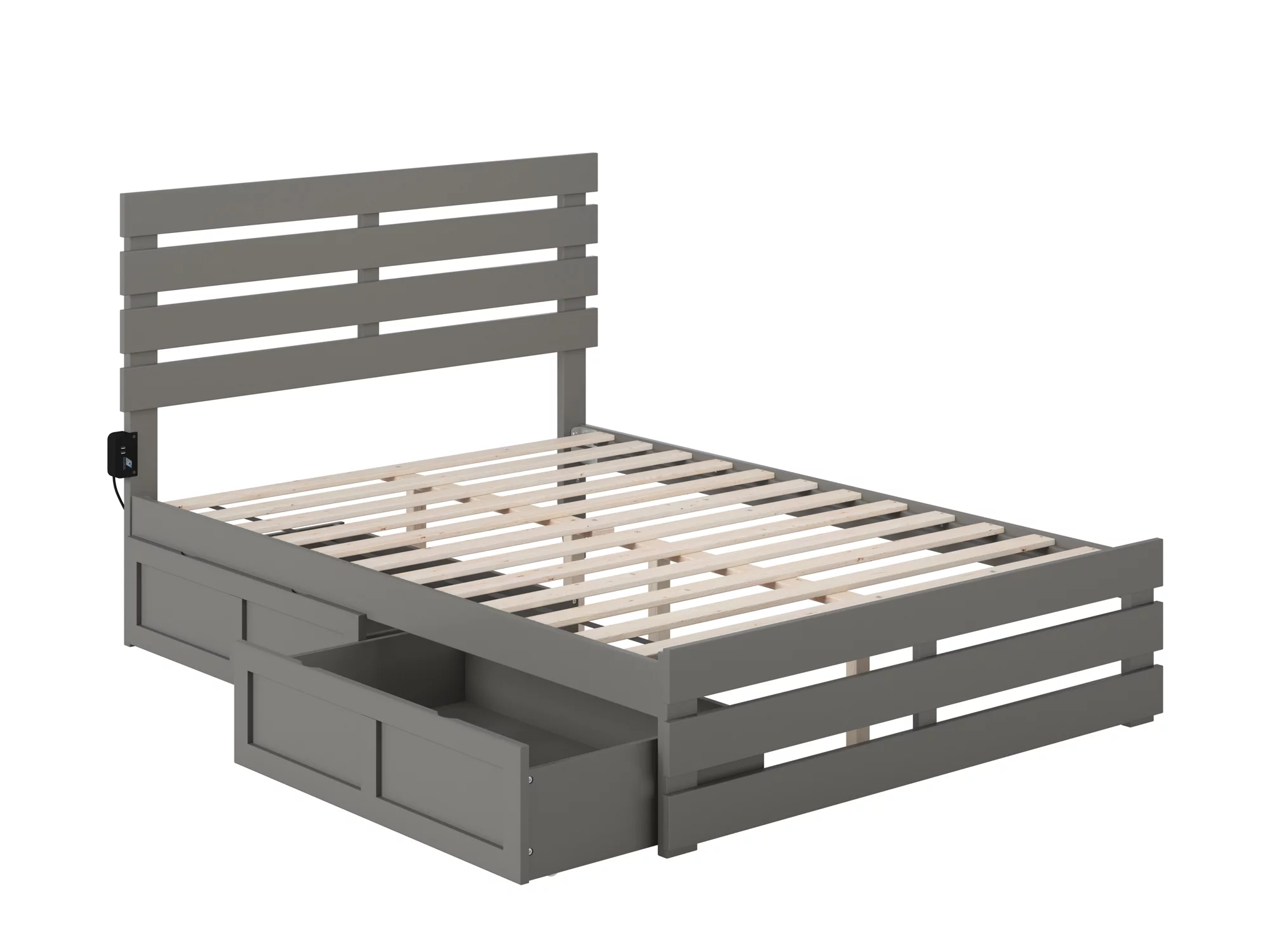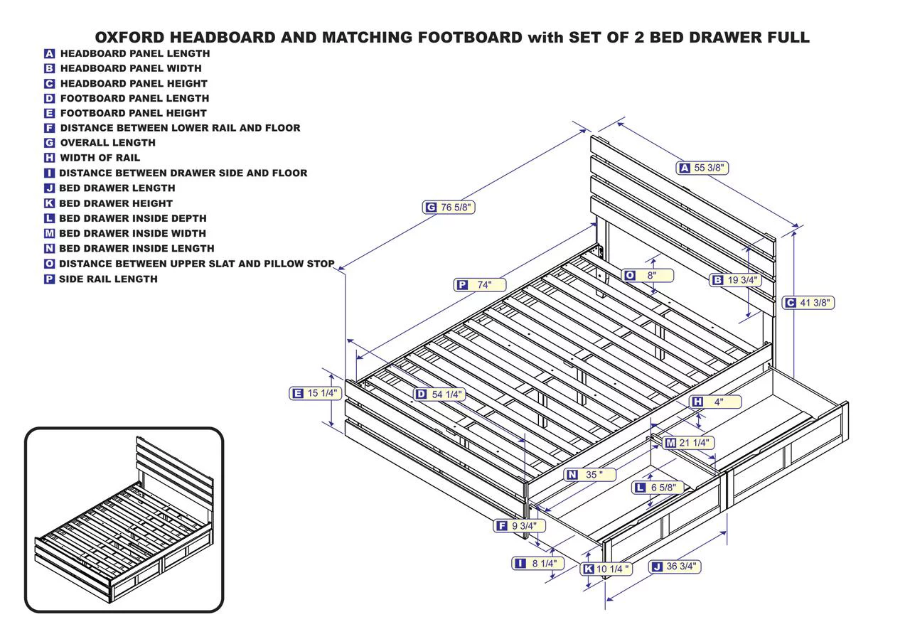 Oxford Full Bed with Footboard and USB Turbo Charger with 2 Drawers in Grey