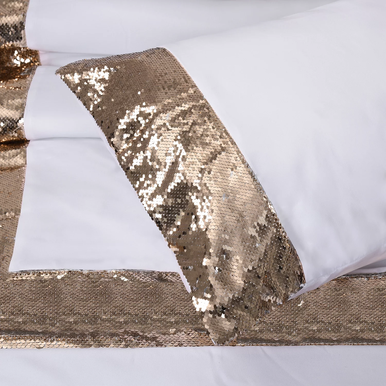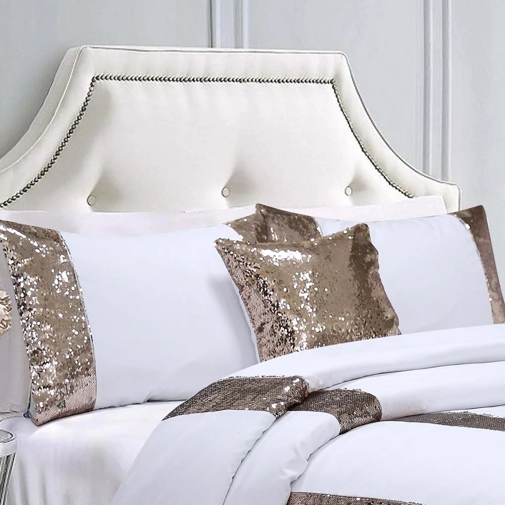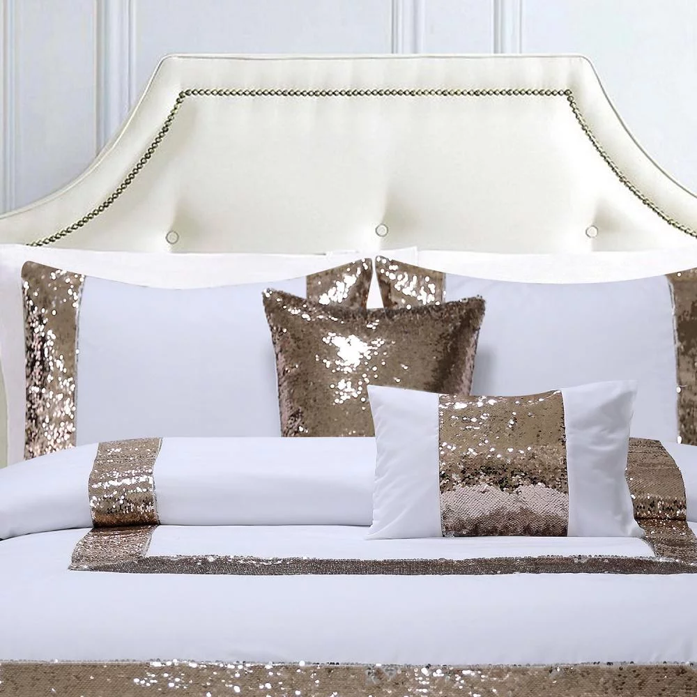 HIG White/Gold Flip Sequins Comforter Set, Queen size Pactch Work Bed Set