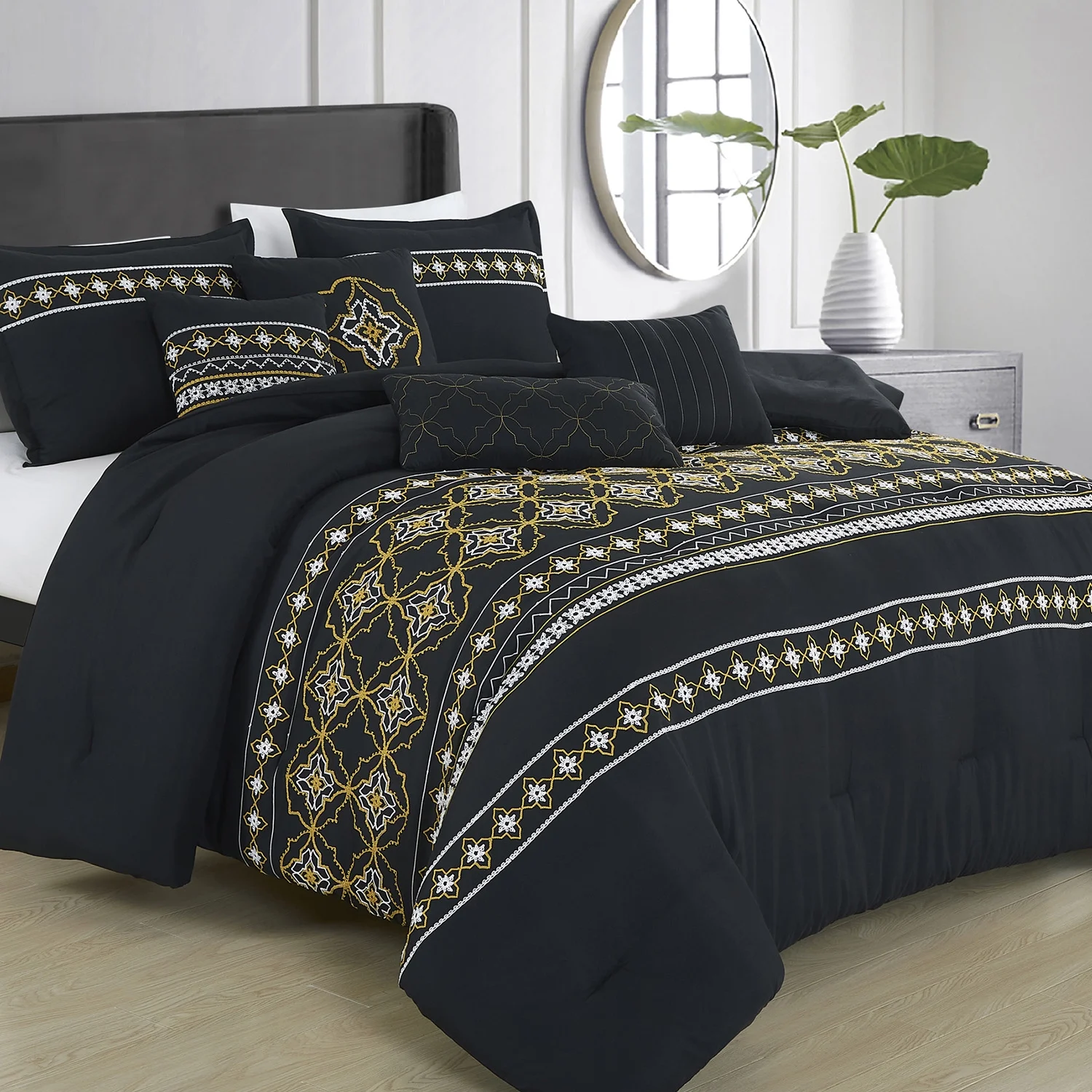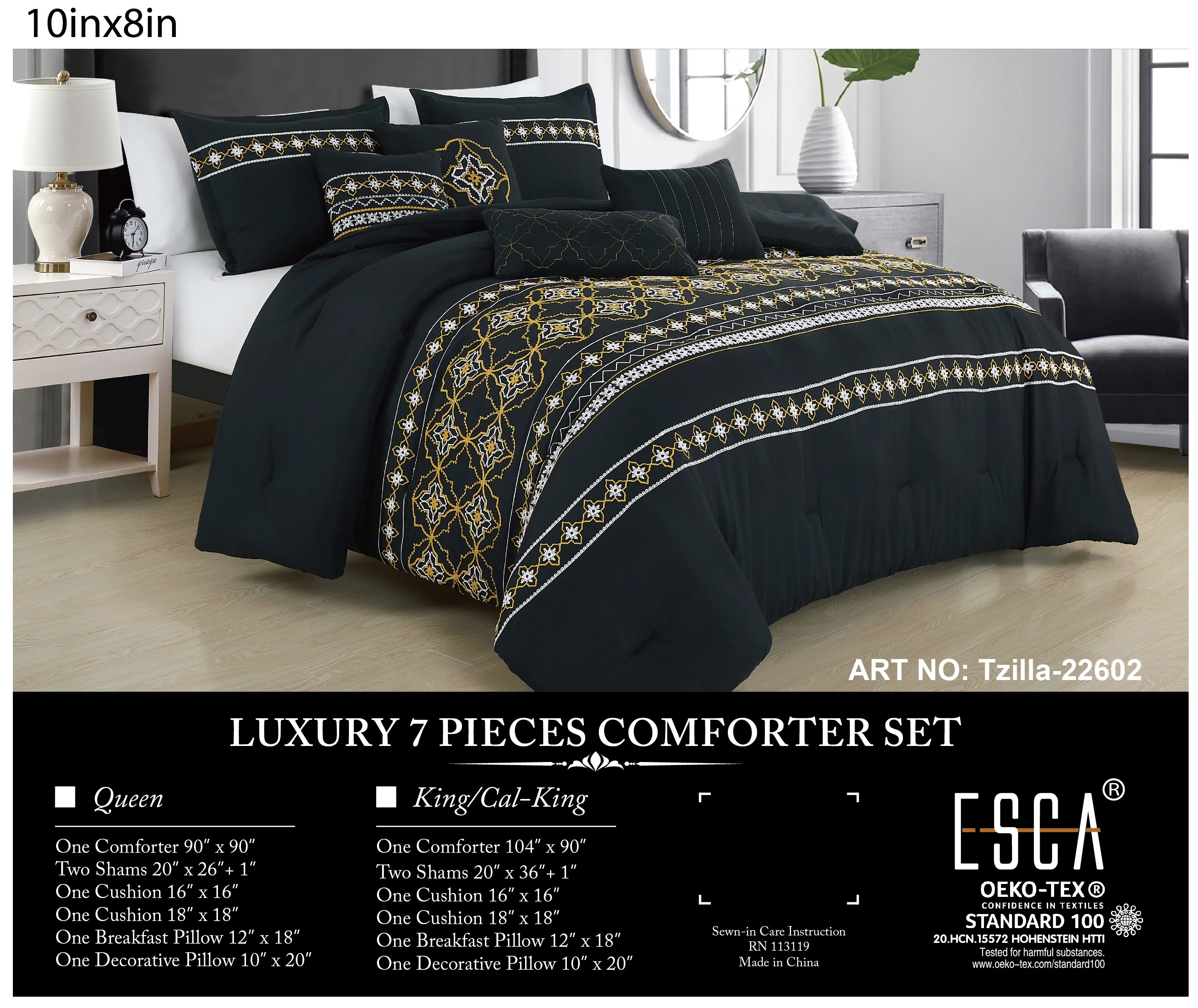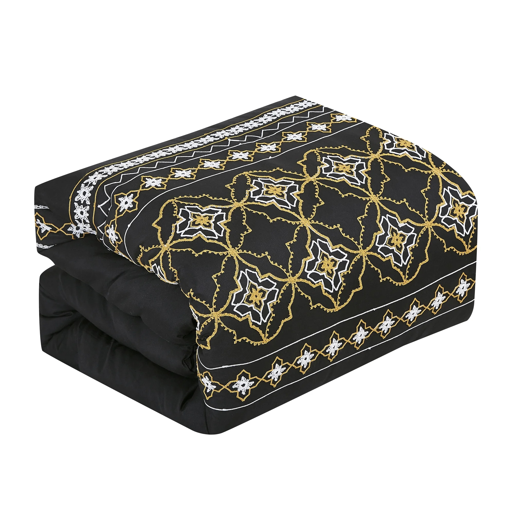 HIG White/Gold Flip Sequins Comforter Set, Queen size Pactch Work Bed Set