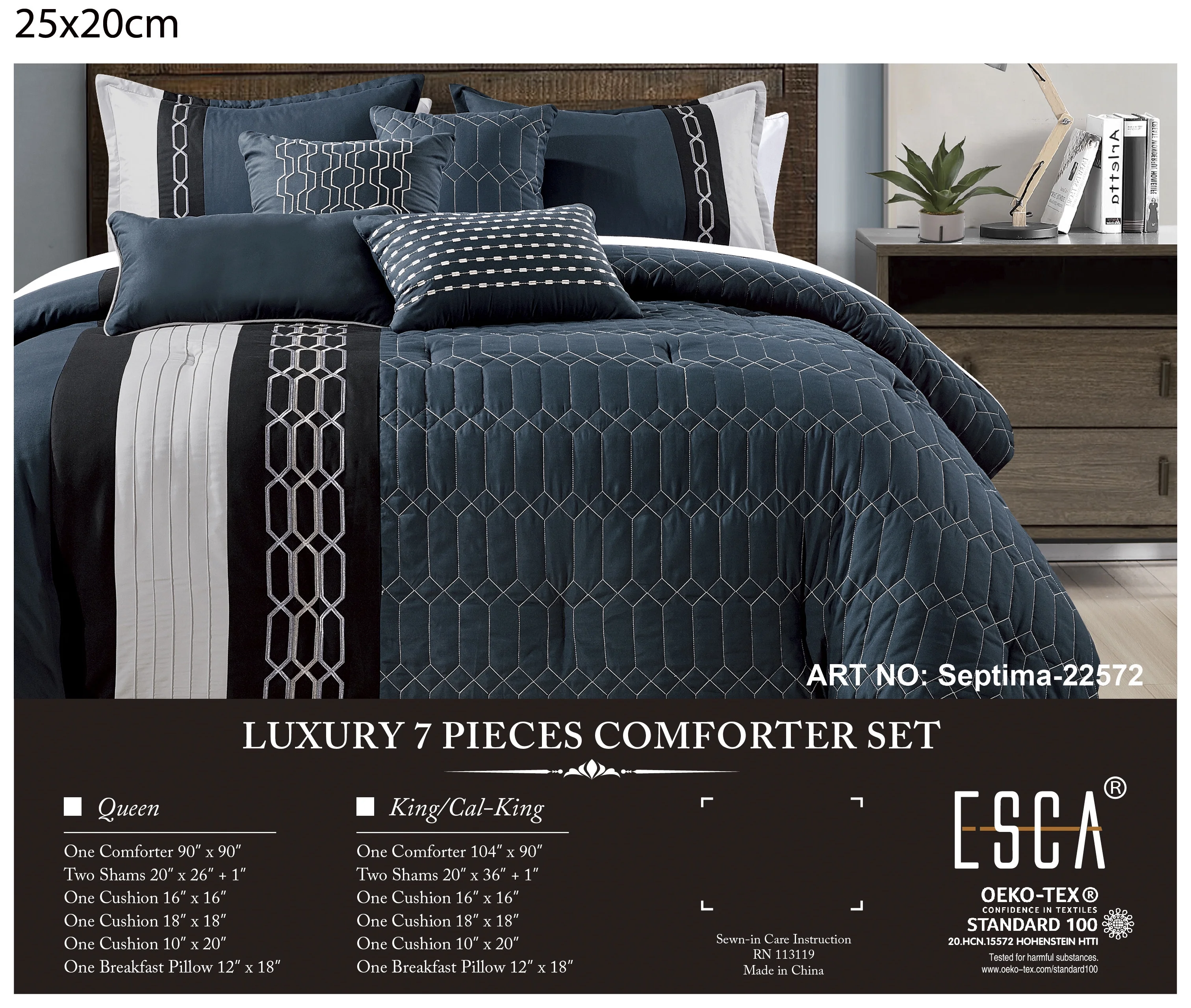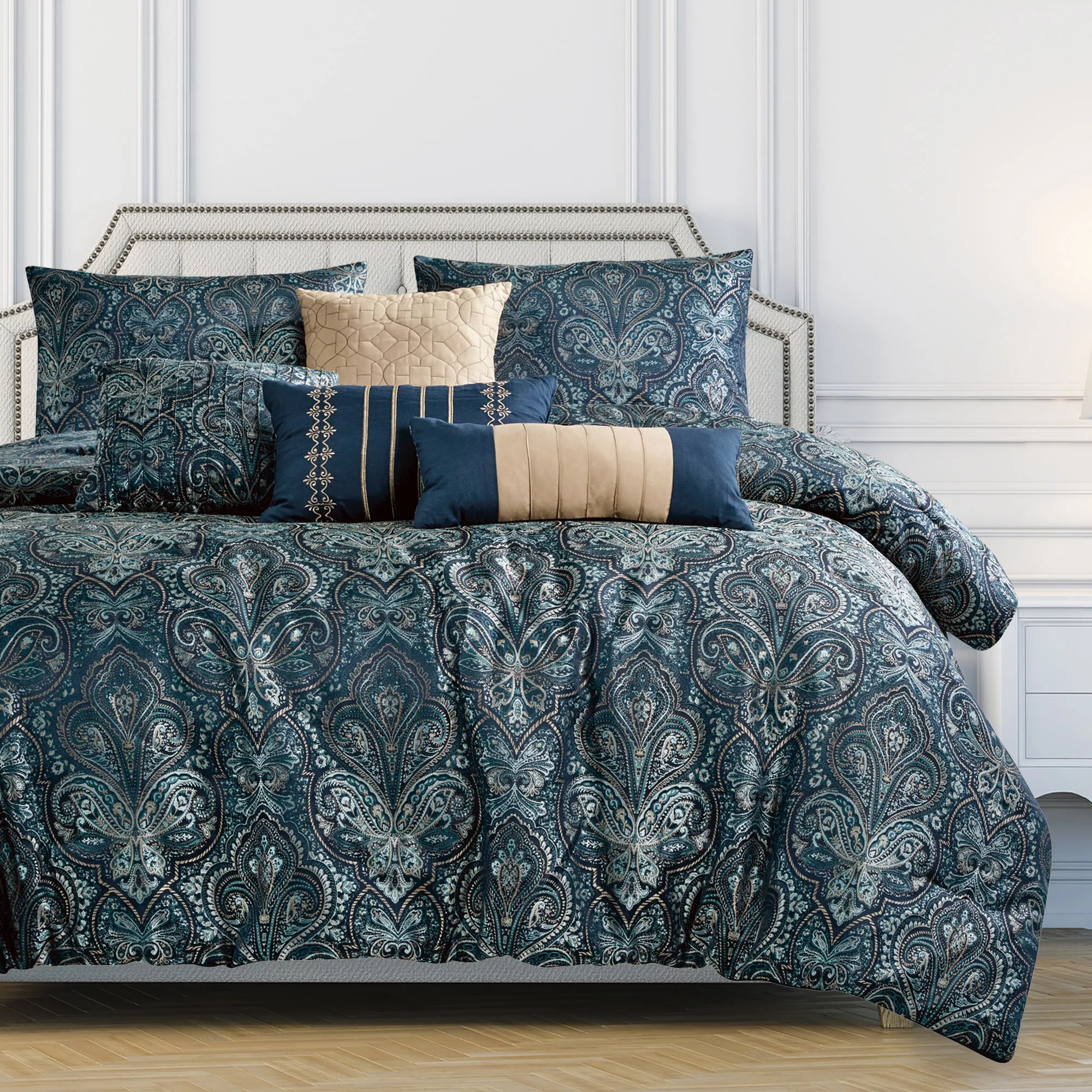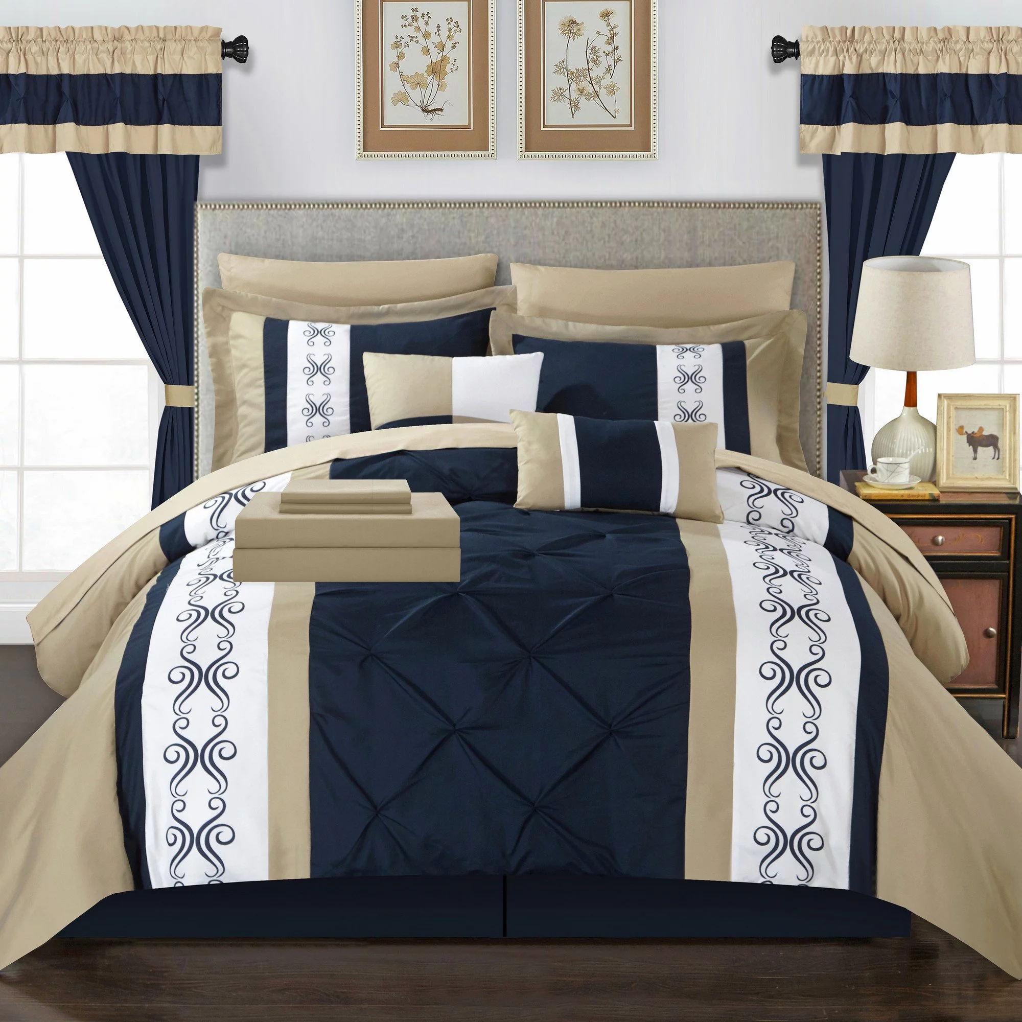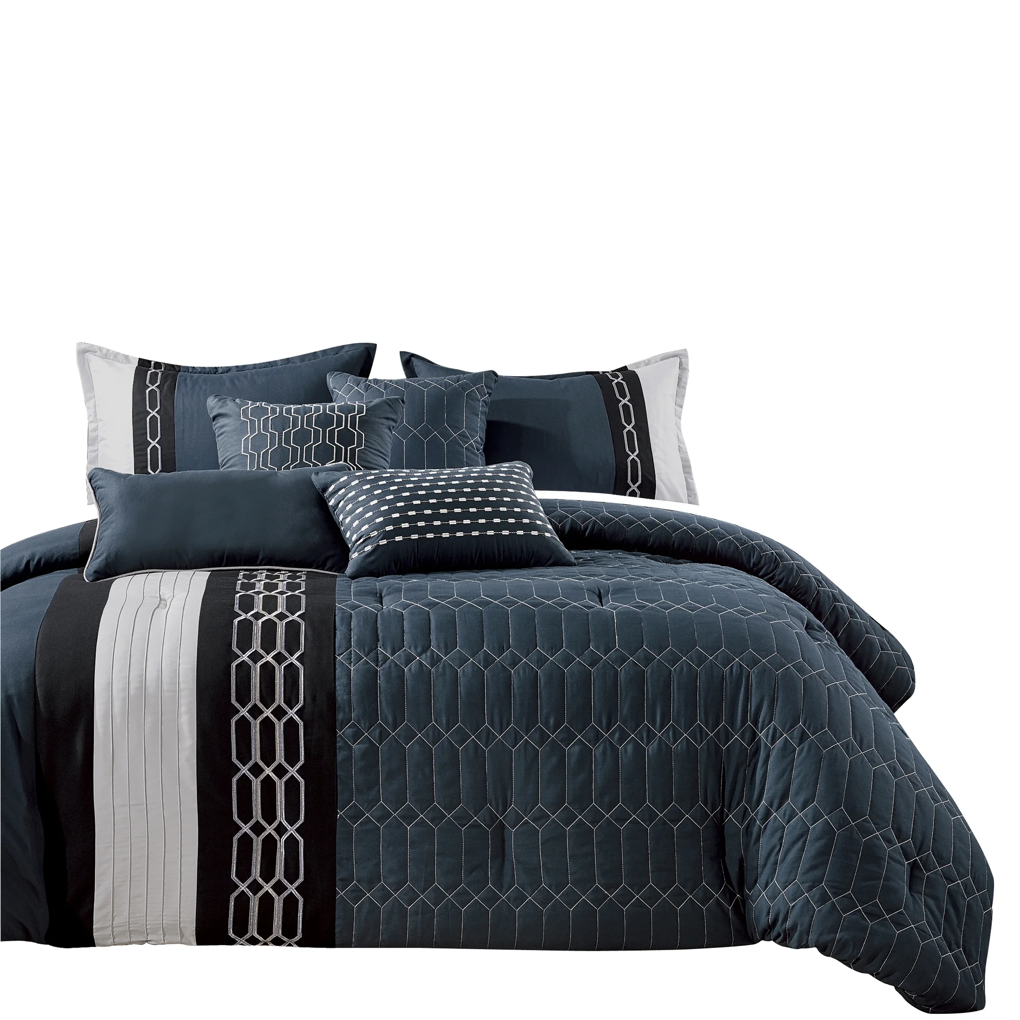 Wellco Bedding Comforter Set Bed In A Bag - 7 Piece Butterfly Luxury Bedding Sets - Oversized, Navy Queen