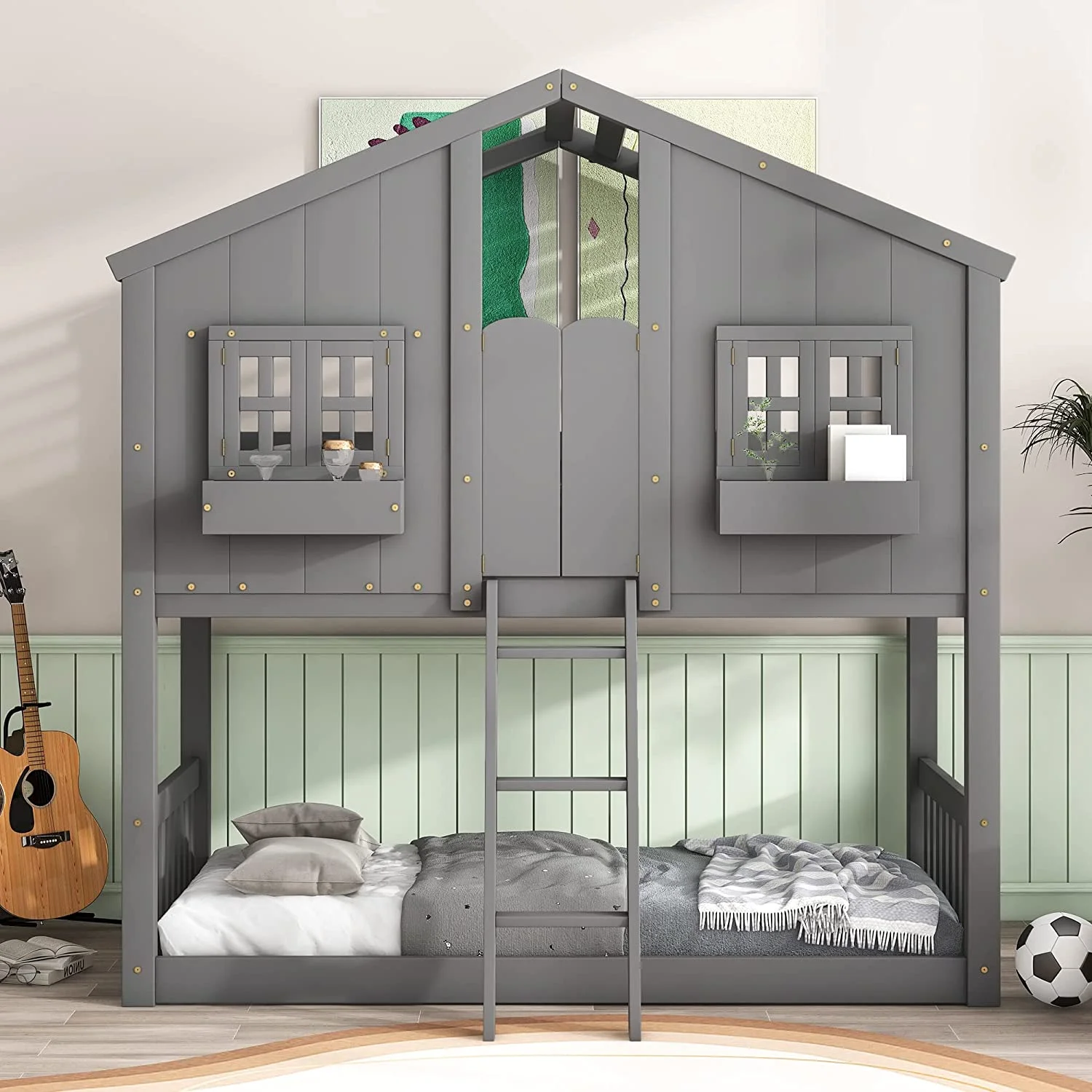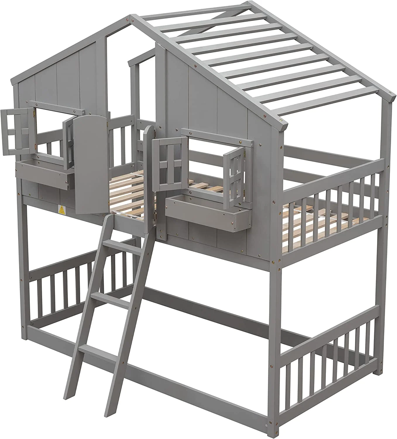 House Buk Bed Over Kids Buk Bed Wood Frame For Girls Boys, Roof Desig ( Size, Espresso)