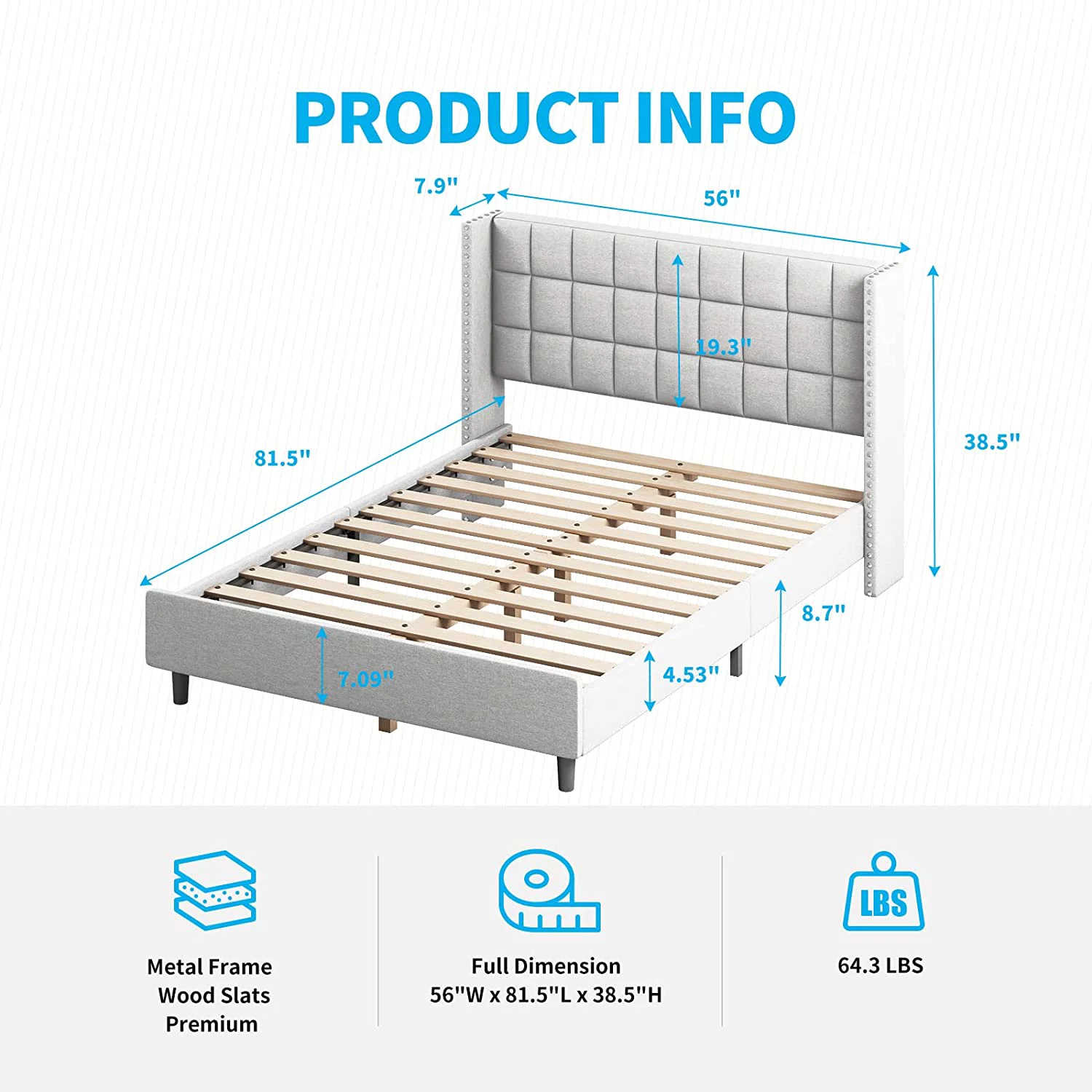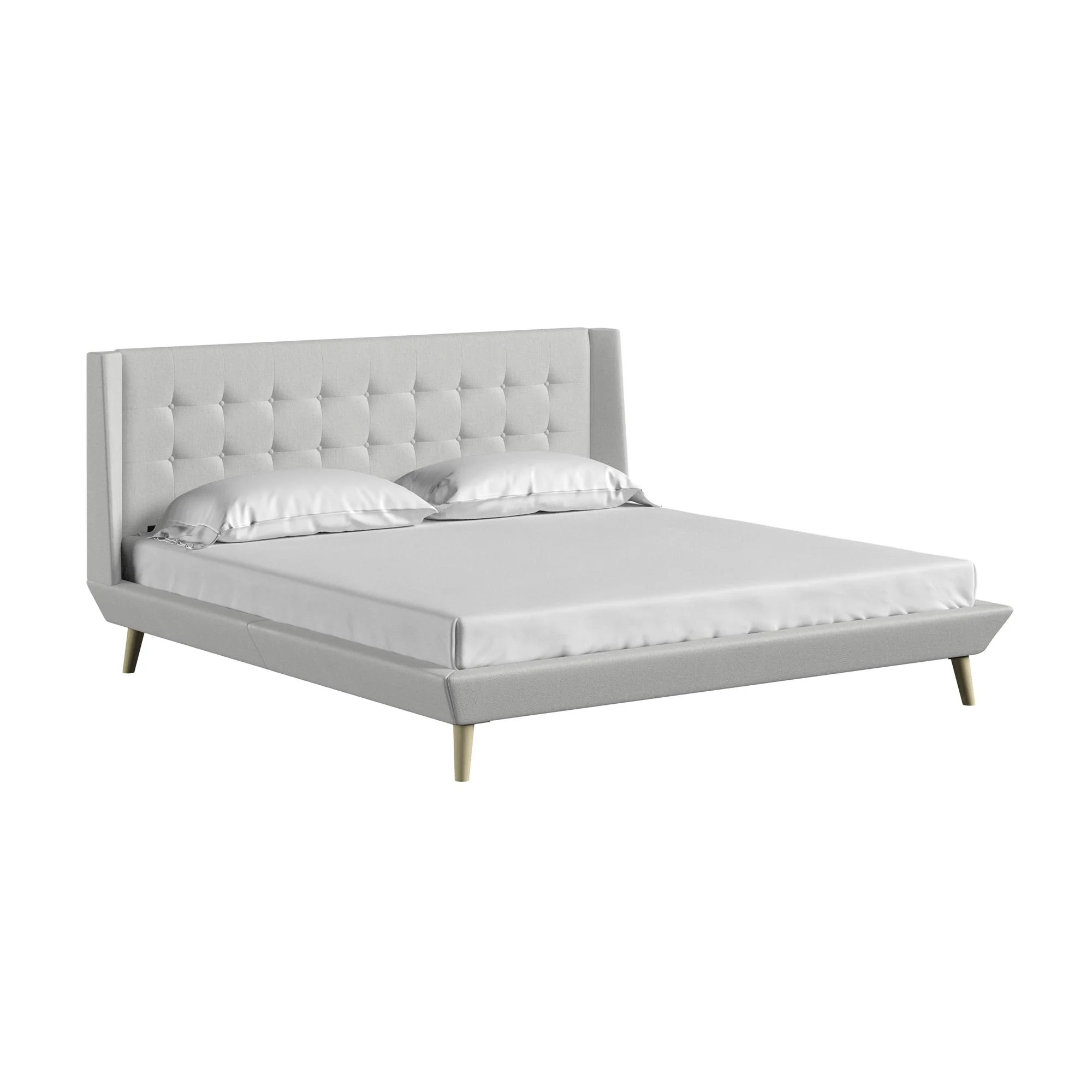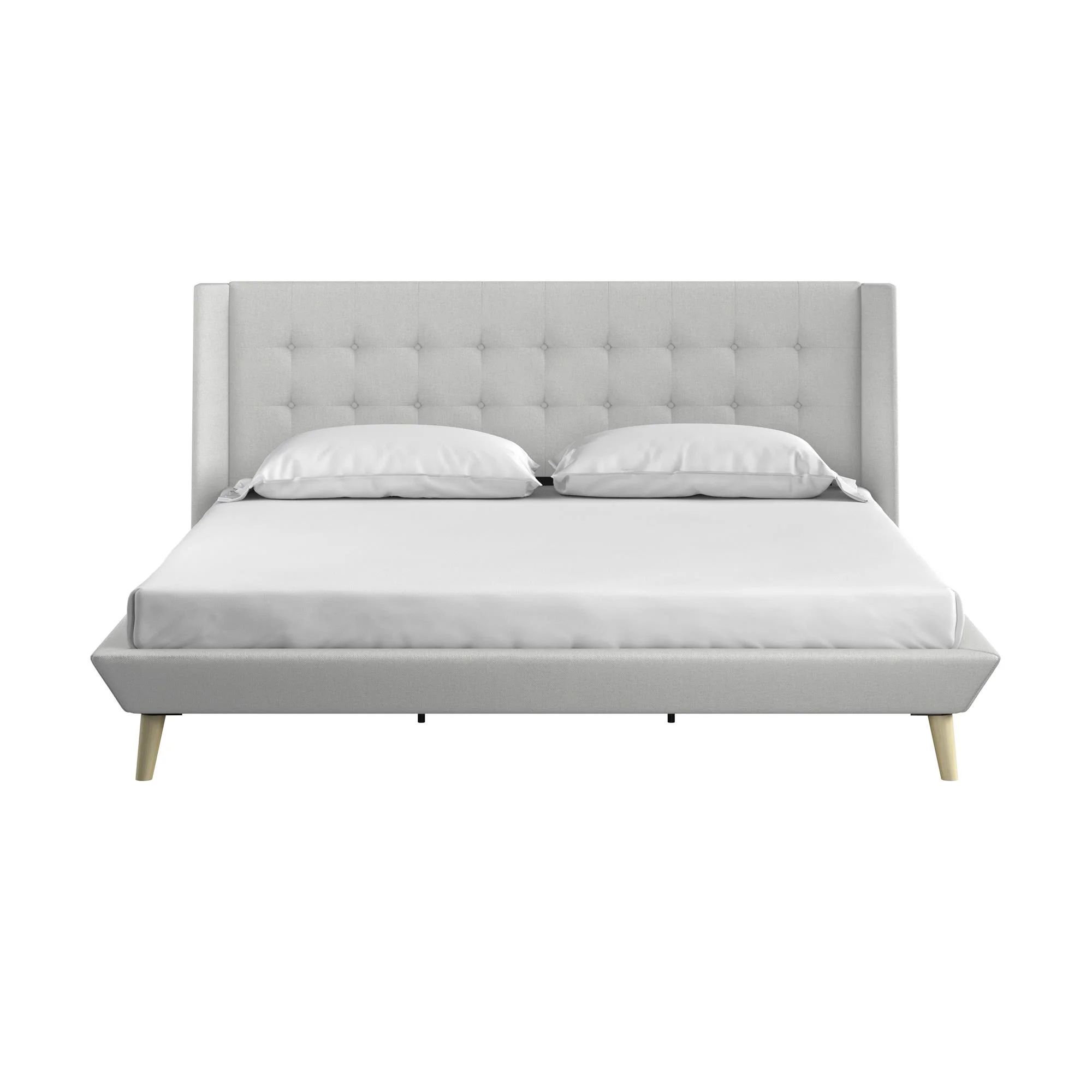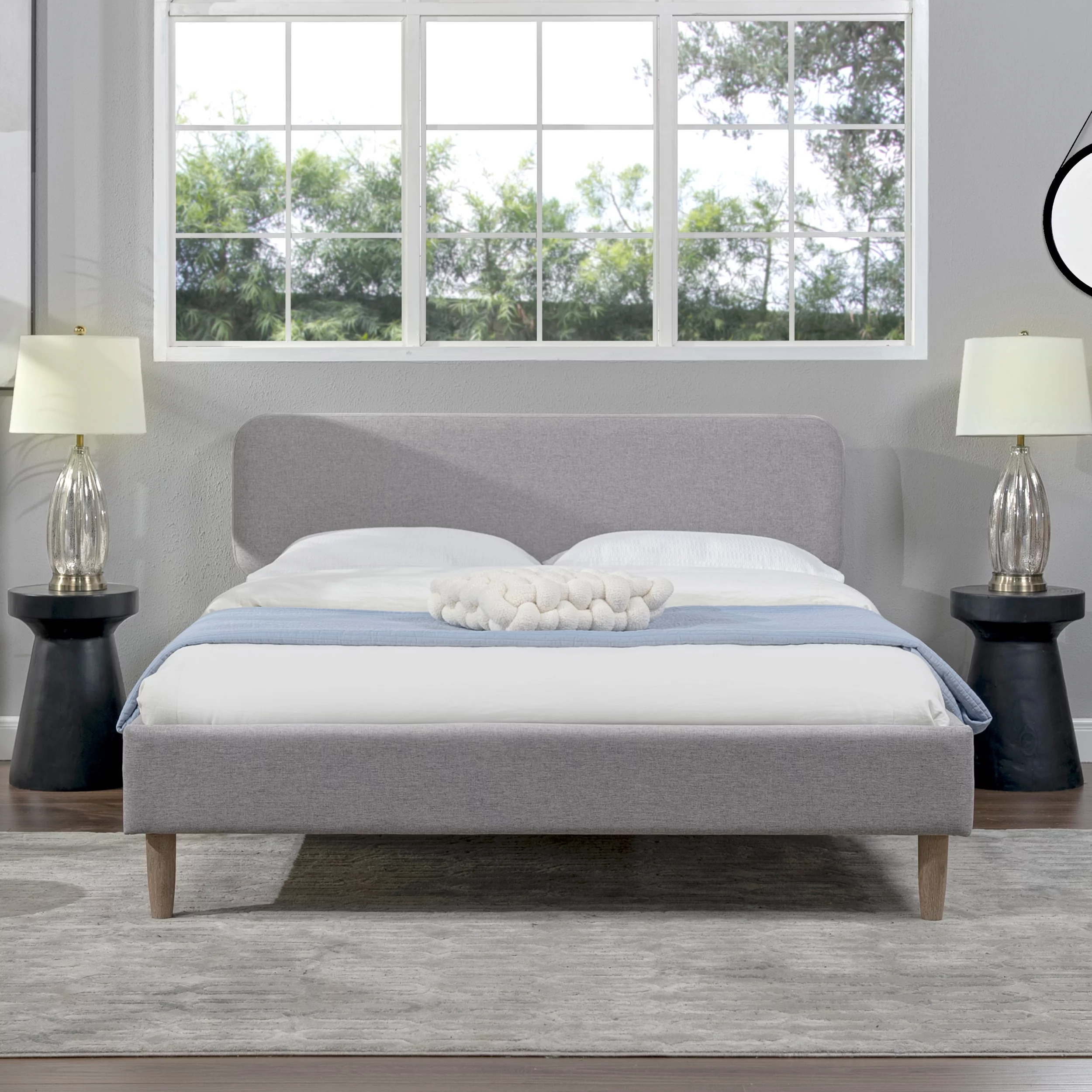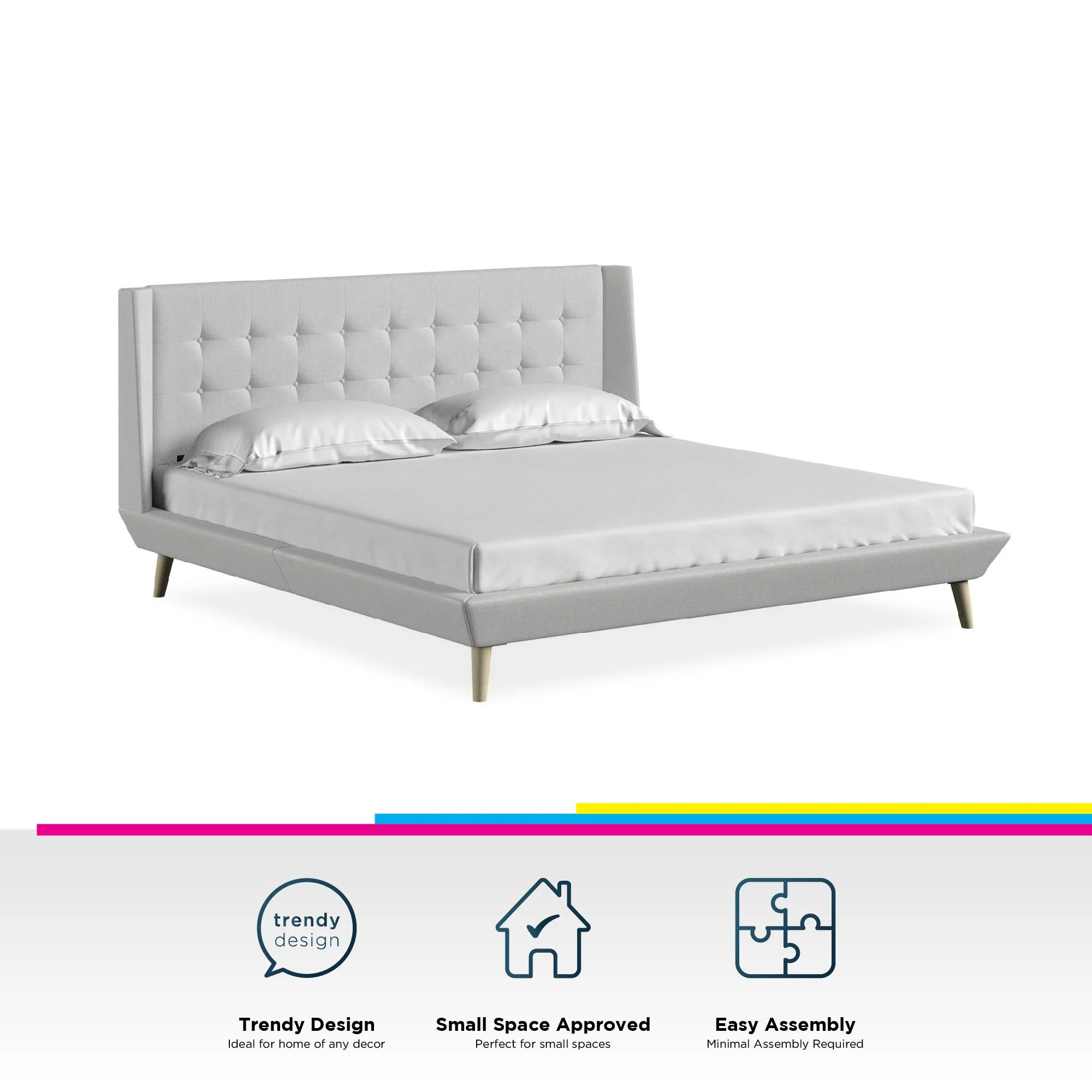Jennifer Taylor Home Diego Low Upholstered Platform Bed, Queen, Light Grey Polyester