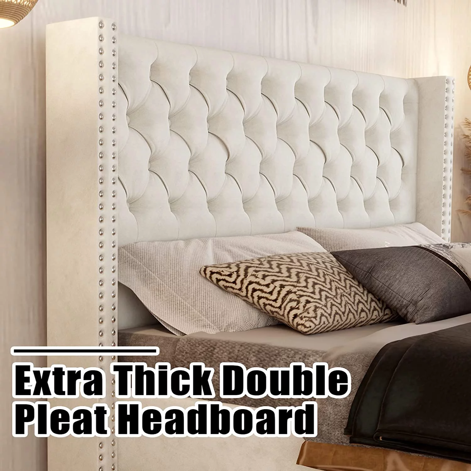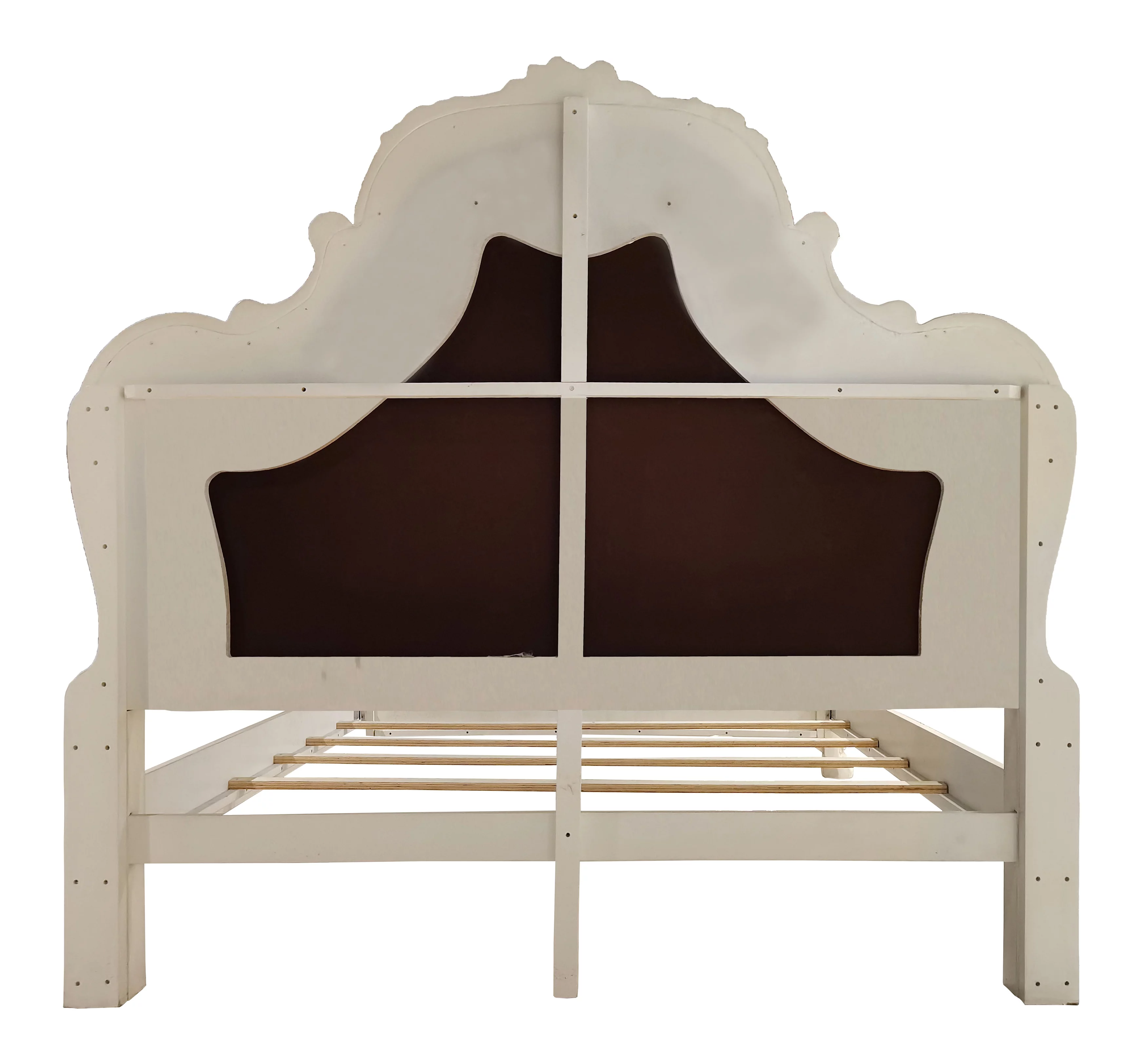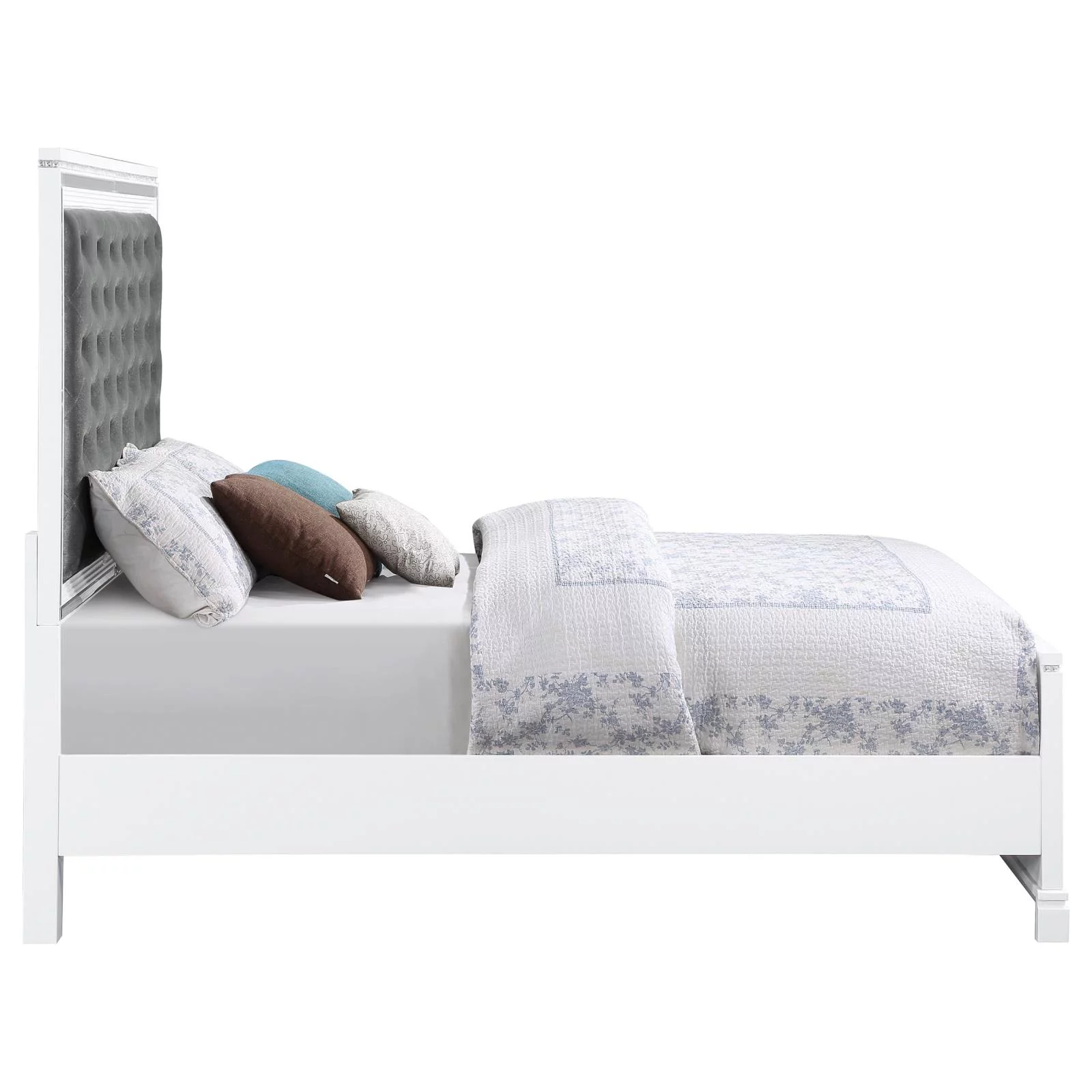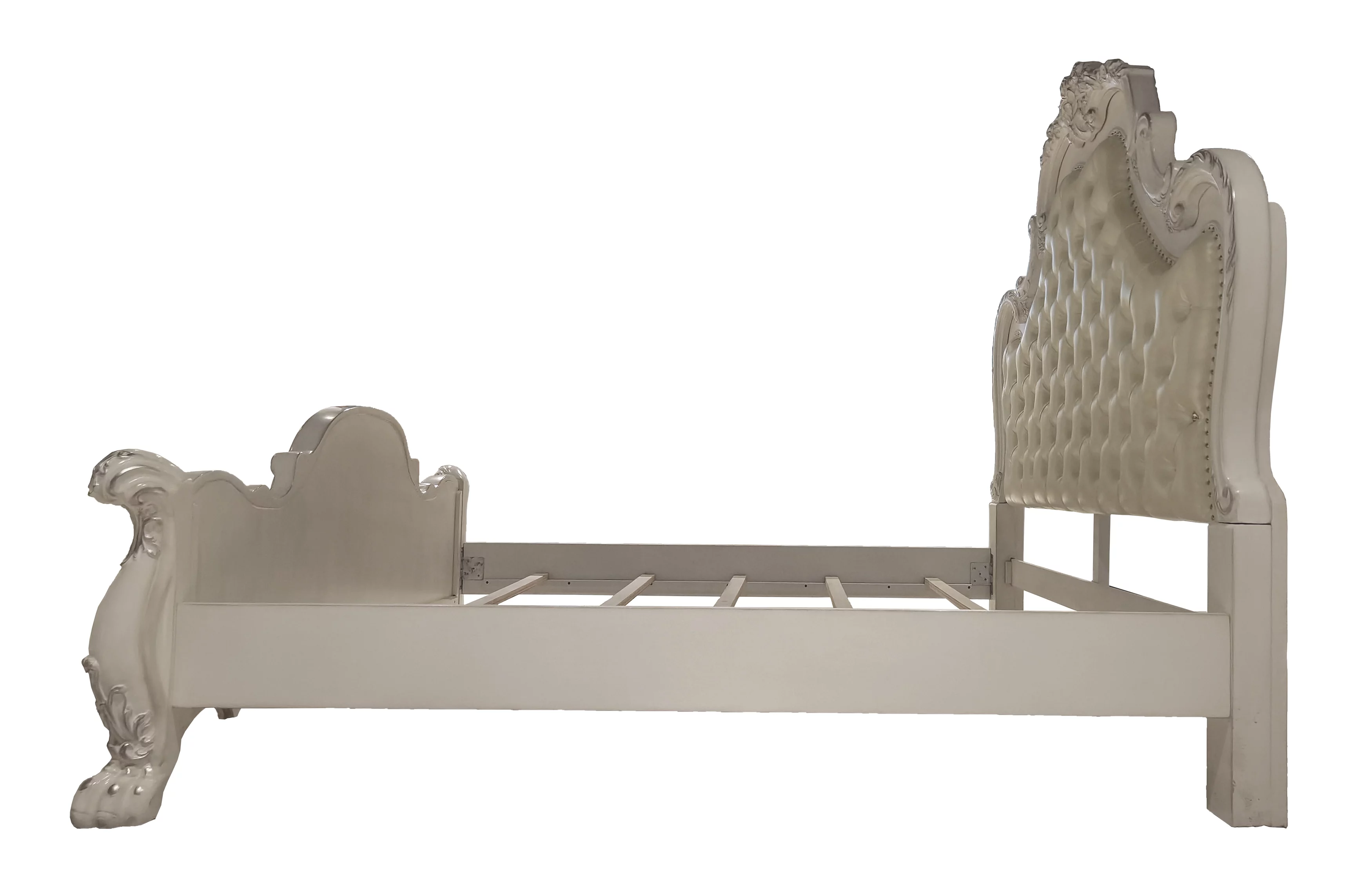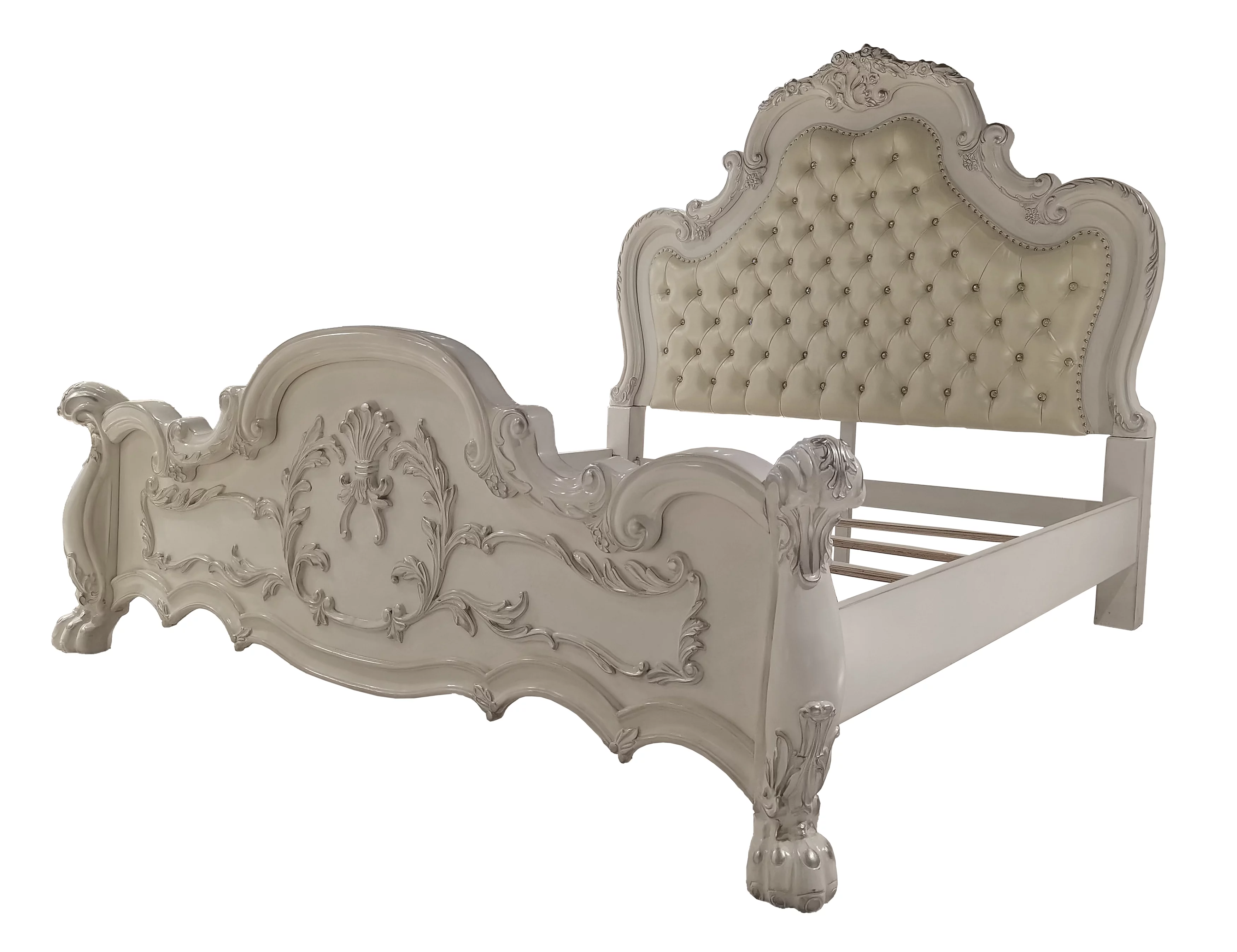 ACME Dresden Upholstered Tufted Bed with Nailhead Trim in Bone White