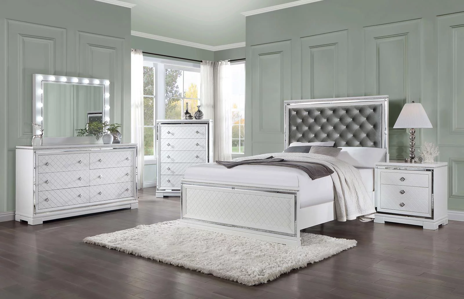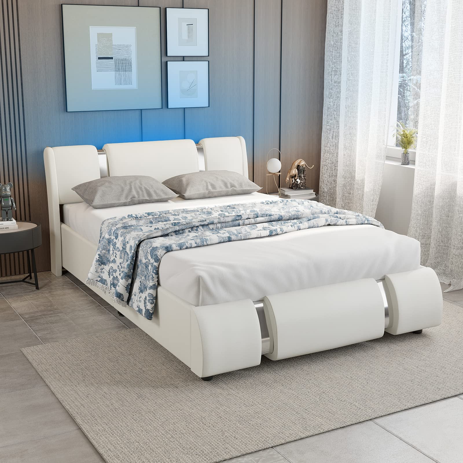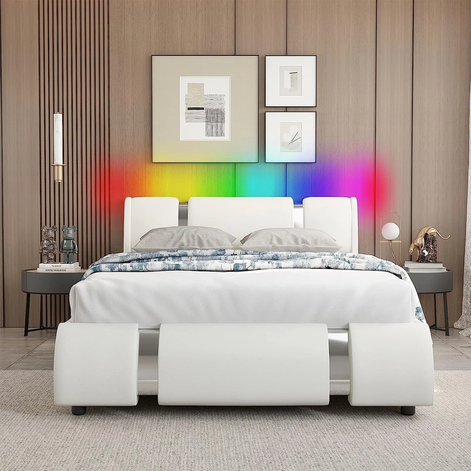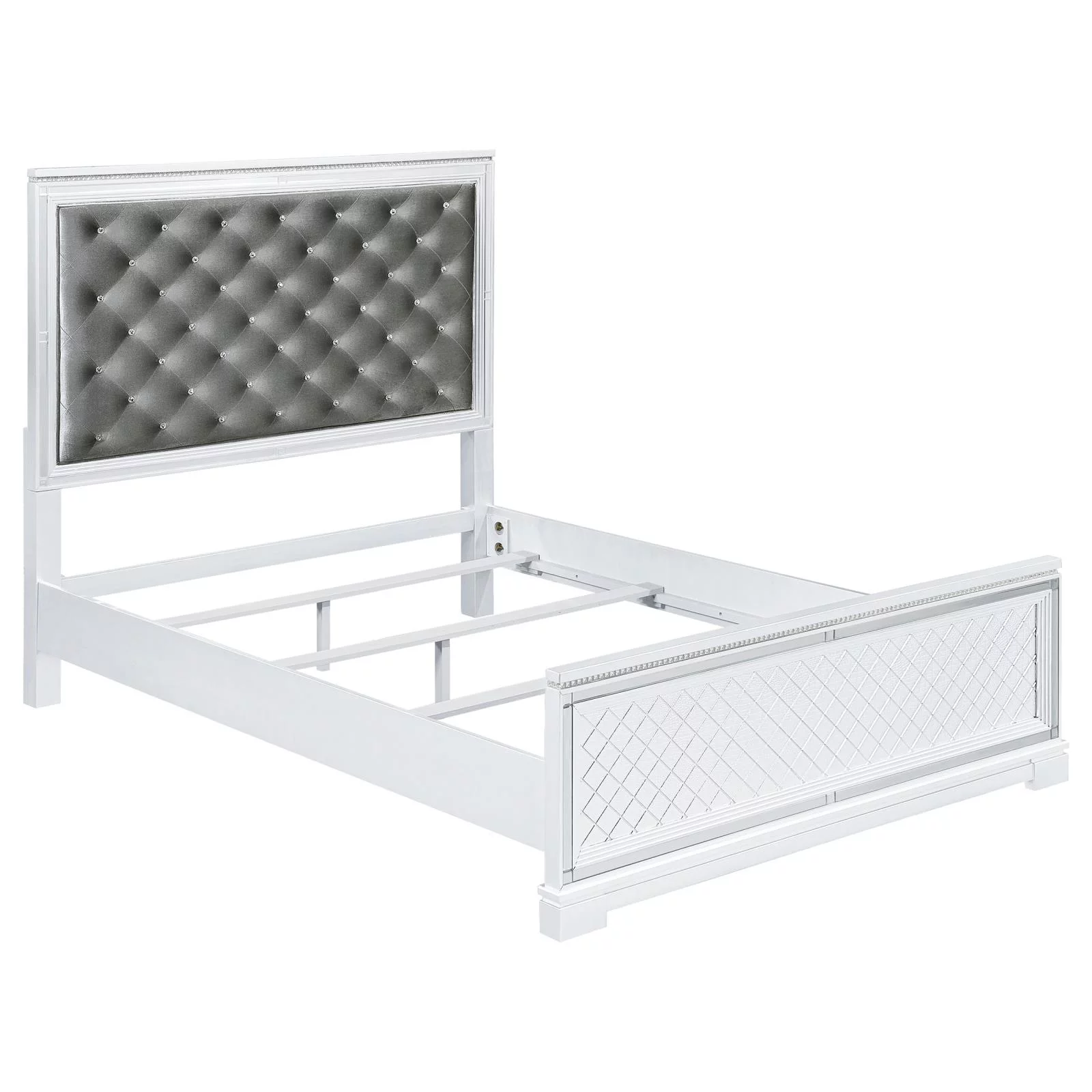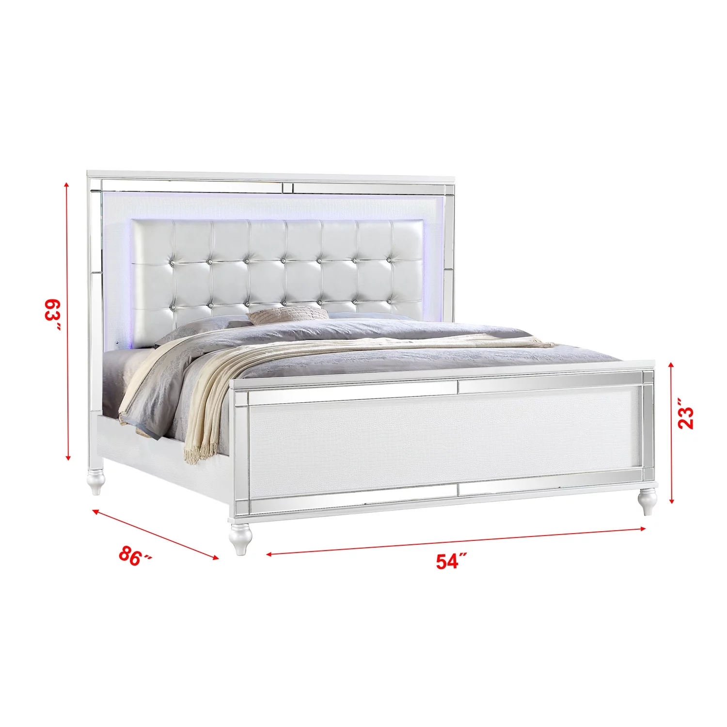 Galaxy Home Furnishings Sterling Full Size Upholstered LED Bed made with wood in White Color