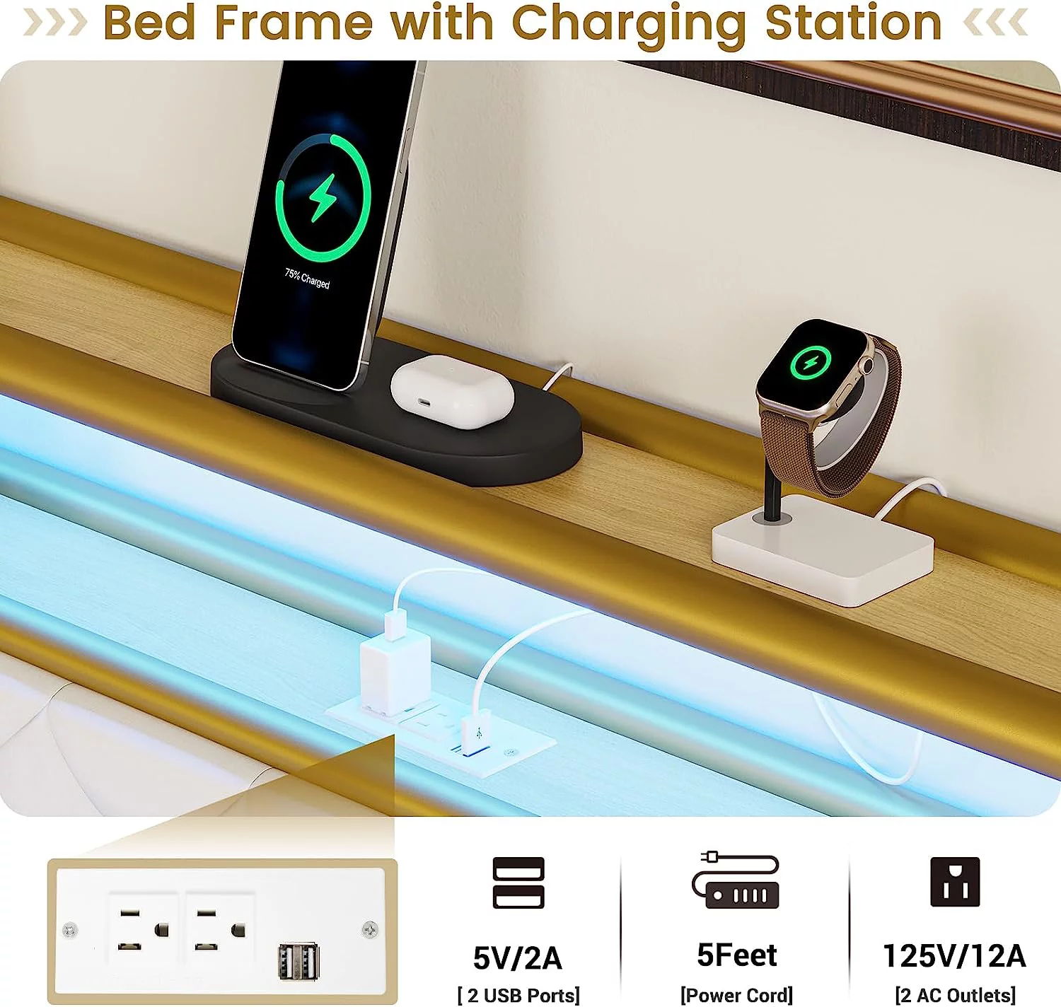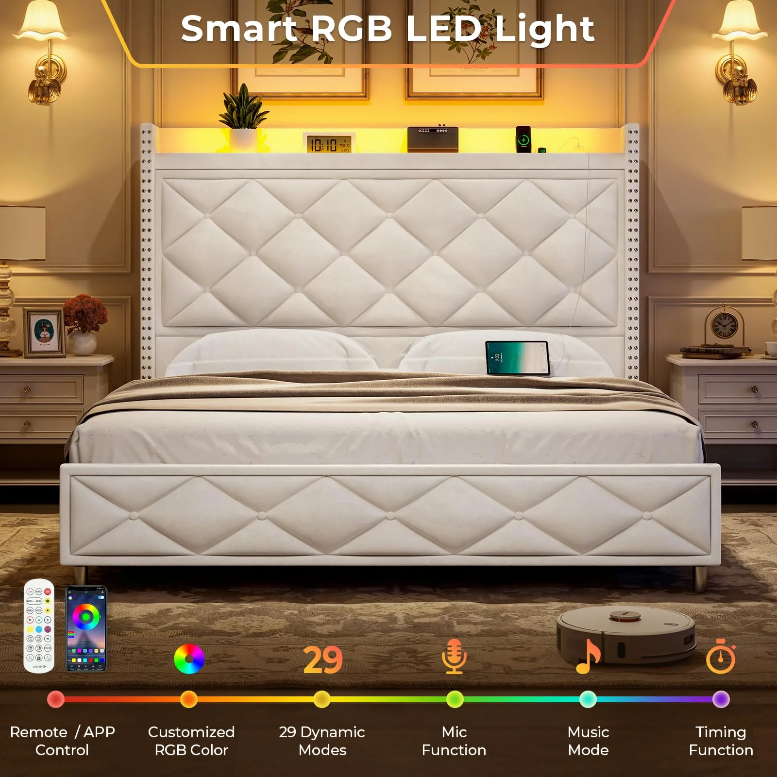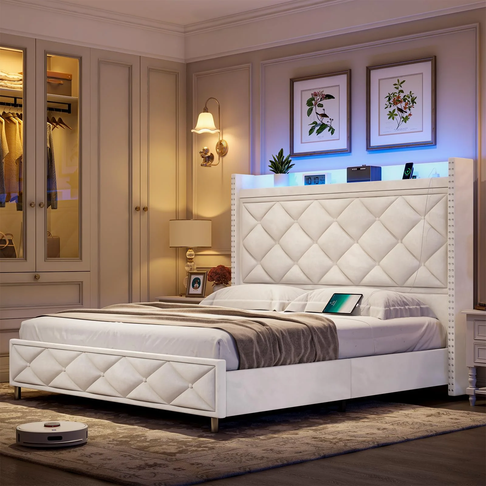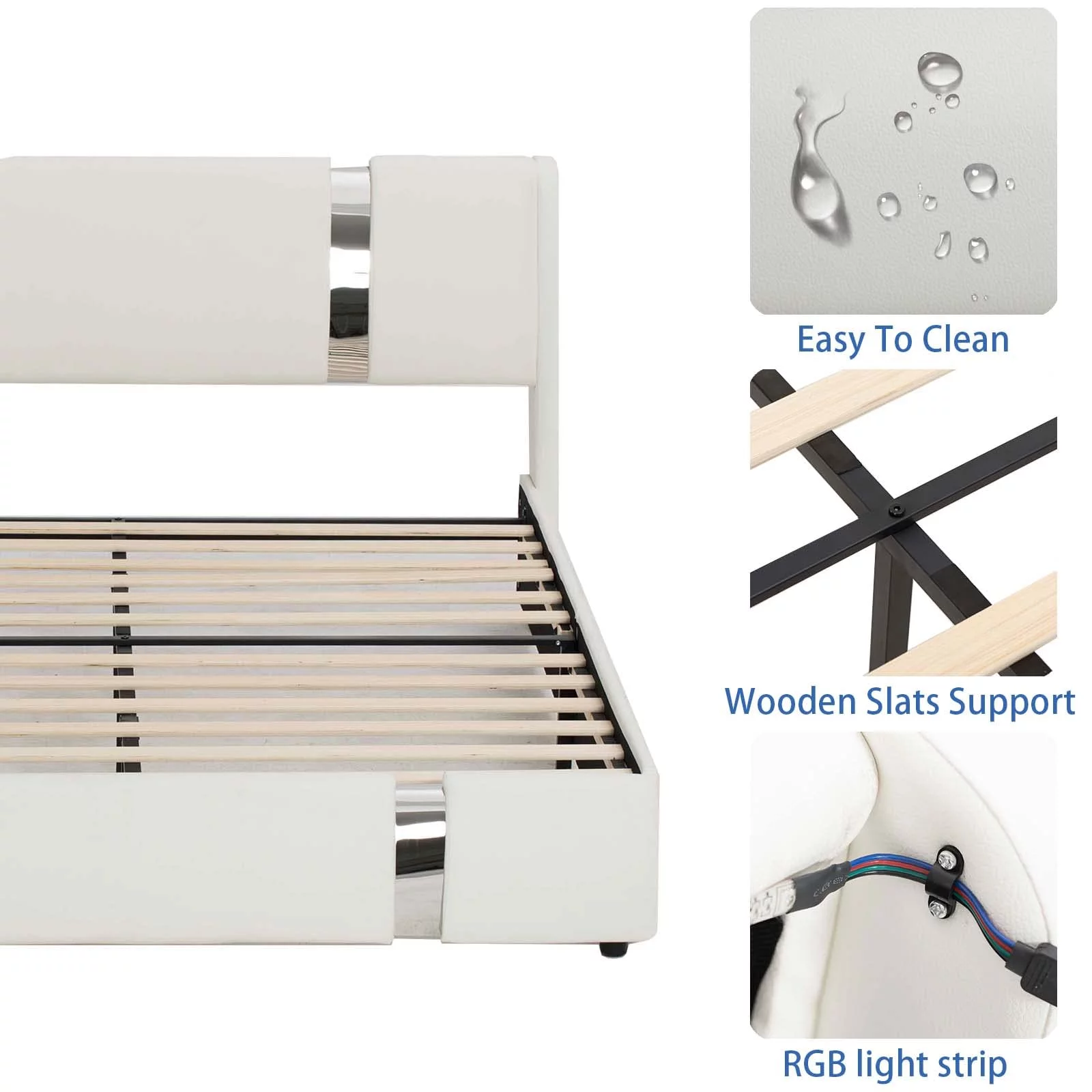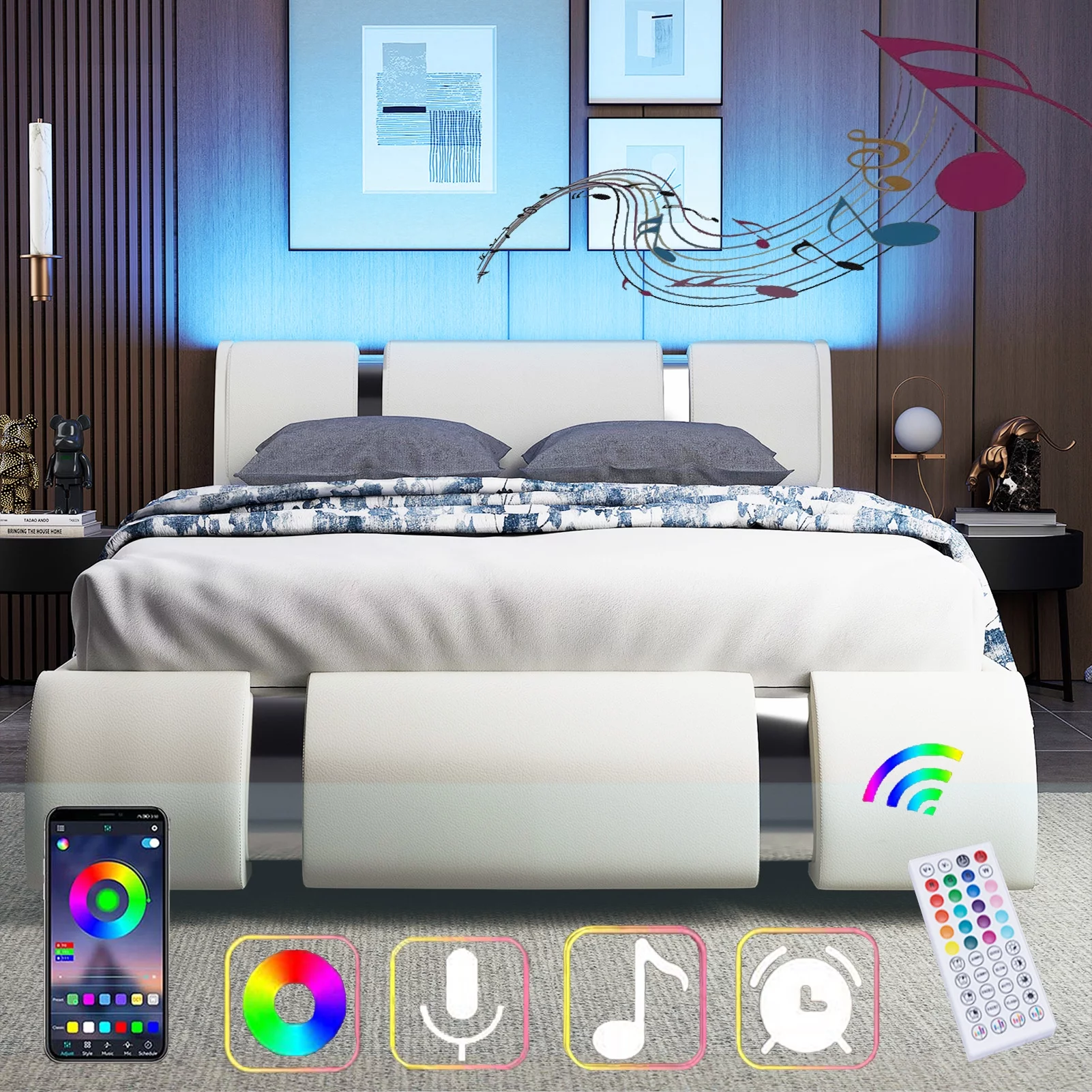 Galaxy Home Furnishings Sterling Full Size Upholstered LED Bed made with wood in White Color