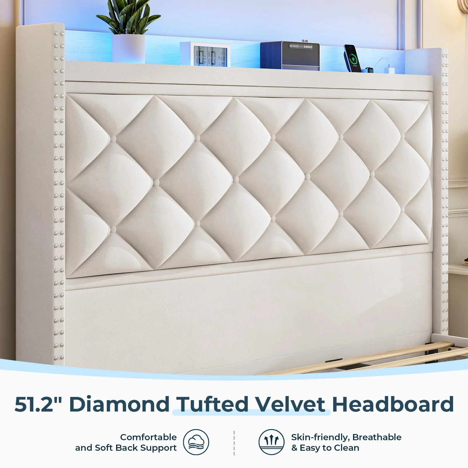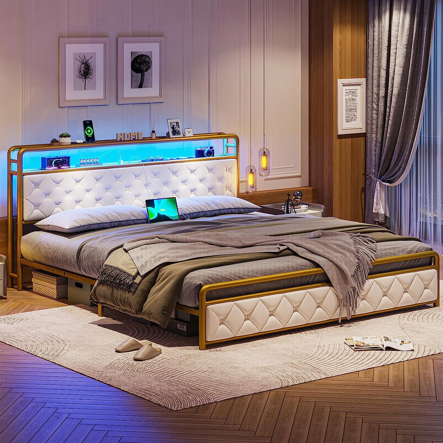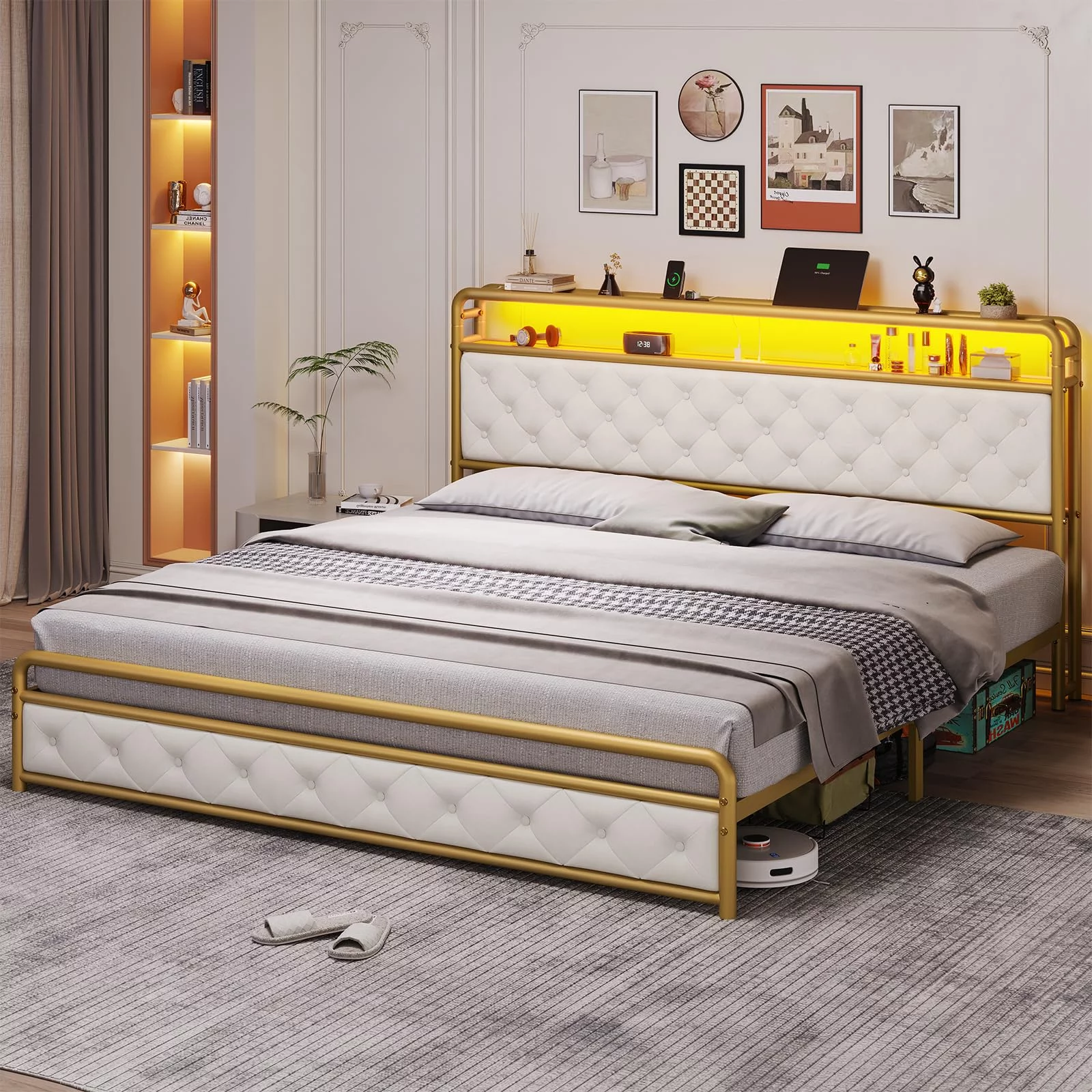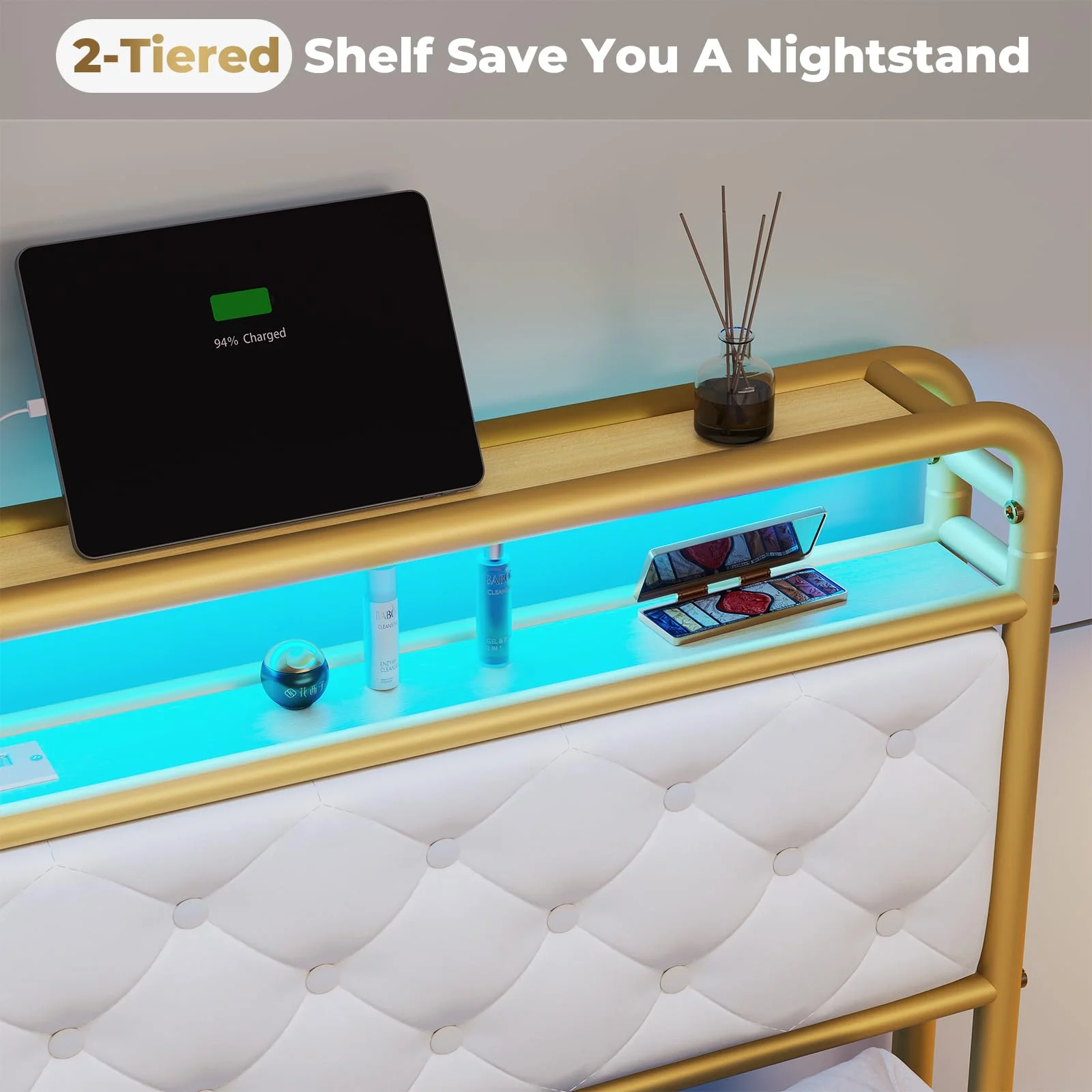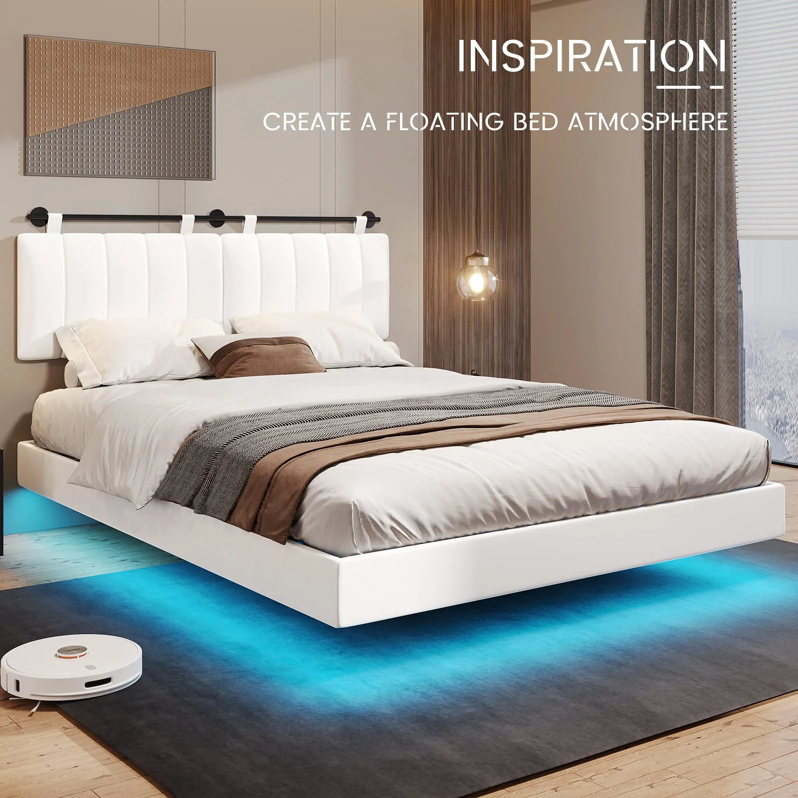 Galaxy Home Furnishings Sterling Full Size Upholstered LED Bed made with wood in White Color