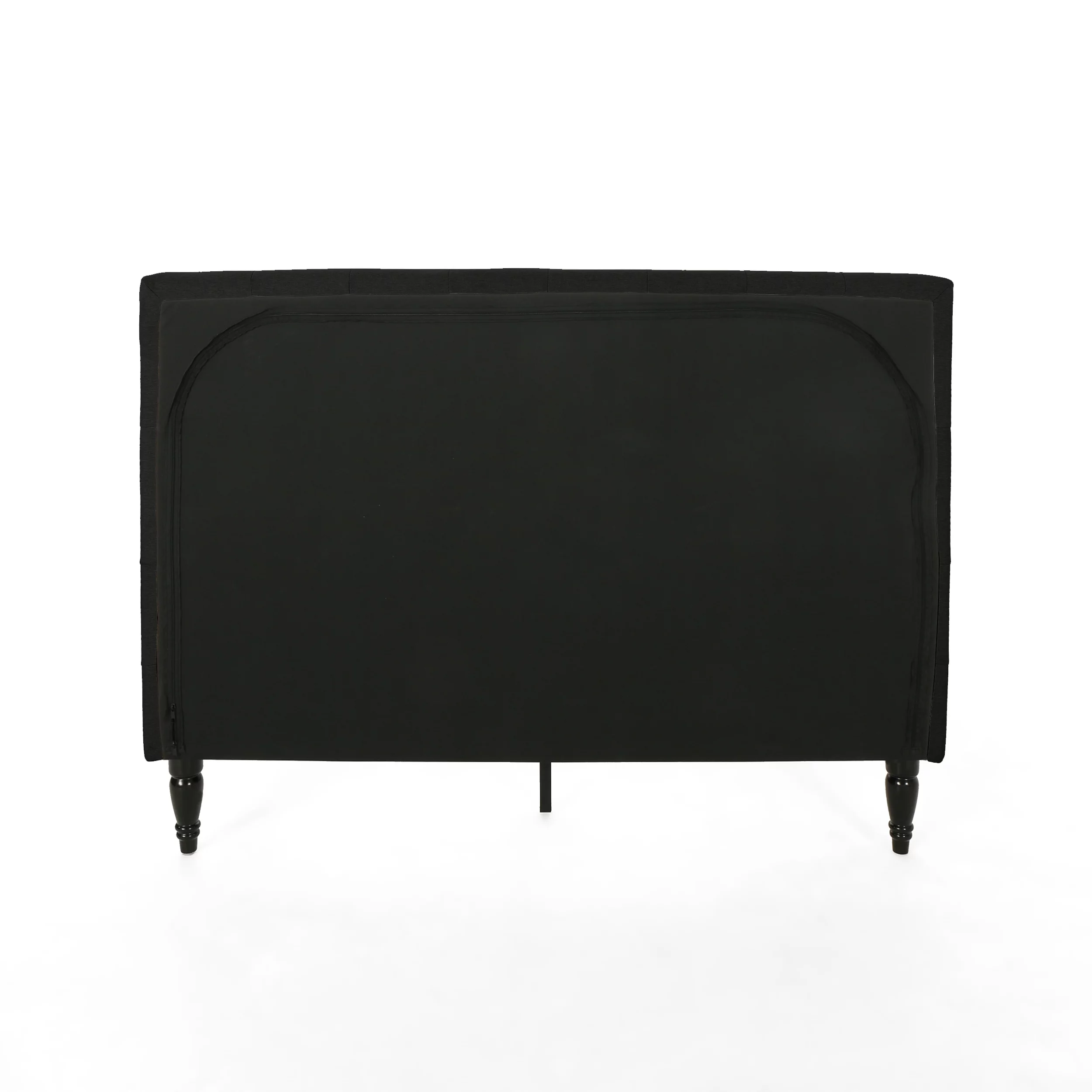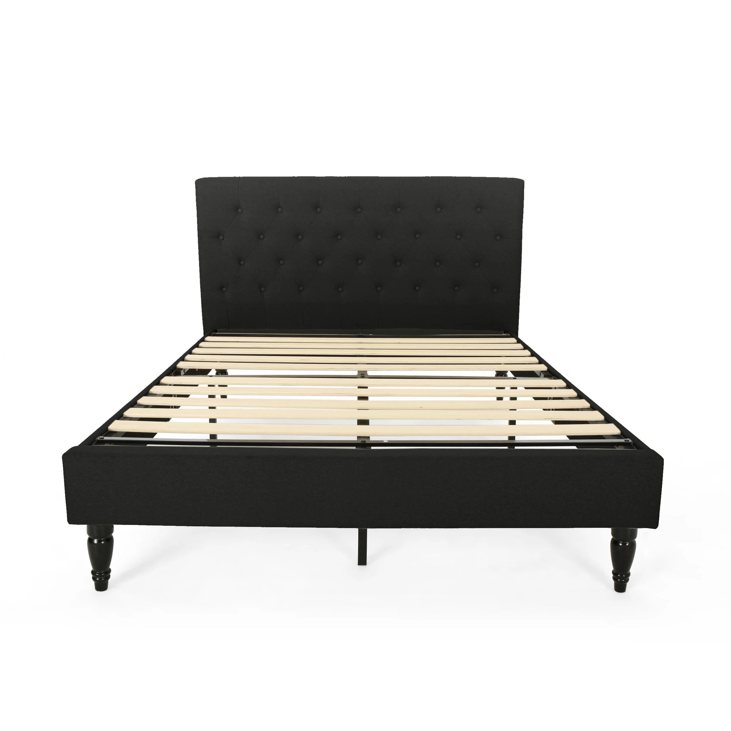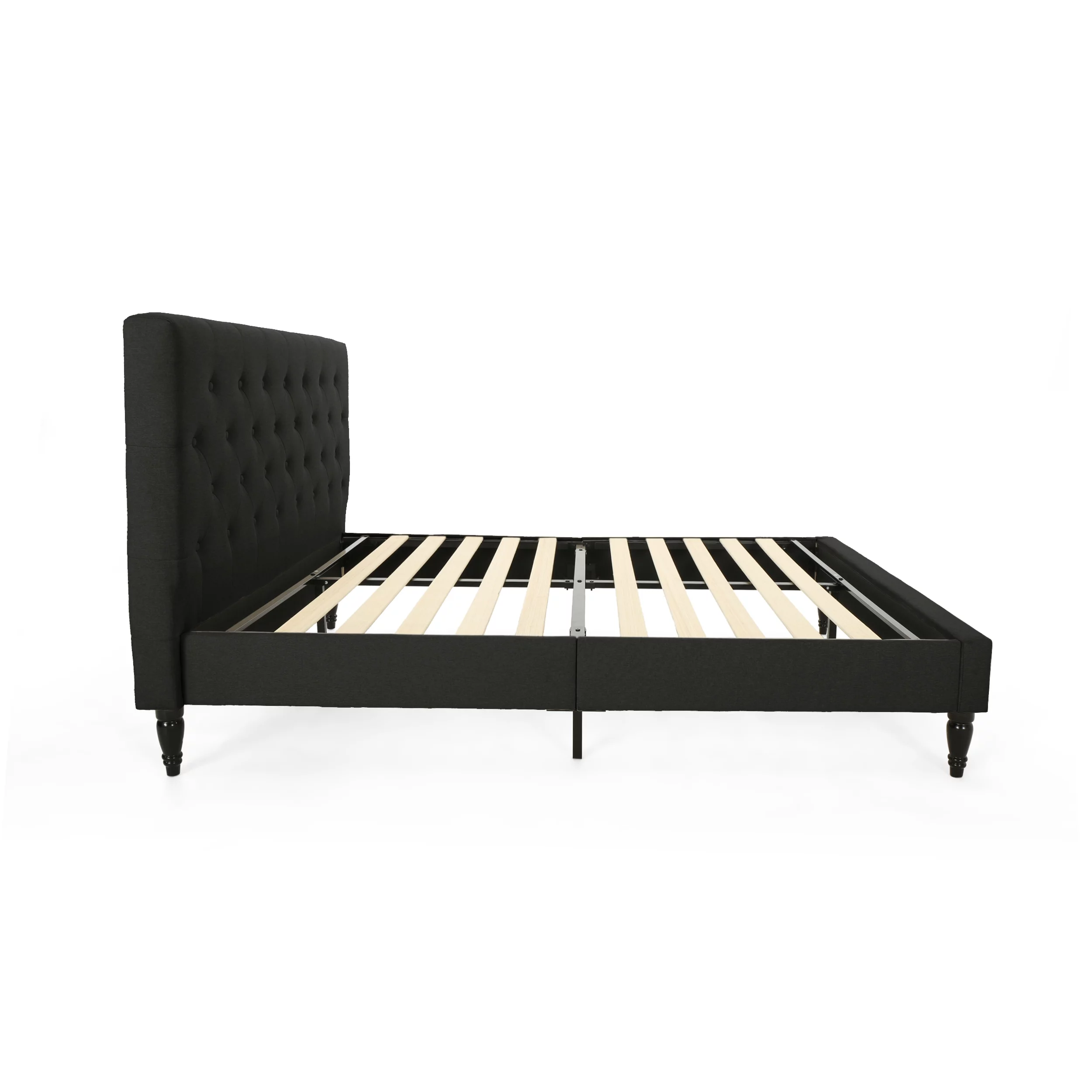 Noble House Kwan Contemporary Fully-Upholstered Queen-Size Fabric Low-Profile Platform Bed Frame, Black, Dark Brown