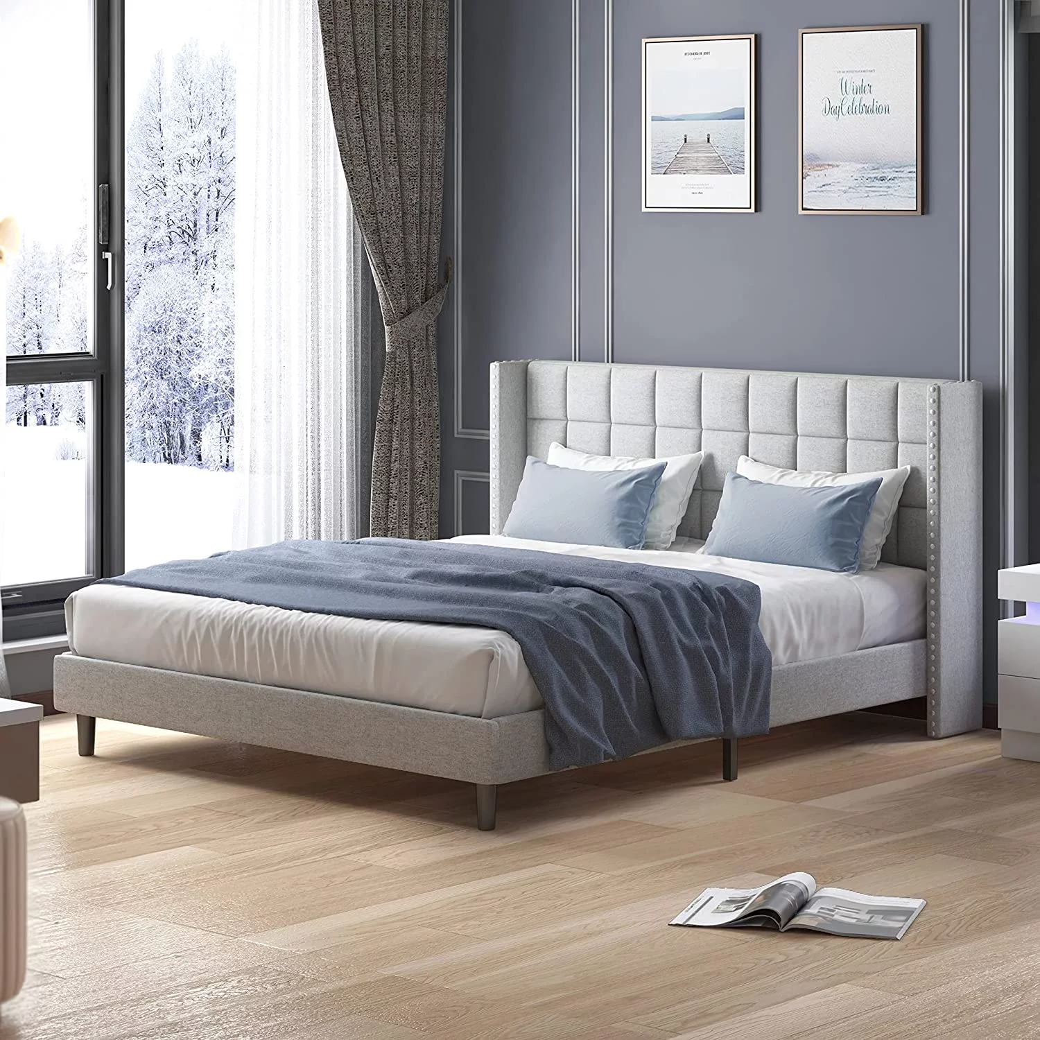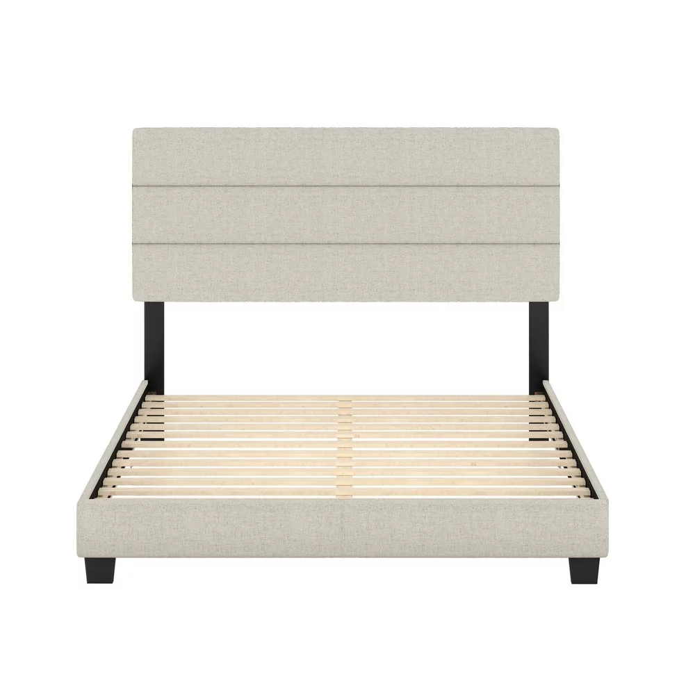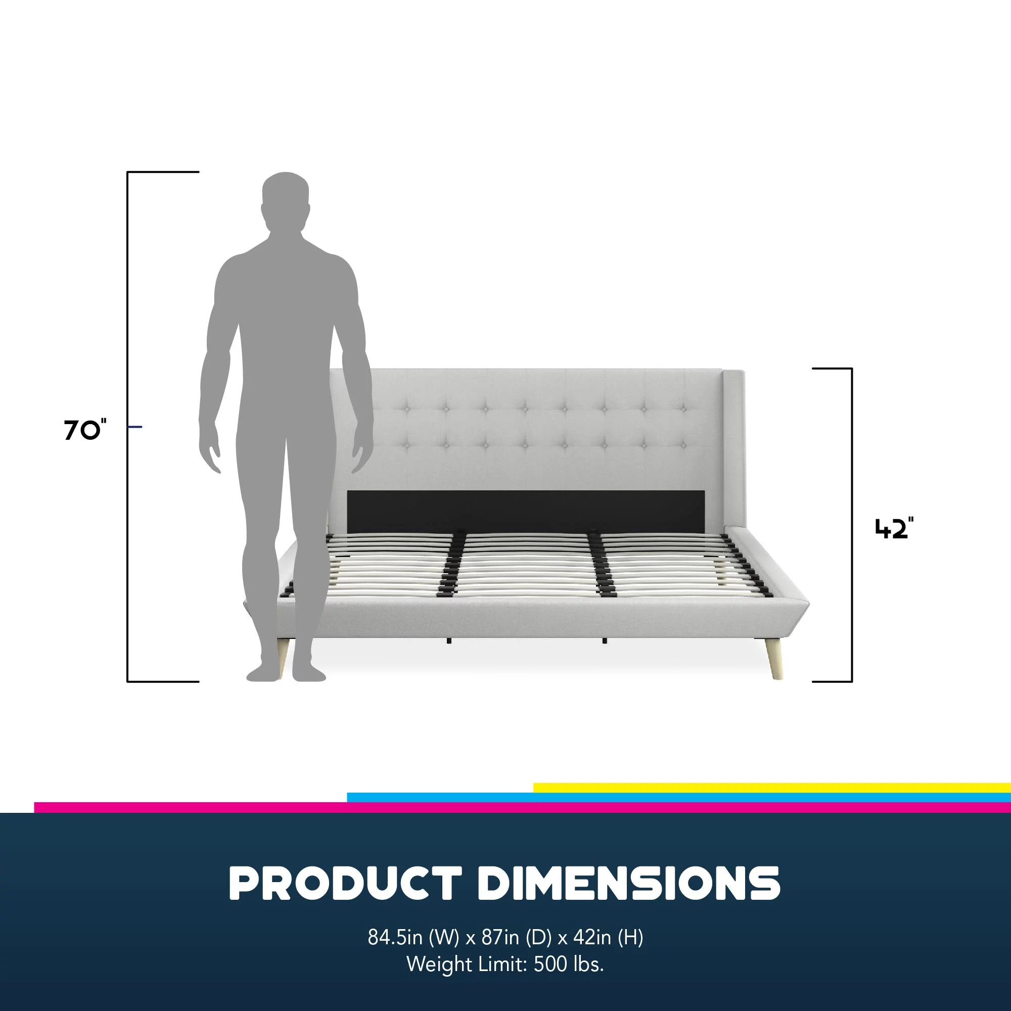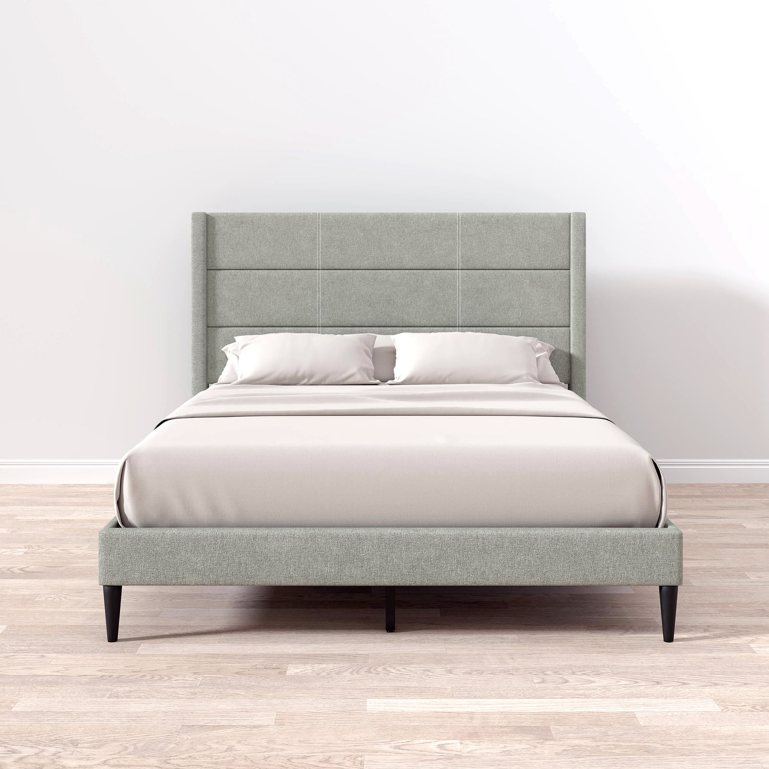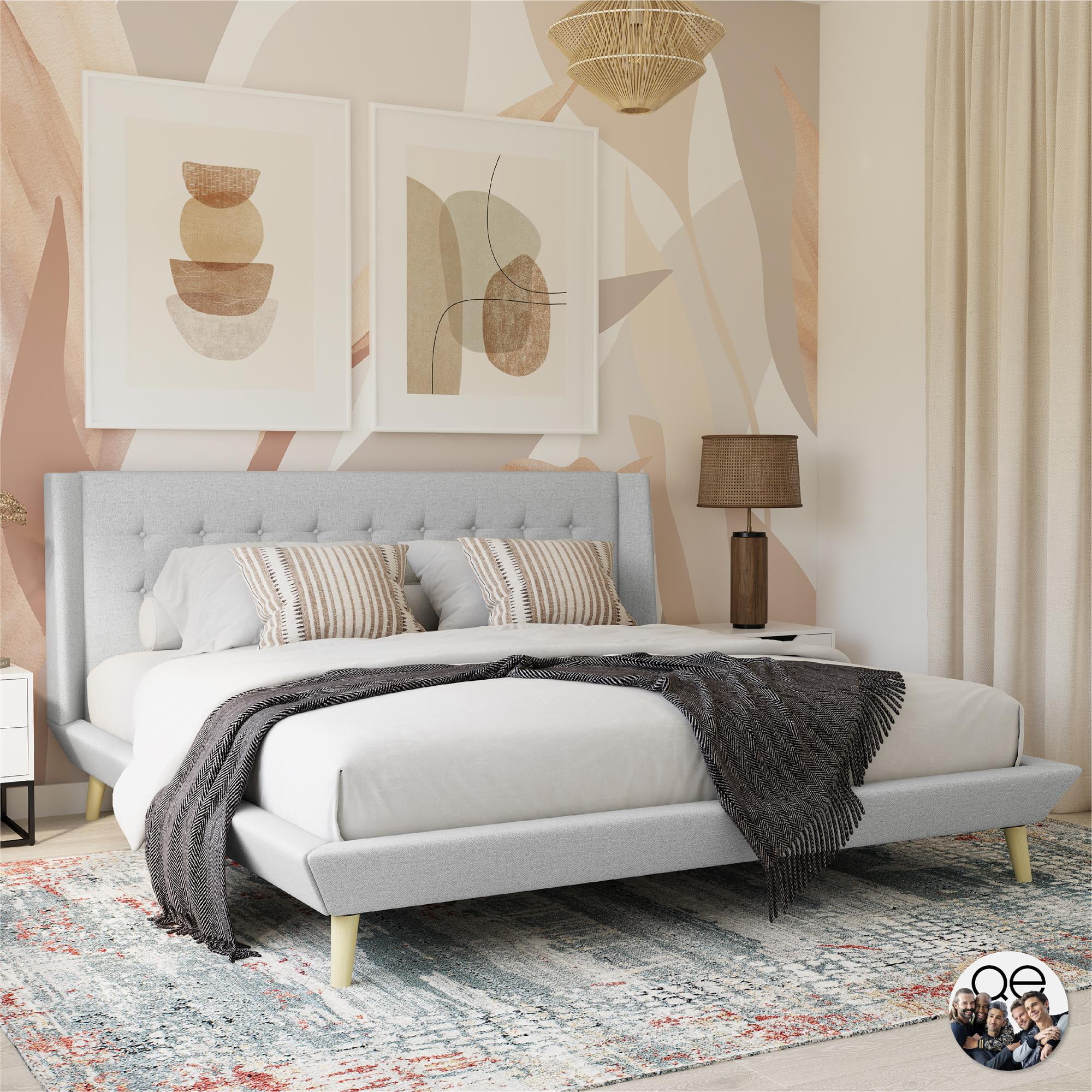 Queer Eye Farnsworth Upholstered Bed with Low Profile Platform Frame, King, Light Gray Linen