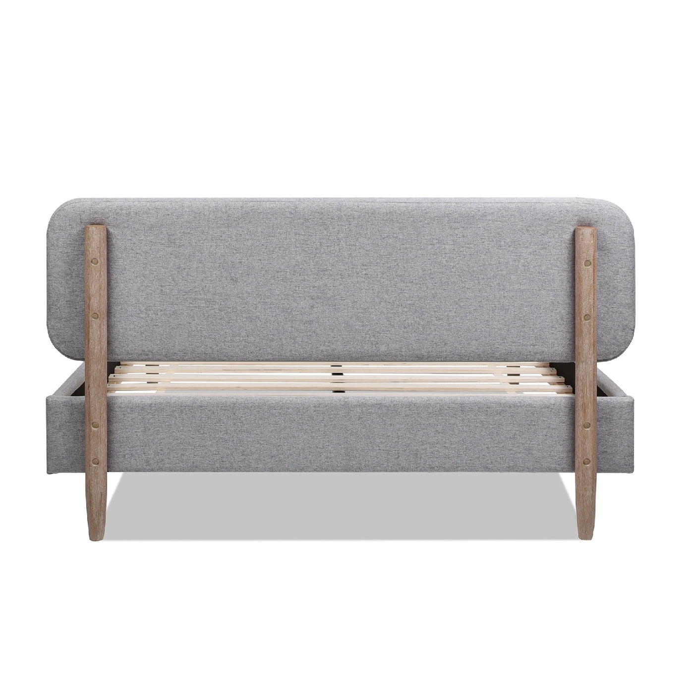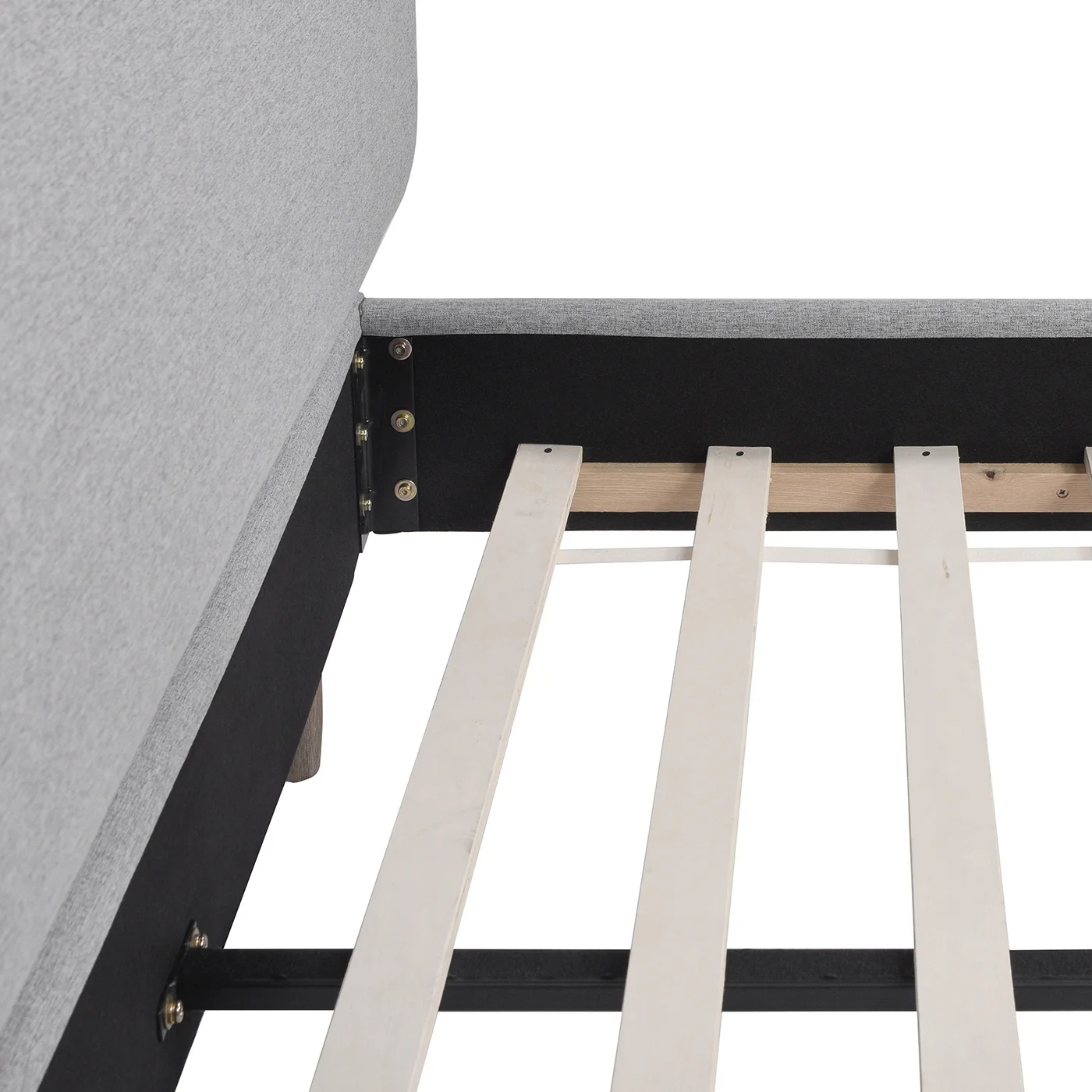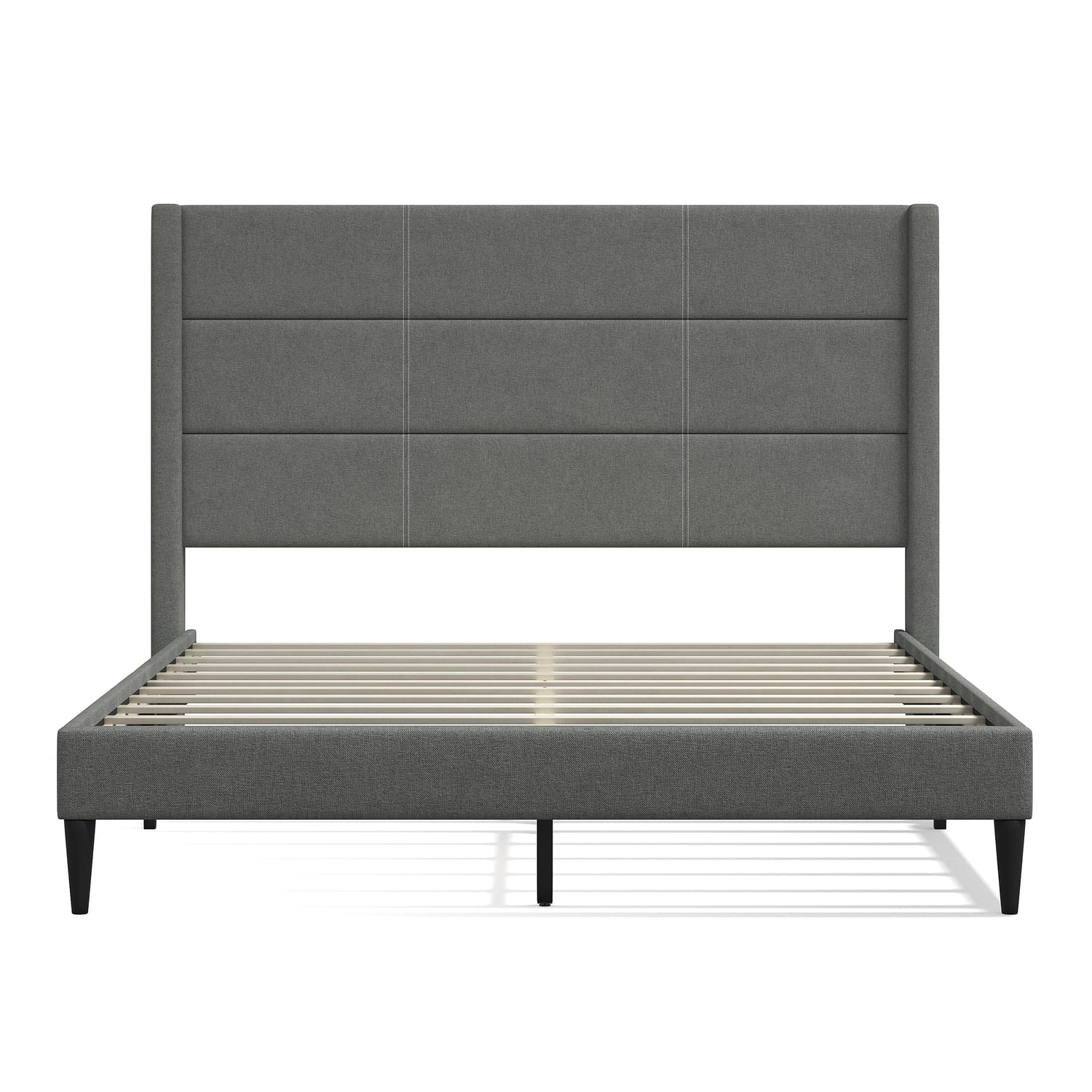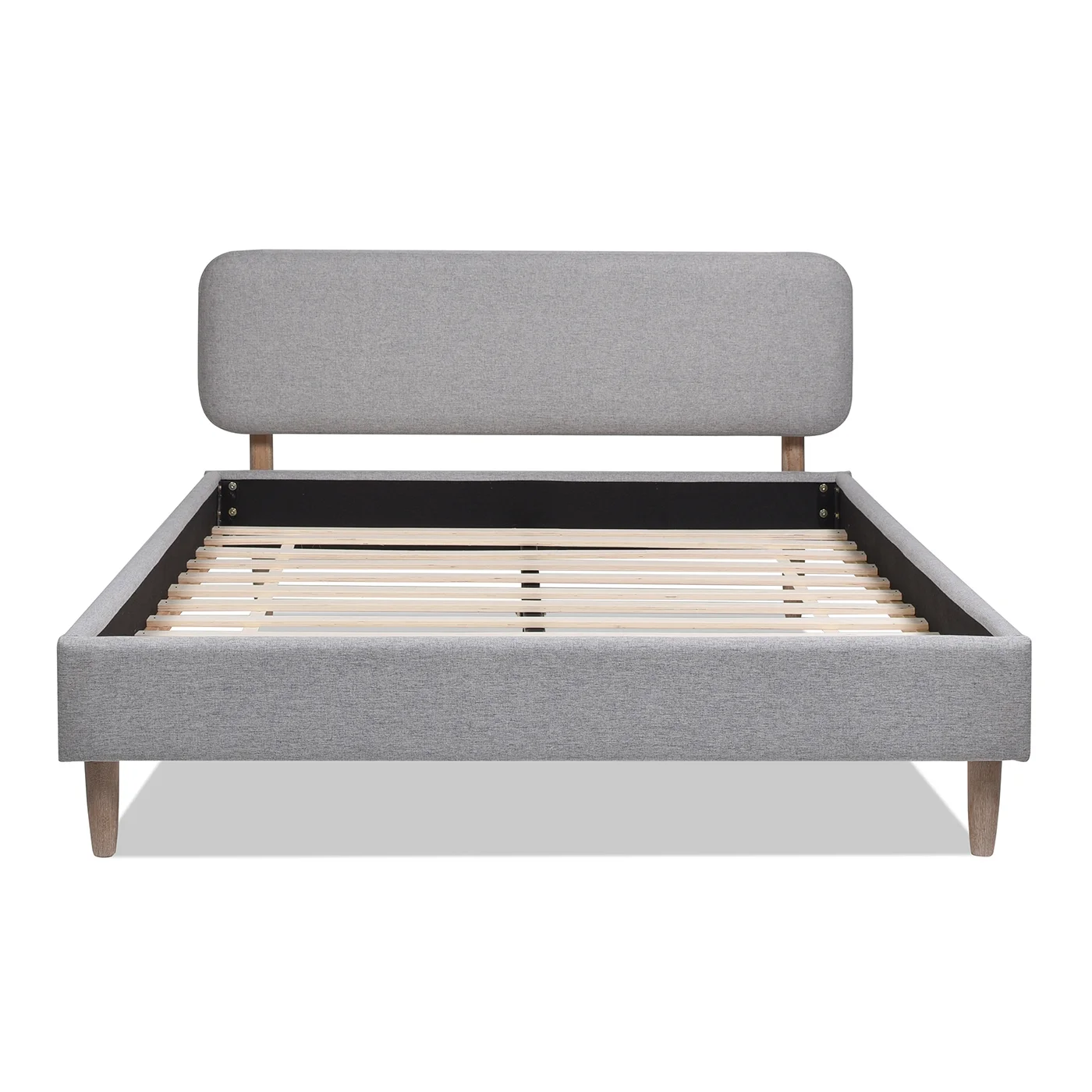 Queer Eye Farnsworth Upholstered Bed with Low Profile Platform Frame, King, Light Gray Linen