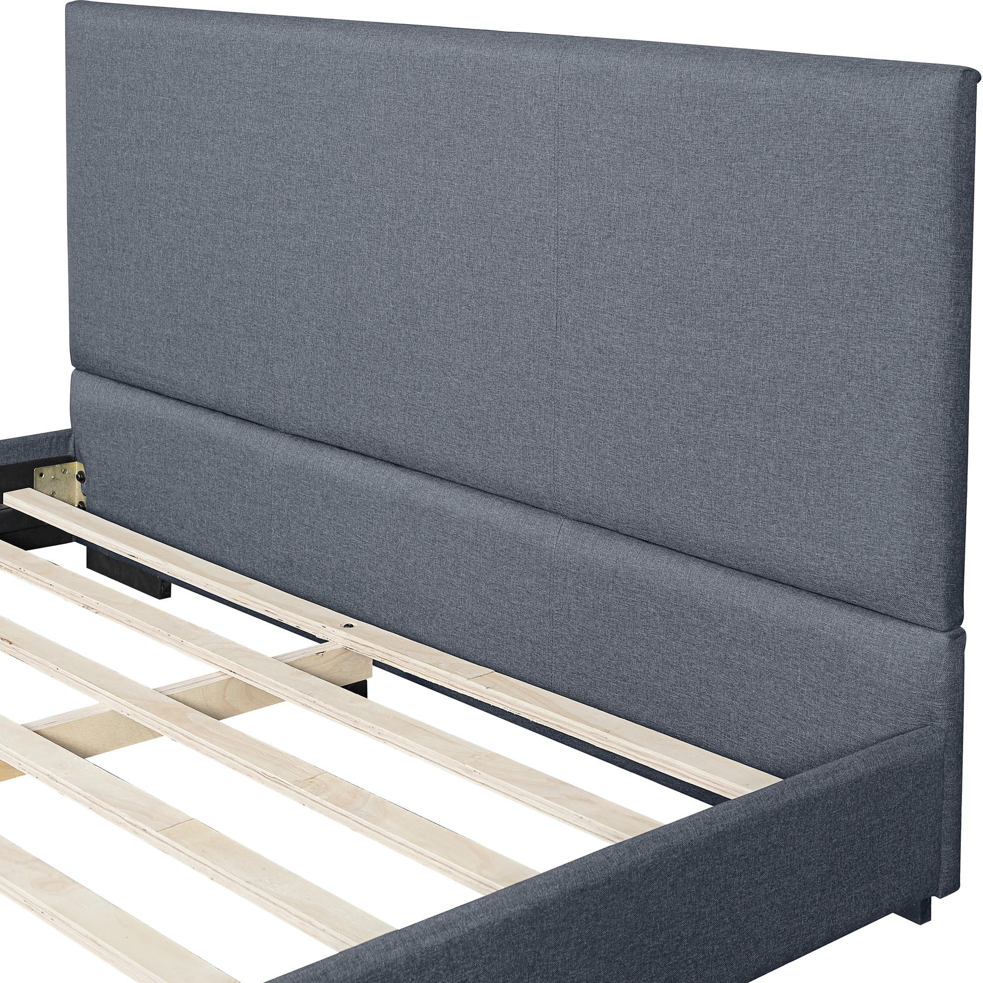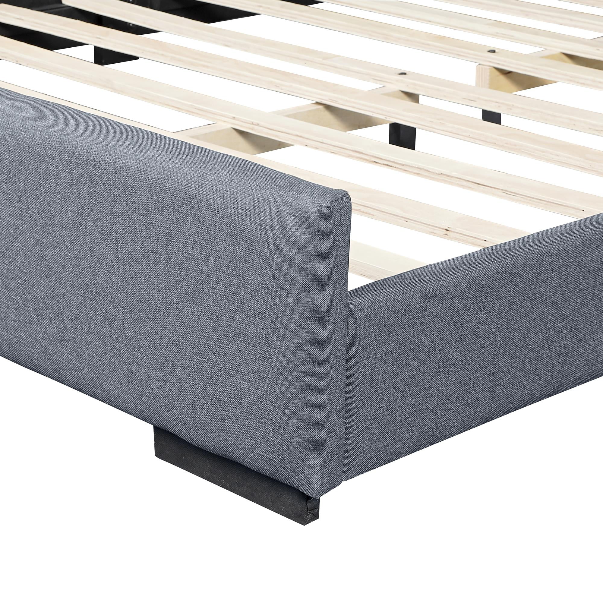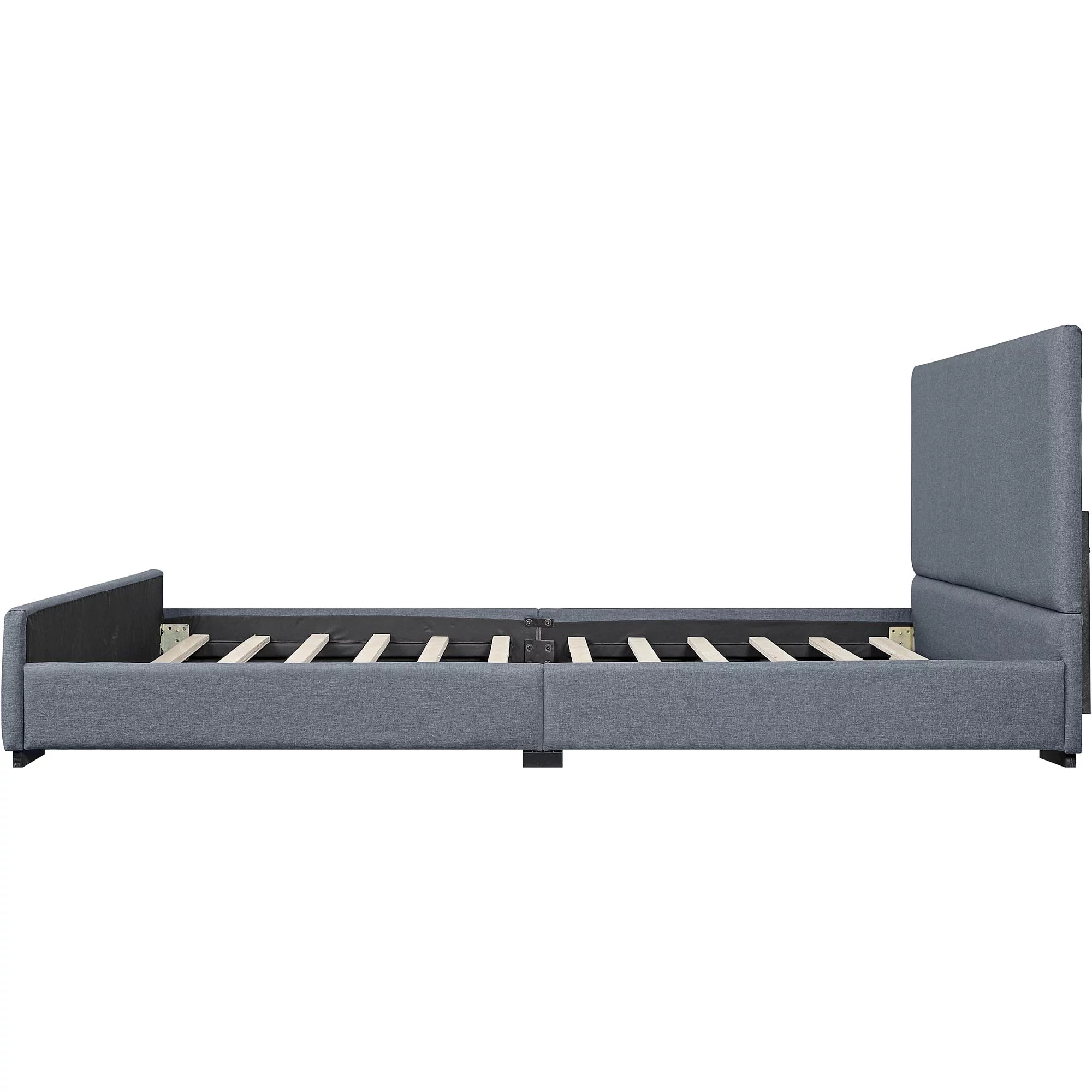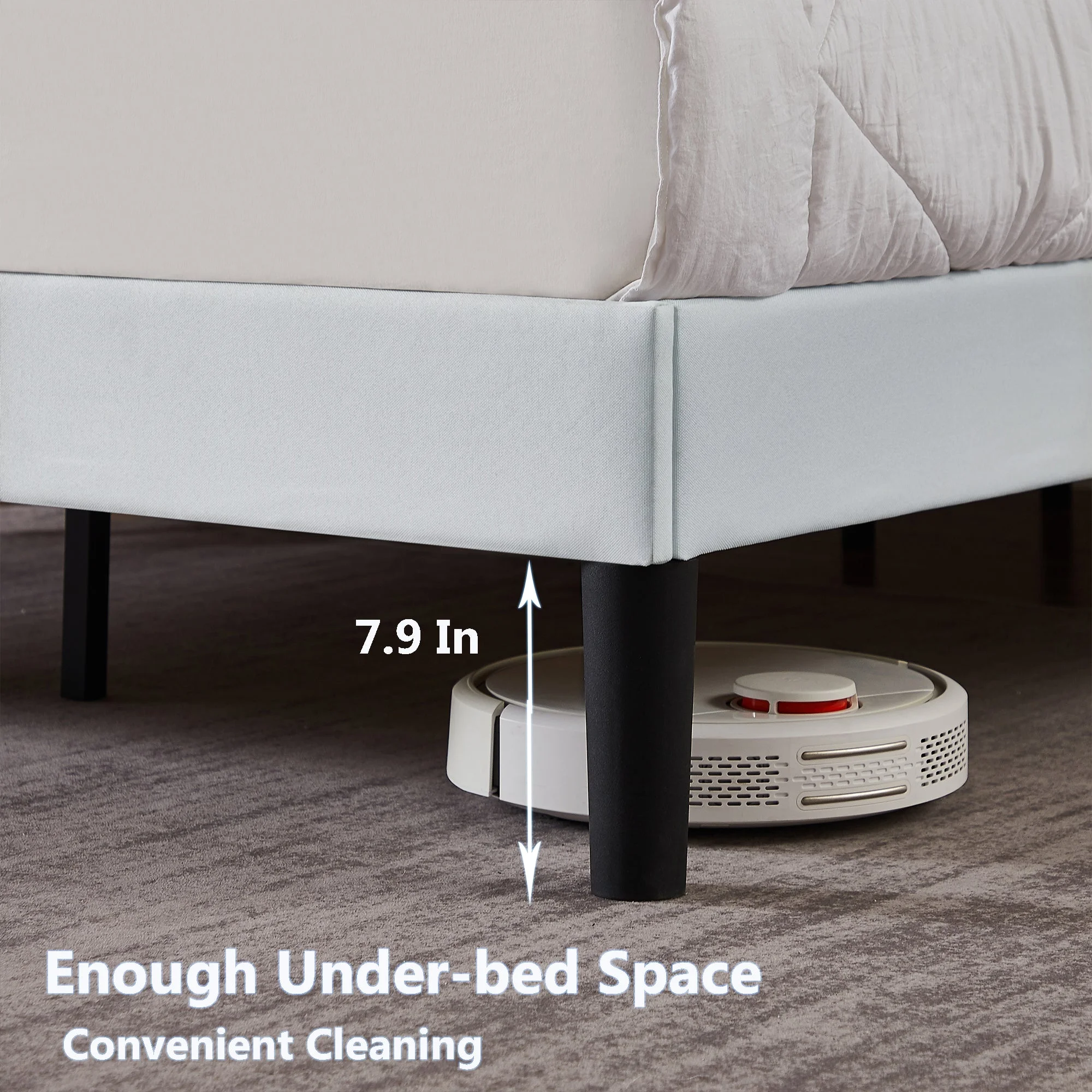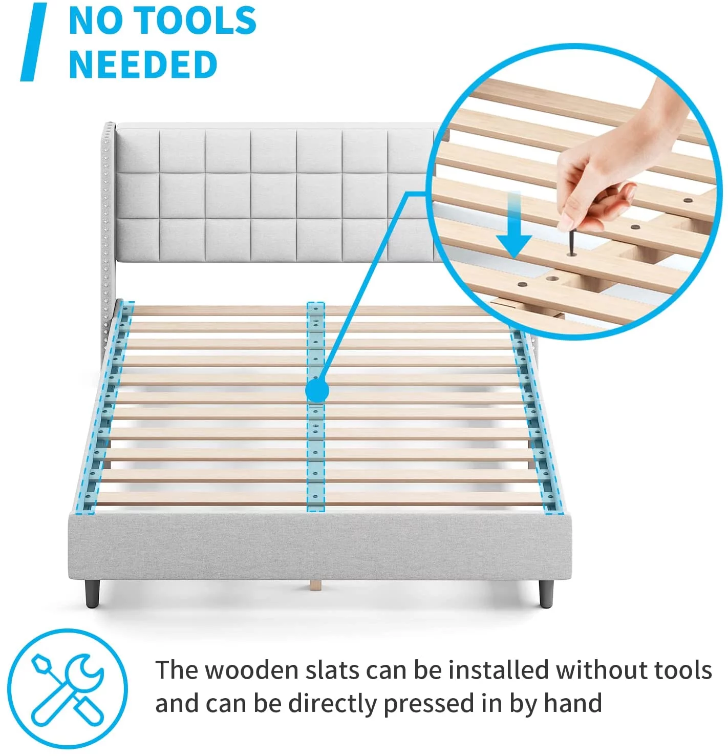 Queer Eye Farnsworth Upholstered Bed with Low Profile Platform Frame, King, Light Gray Linen