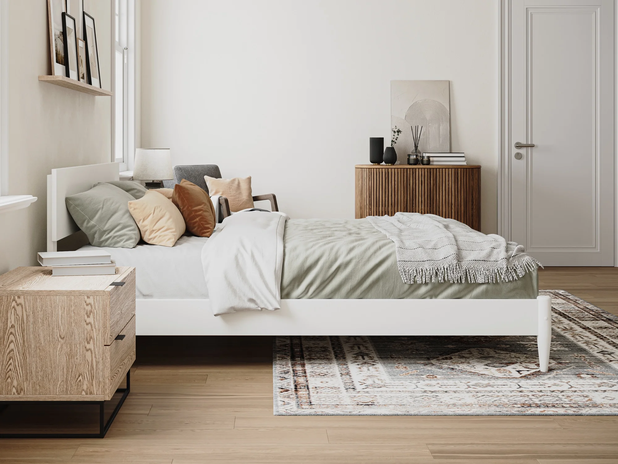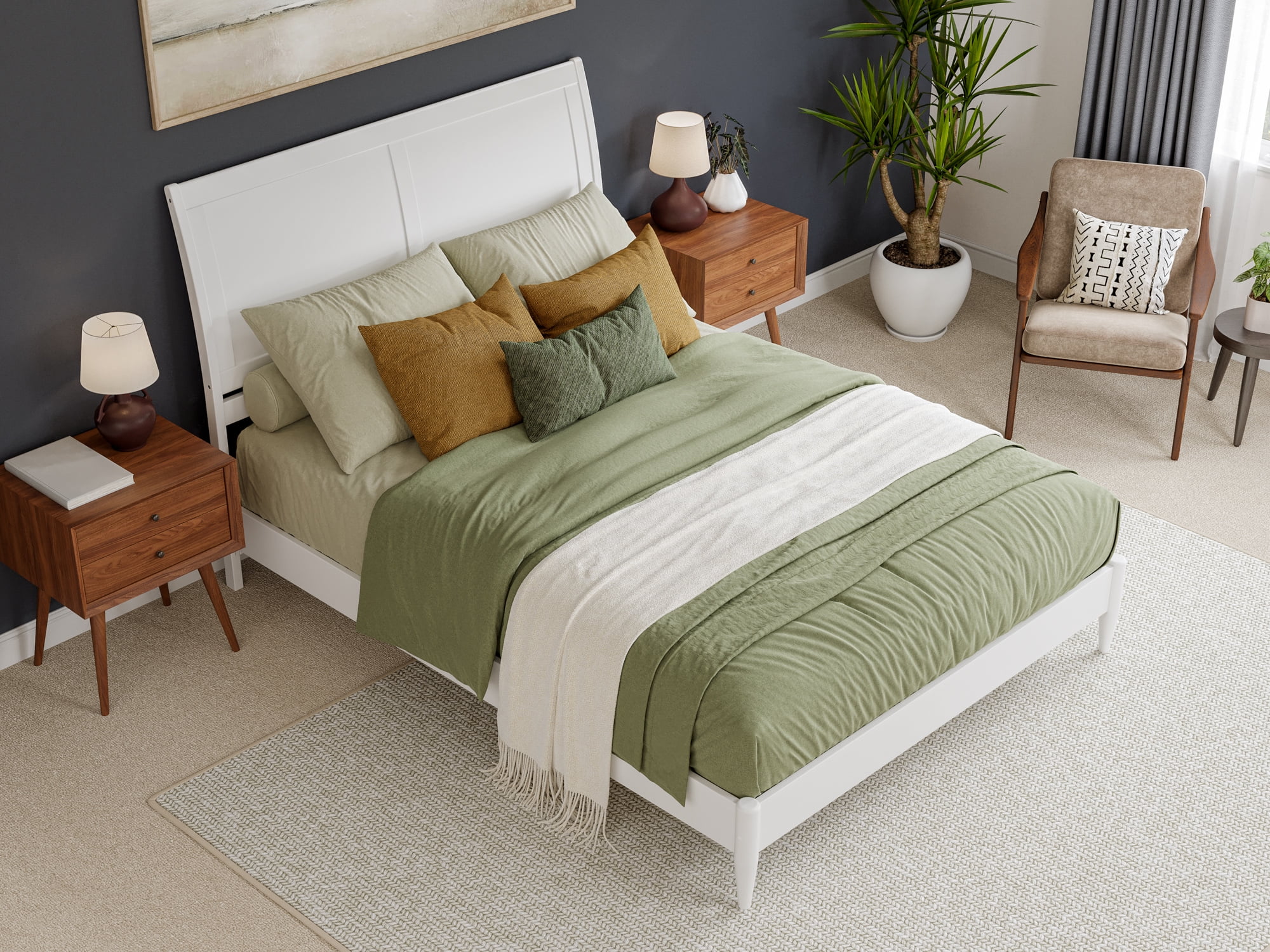 Camden Isle Abbey Platform Bed | Upholstered | Low Profile | Twin, White