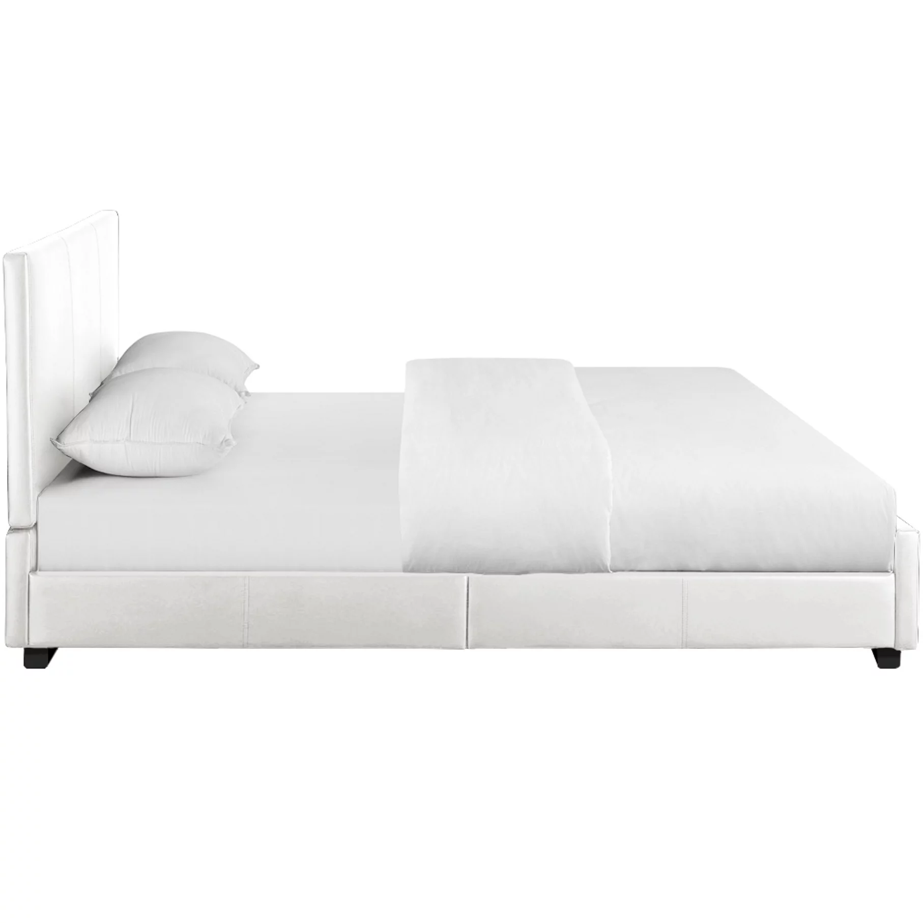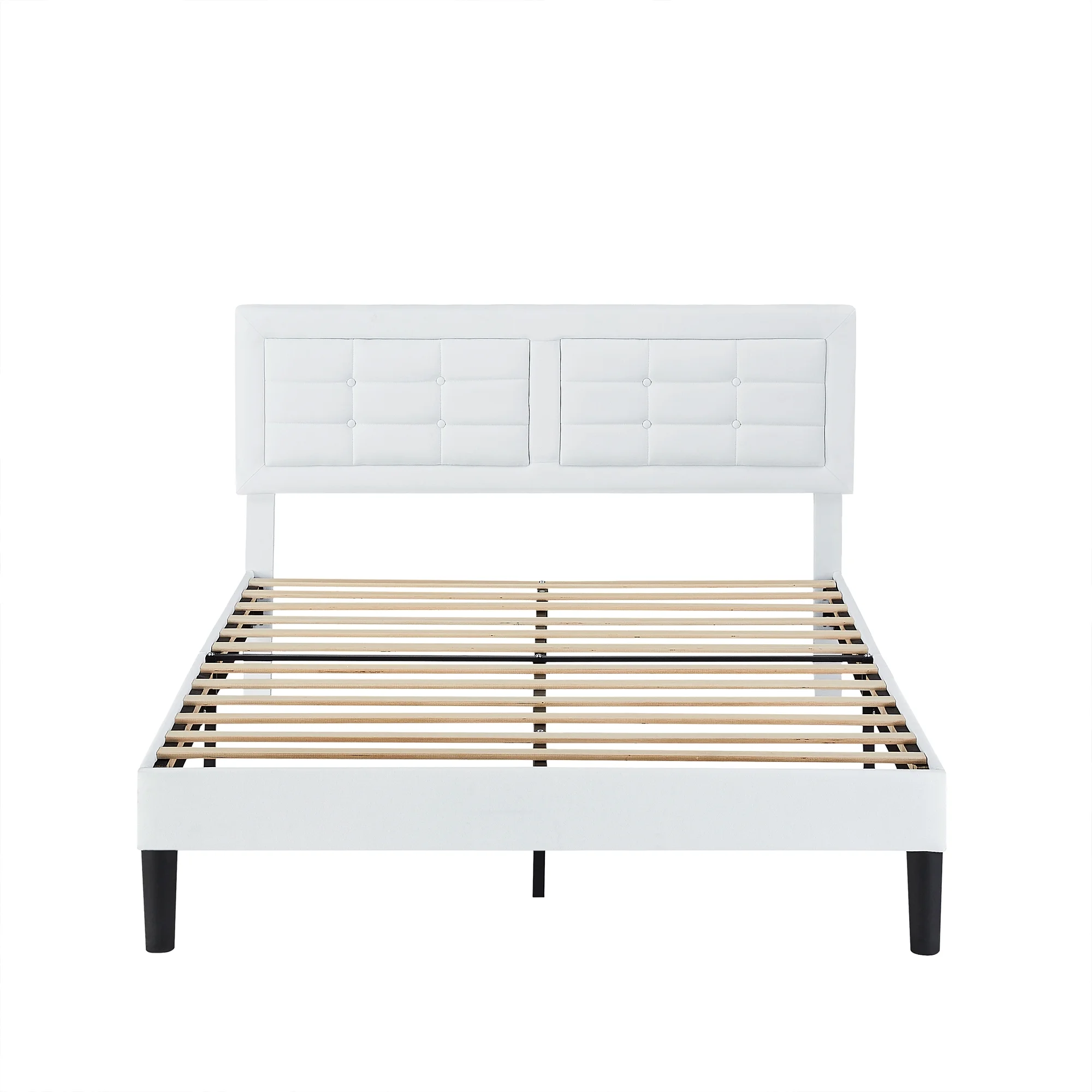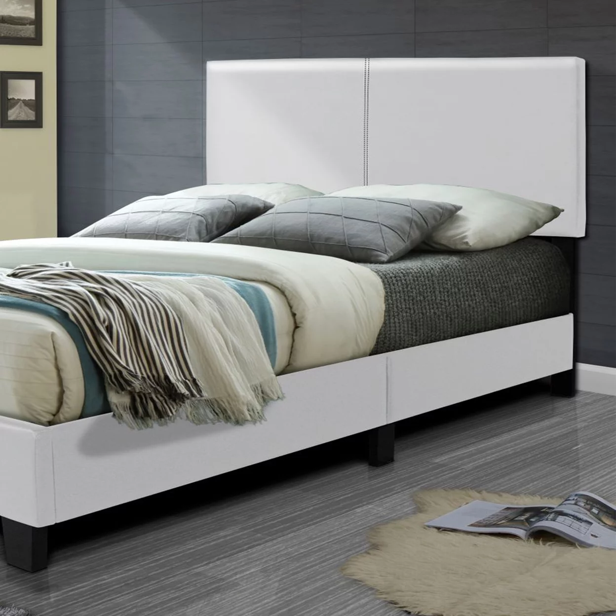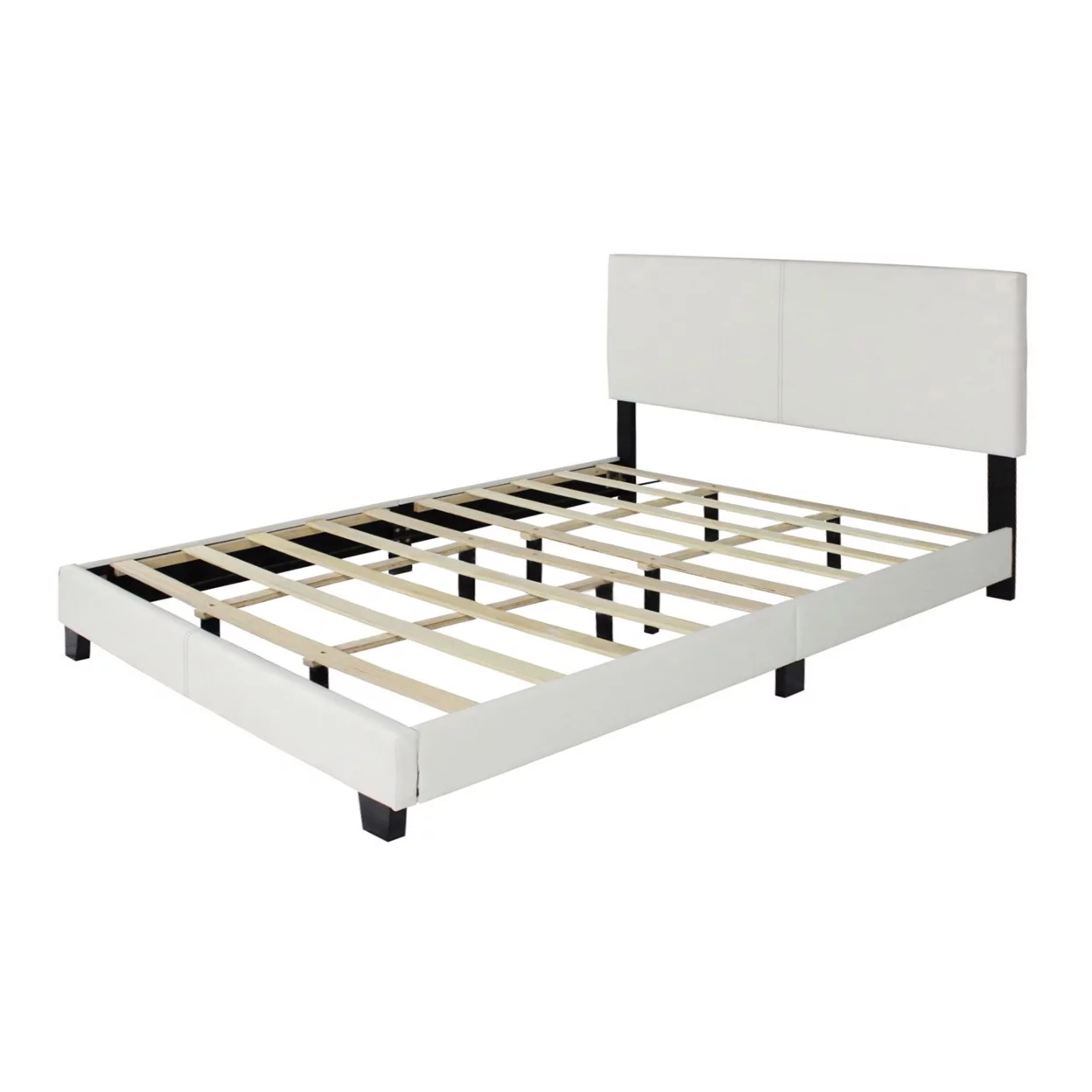 Best Master Furniture Upholstered Platform Bed, White Faux Leather, Queen
