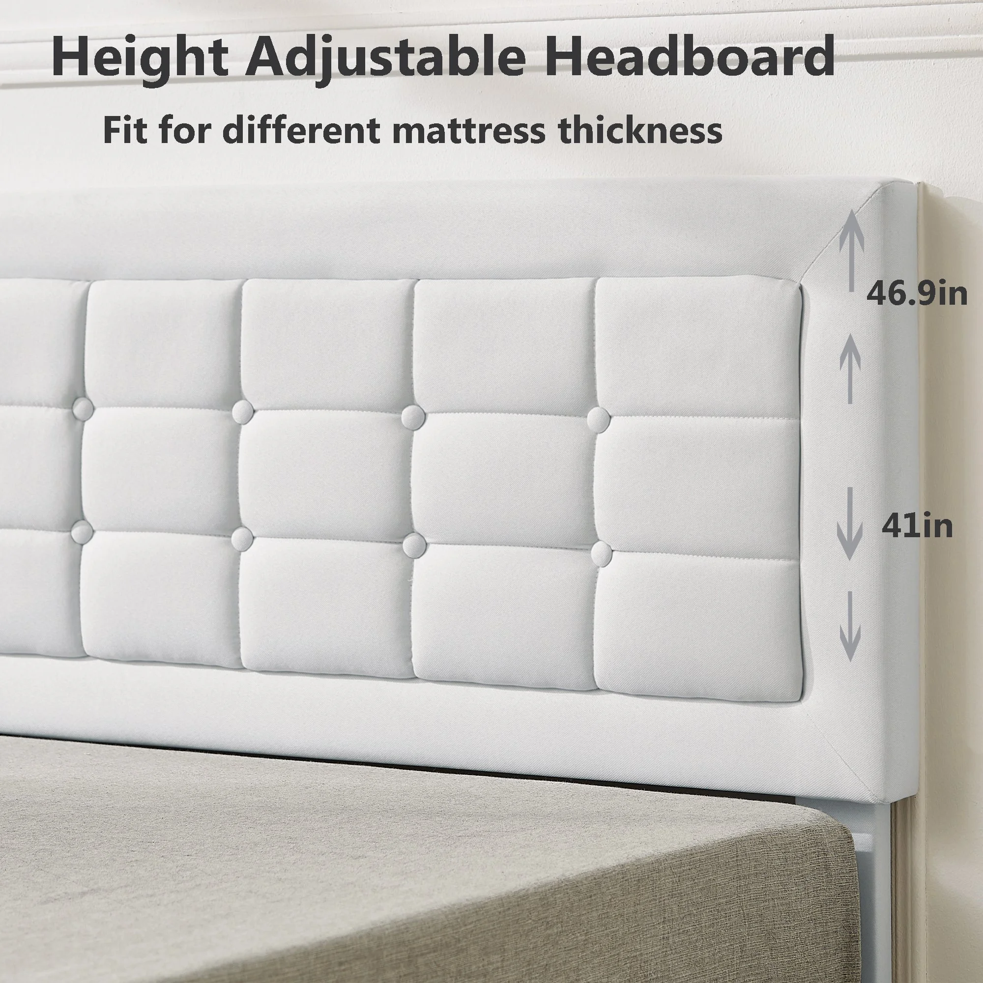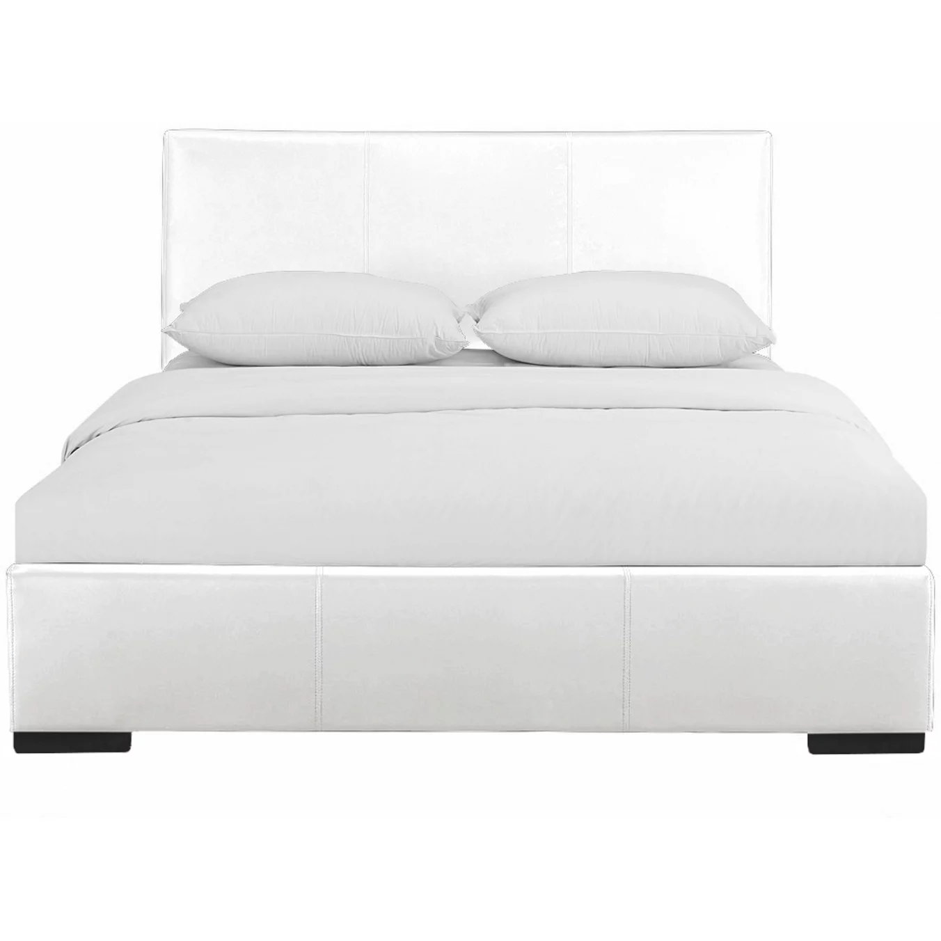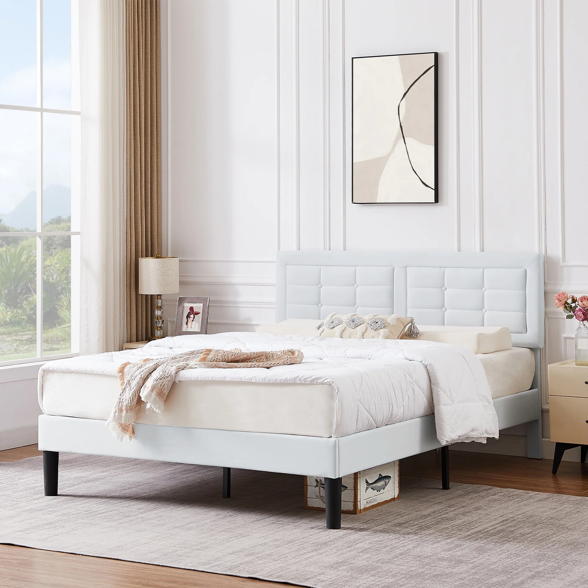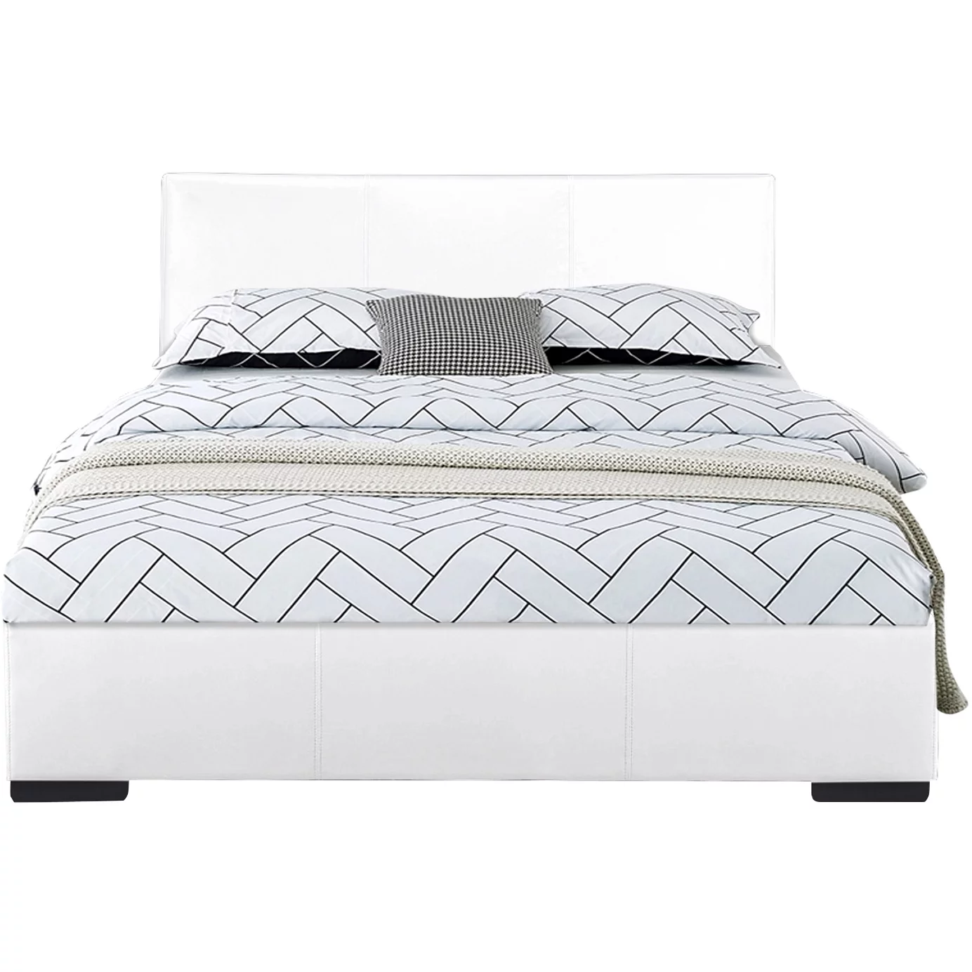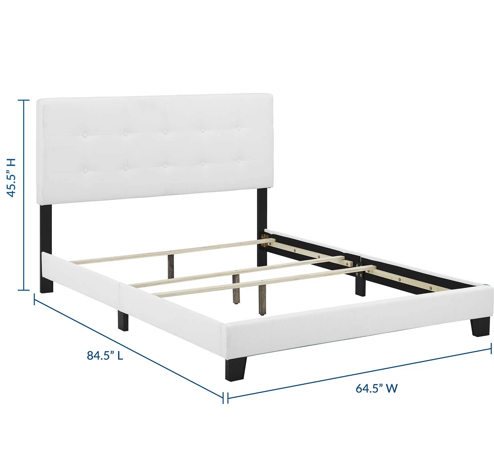 Best Master Furniture Upholstered Platform Bed, White Faux Leather, Queen