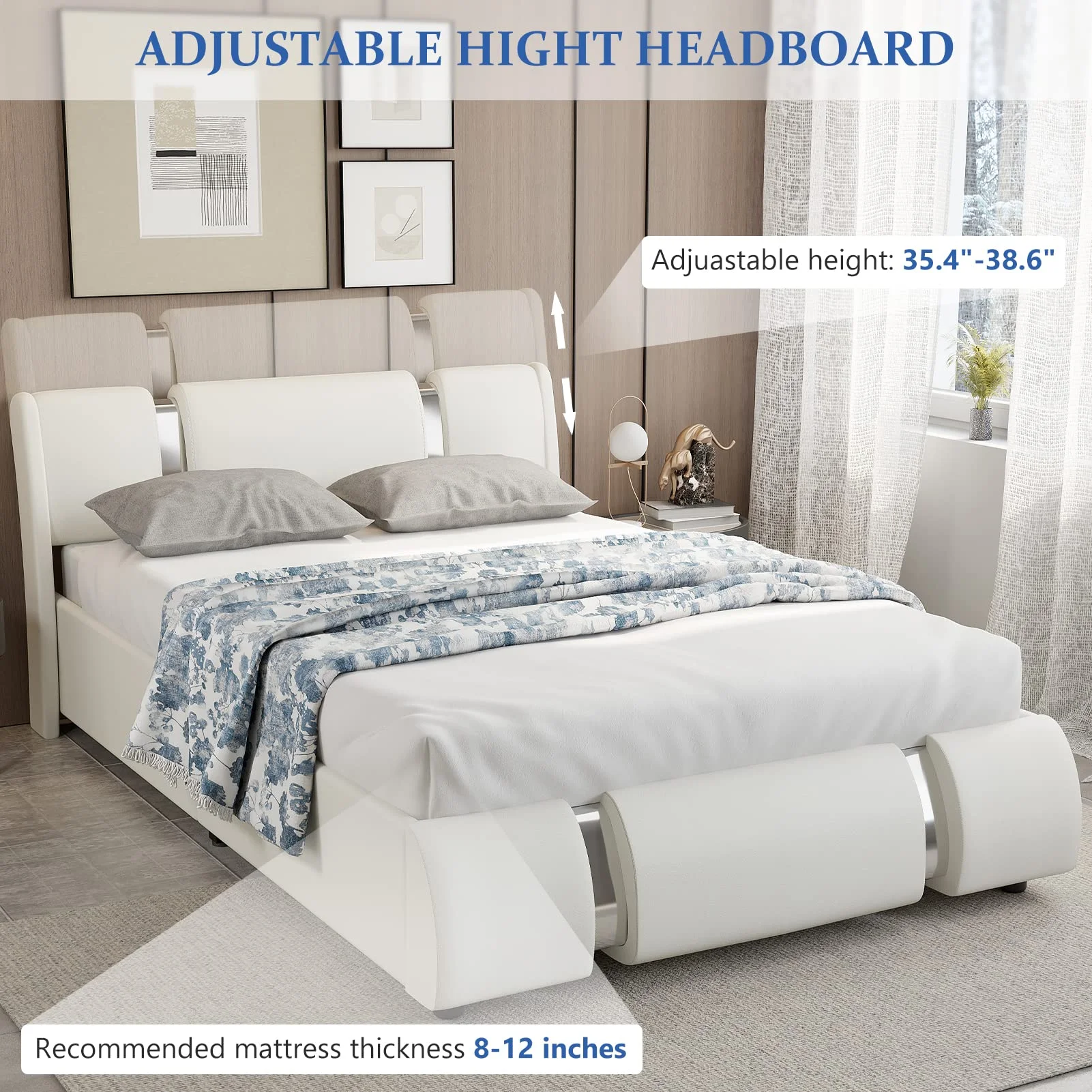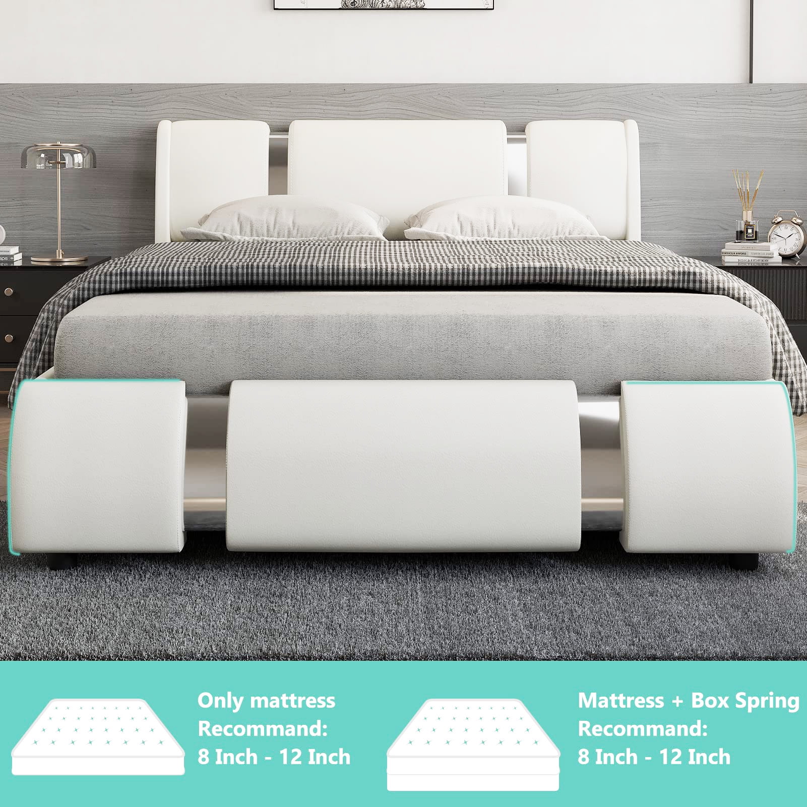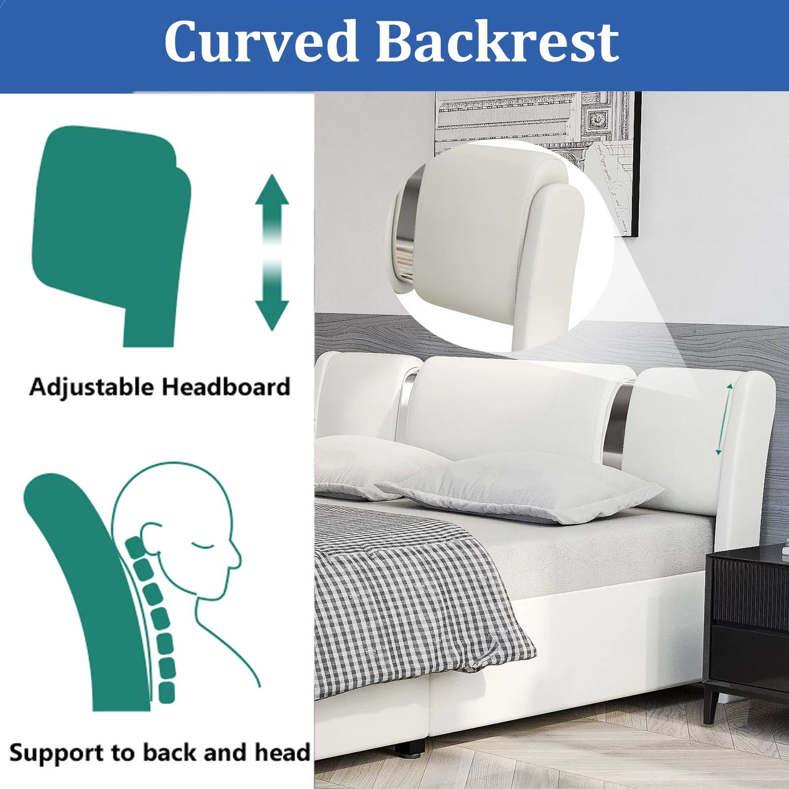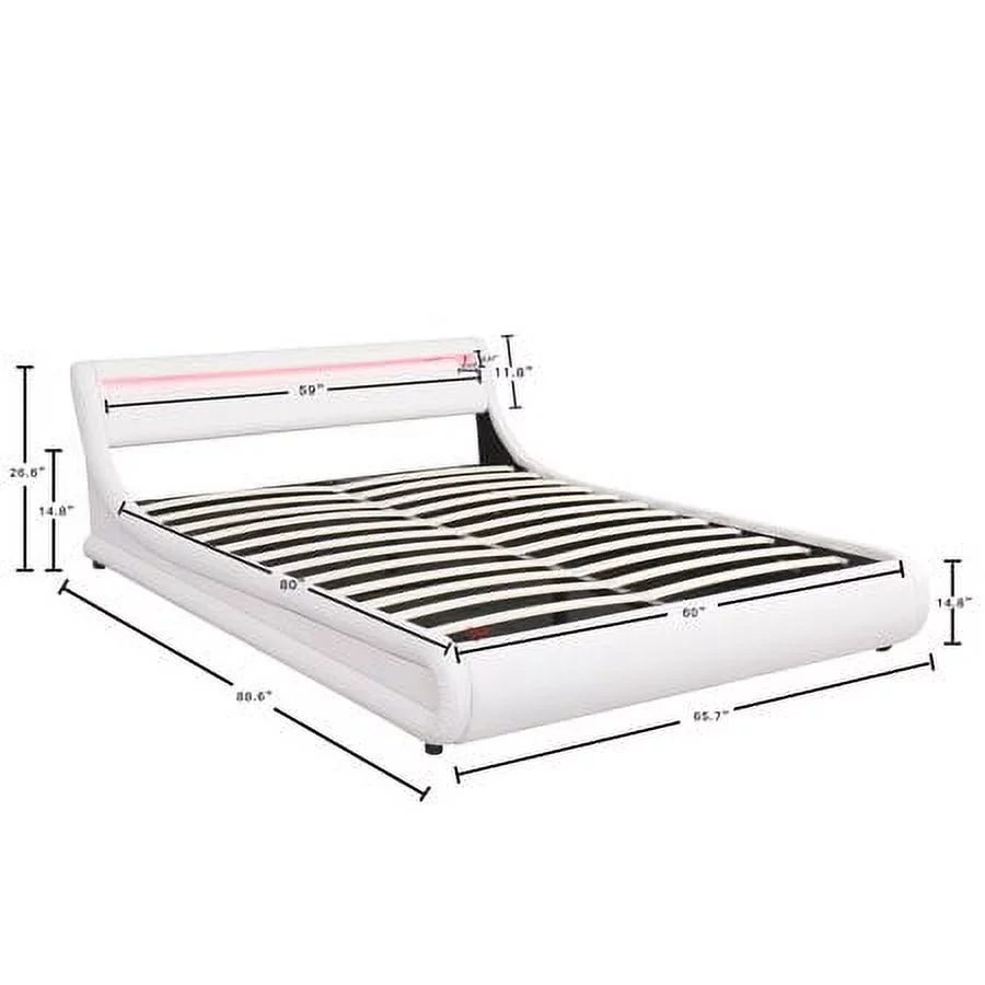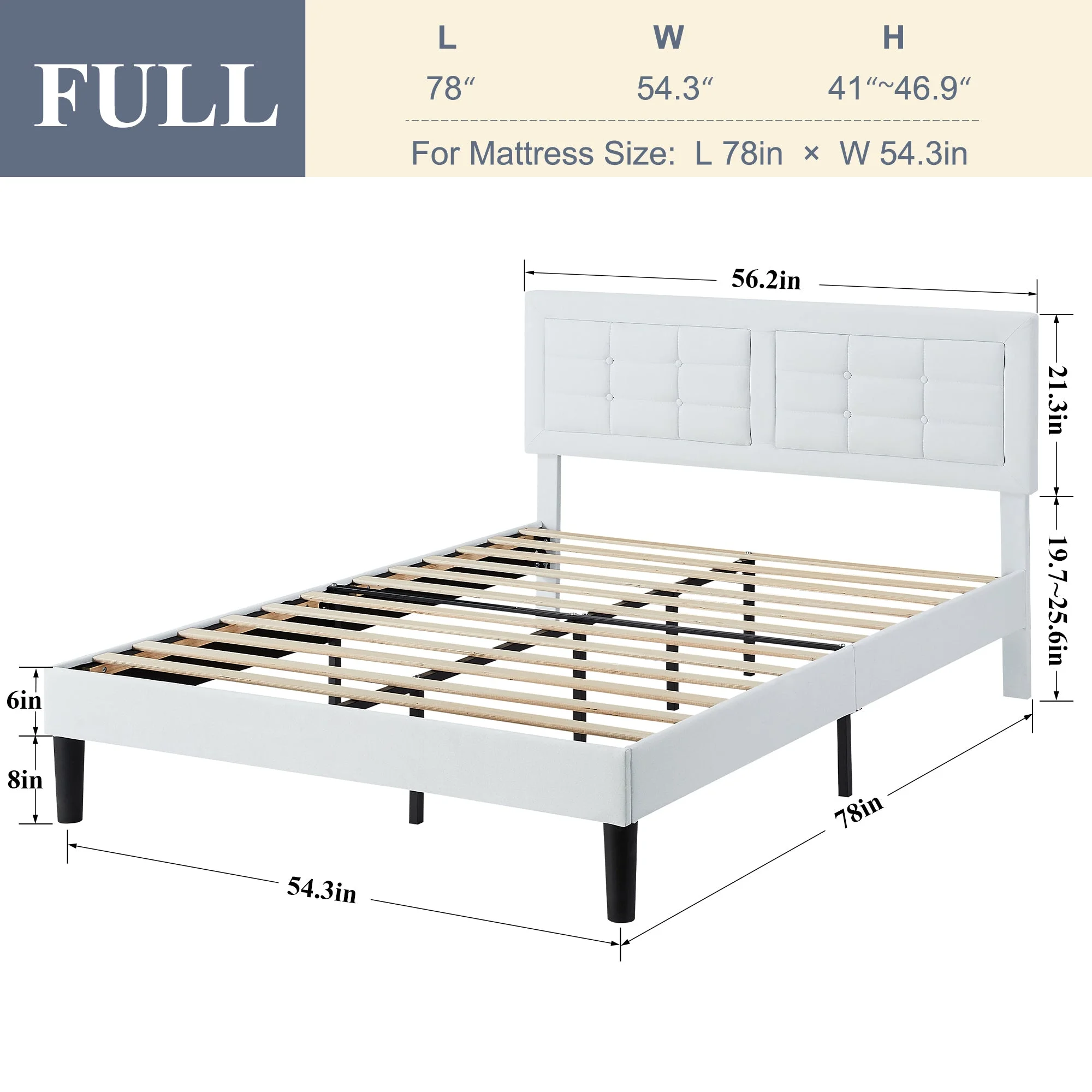 Best Master Furniture Upholstered Platform Bed, White Faux Leather, Queen