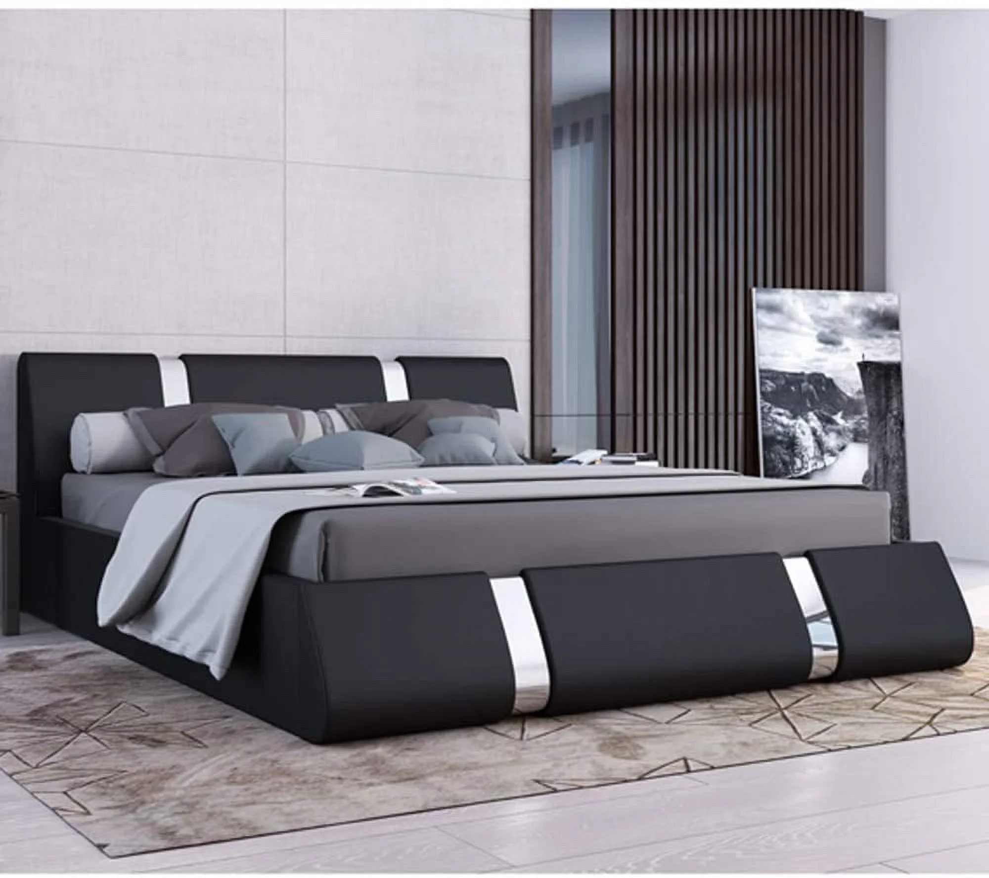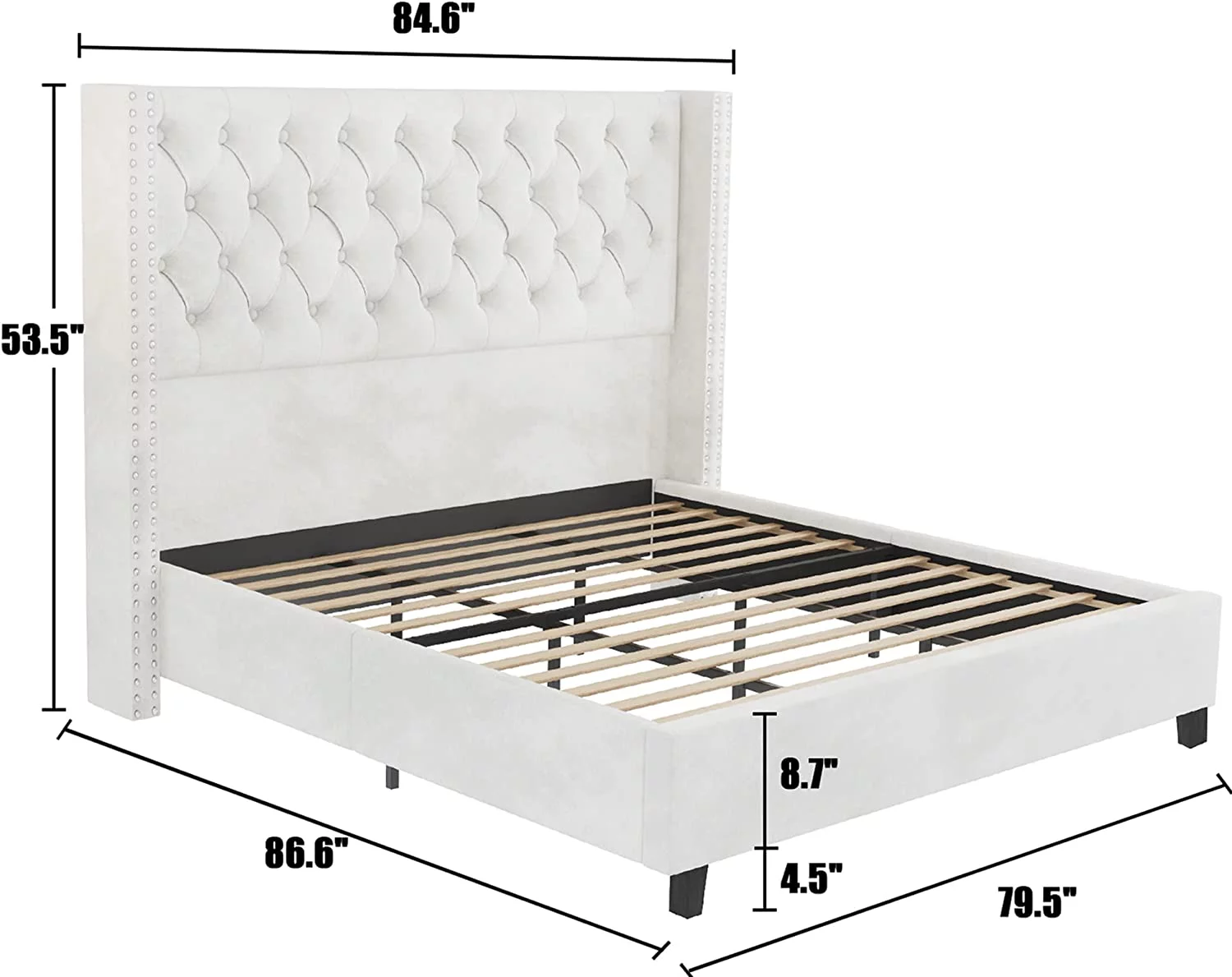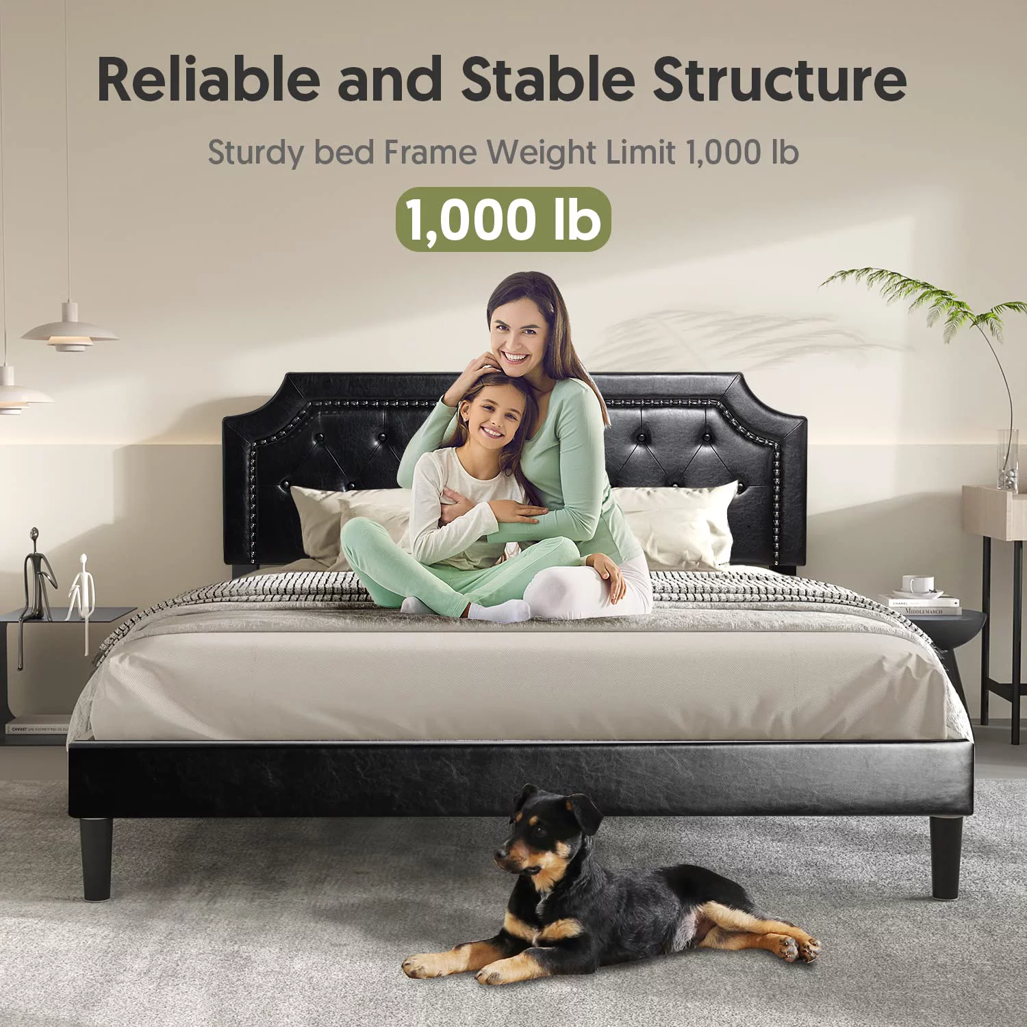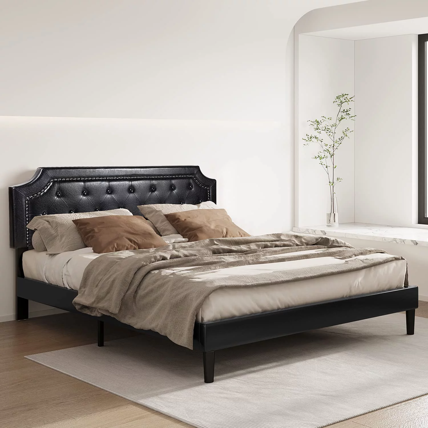 Best Master Furniture Upholstered Platform Bed, White Faux Leather, Queen