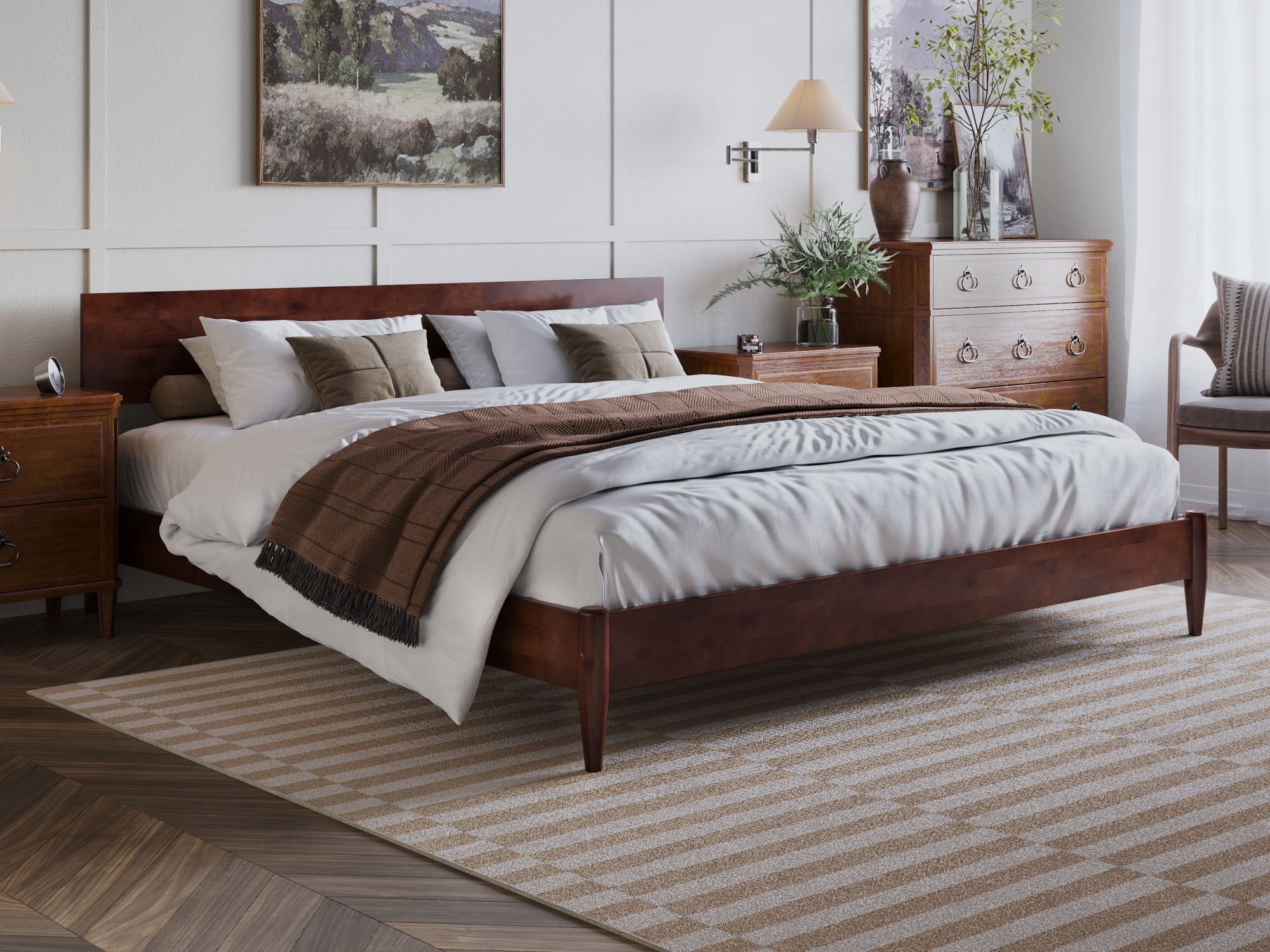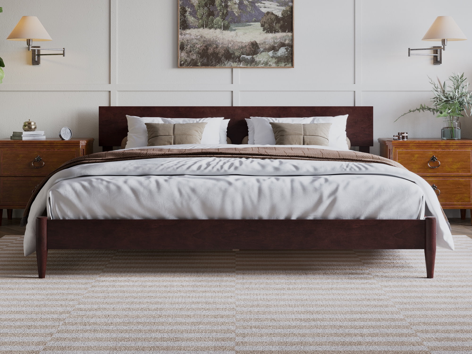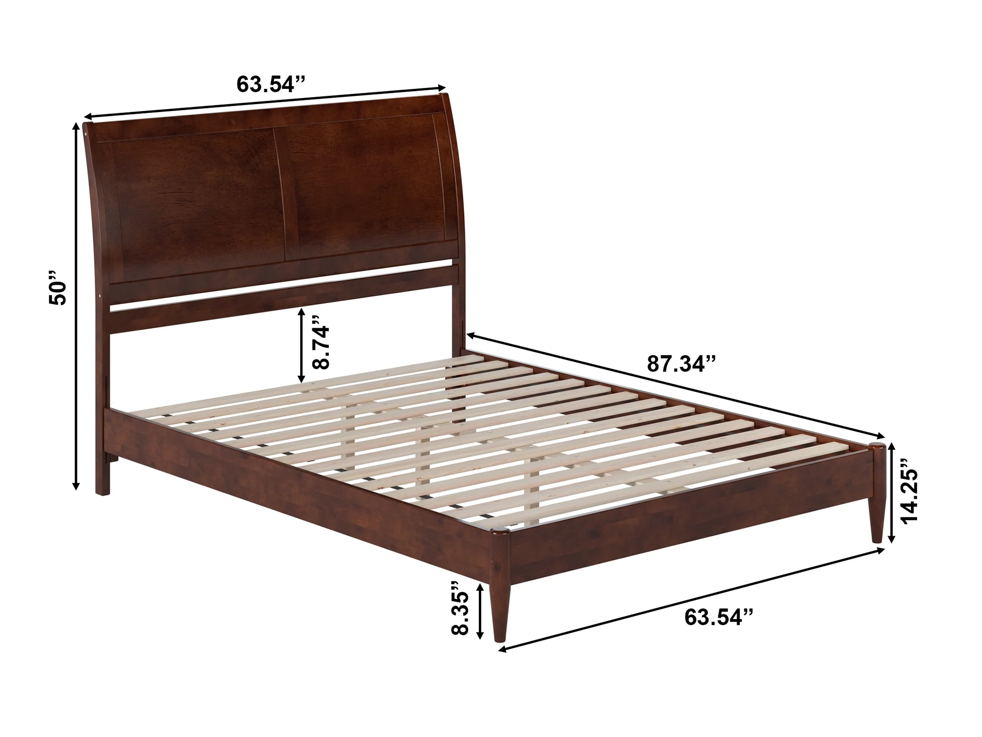 AFI Valencia Queen Solid Wood Low Profile Sleigh Platform Bed, Walnut
