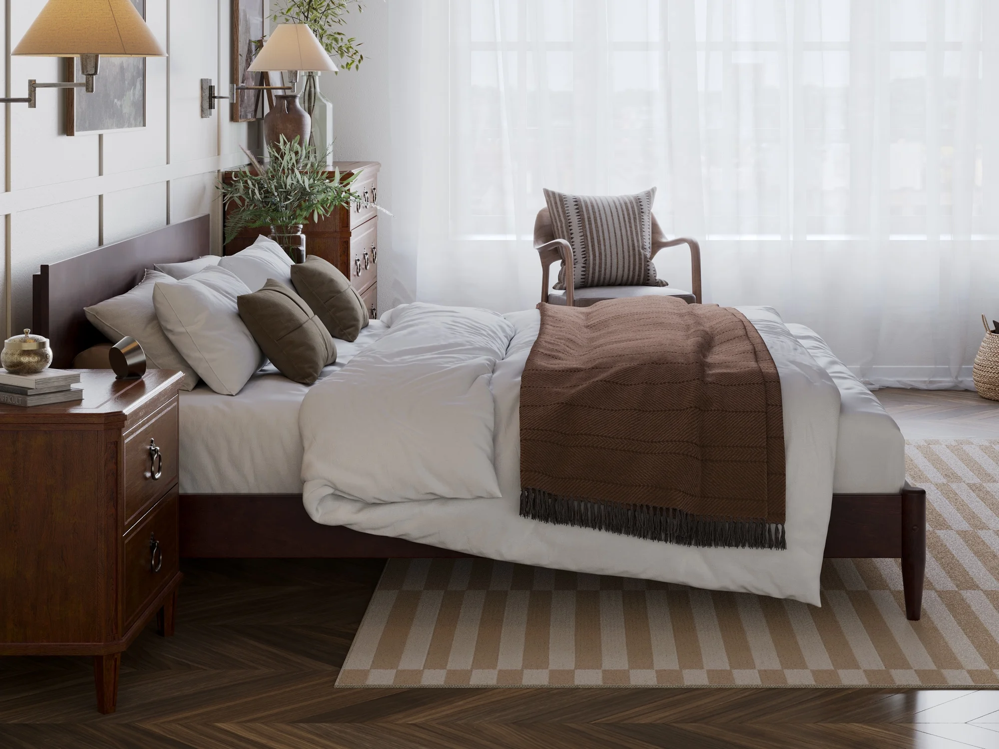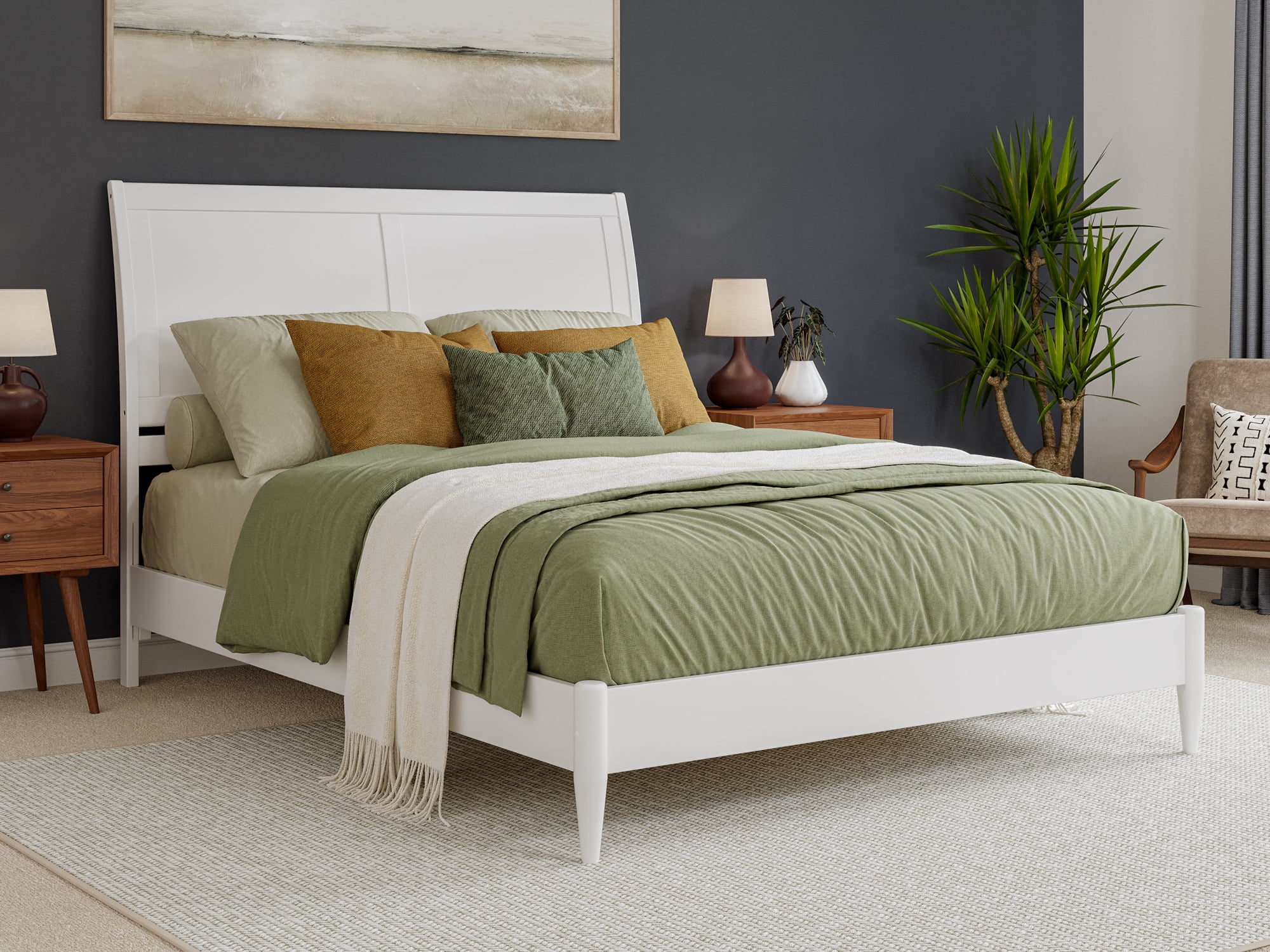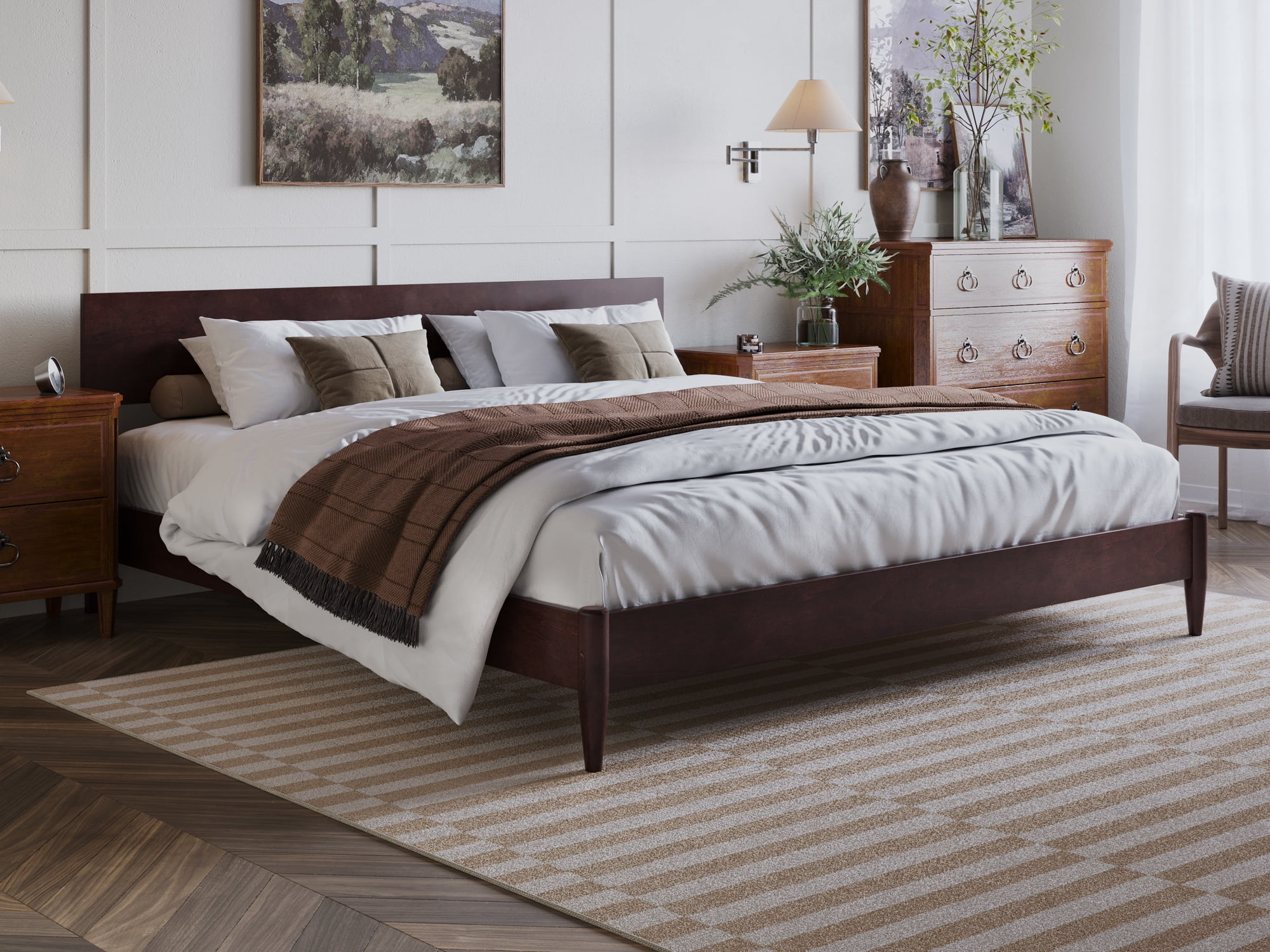 AFI Valencia Queen Solid Wood Low Profile Sleigh Platform Bed, Walnut