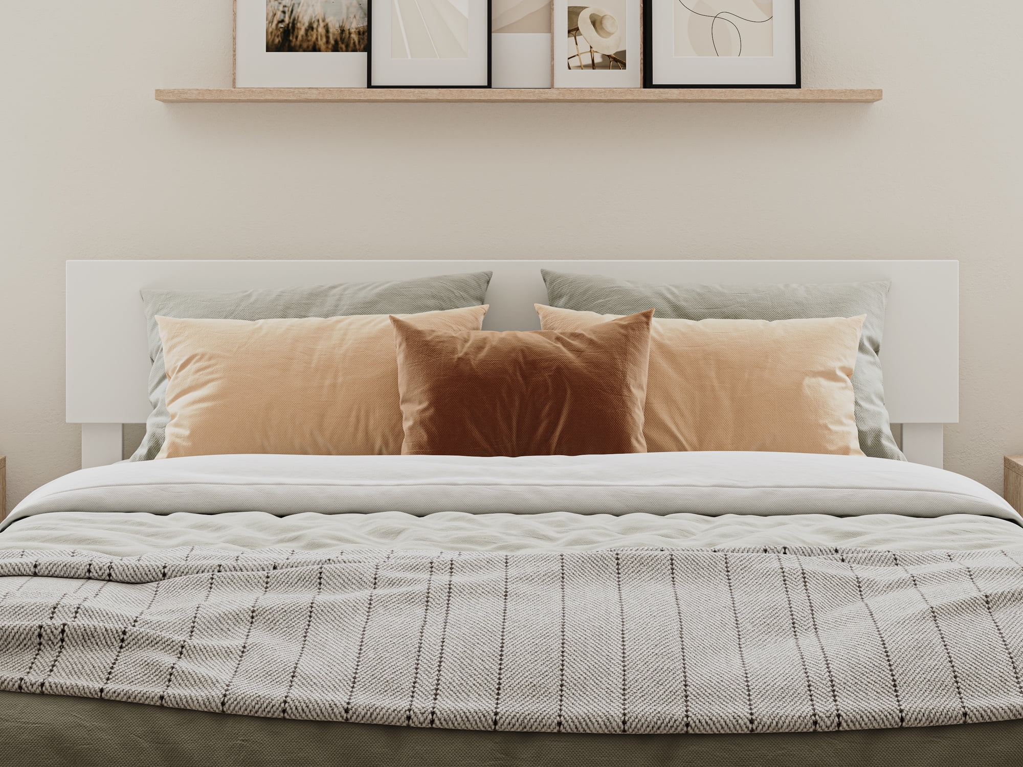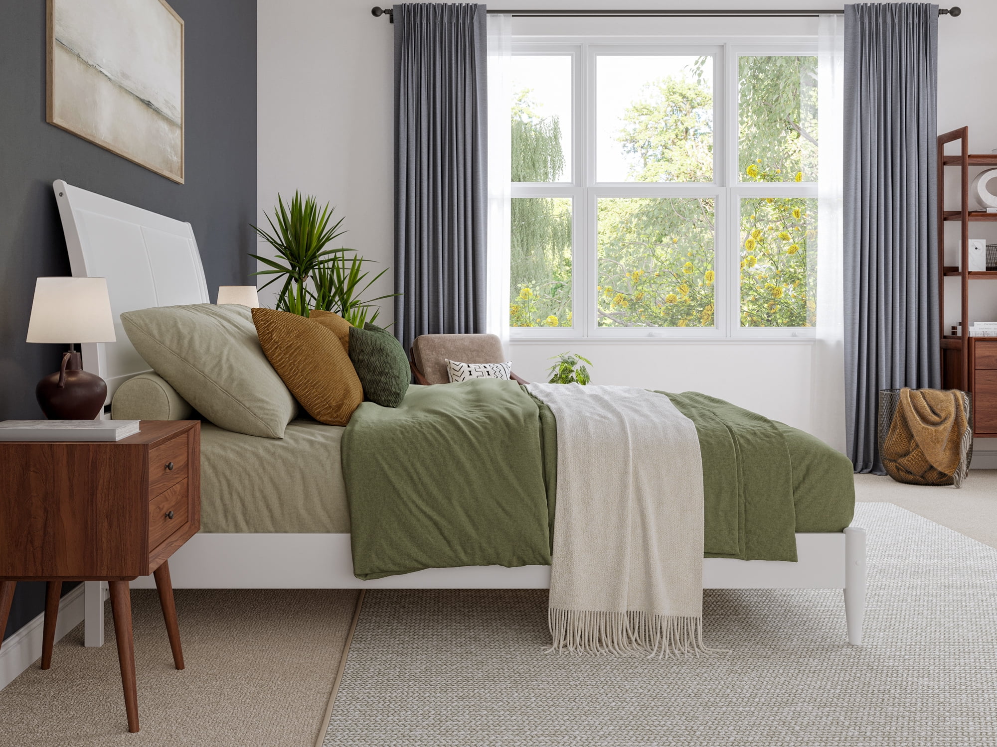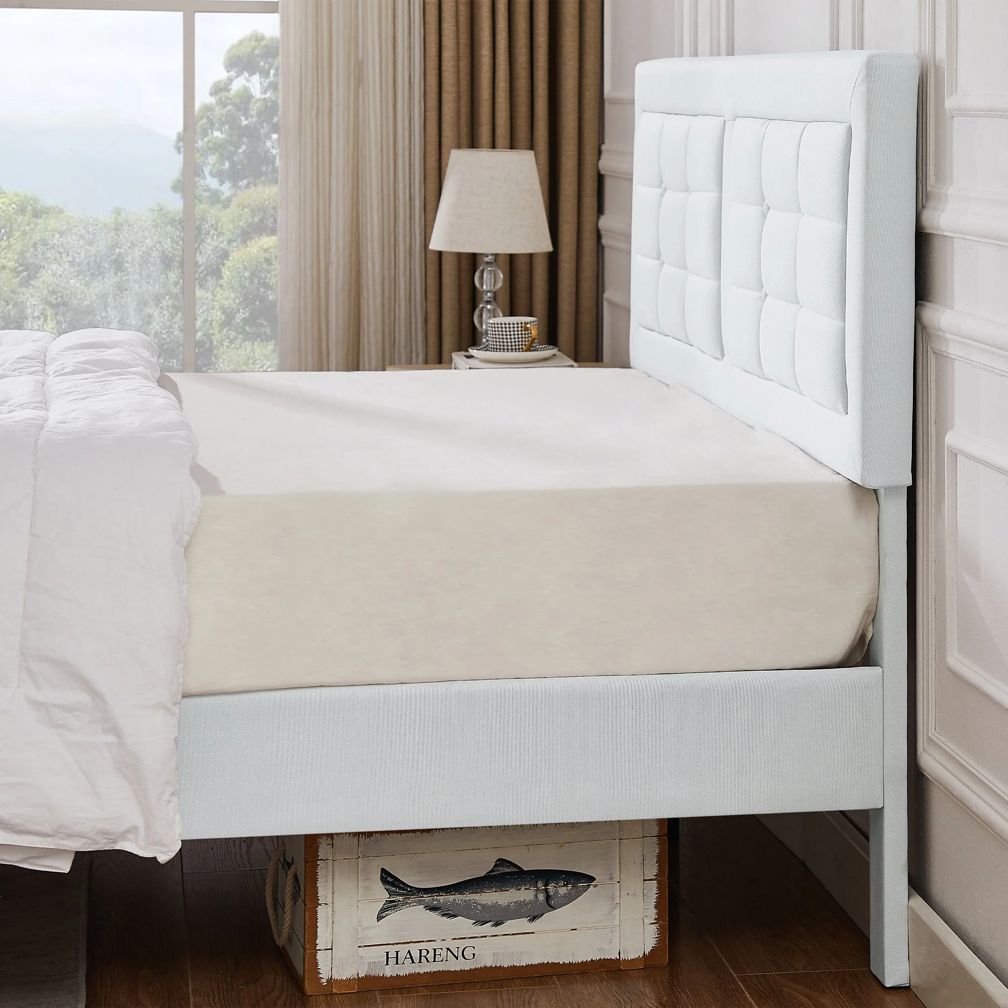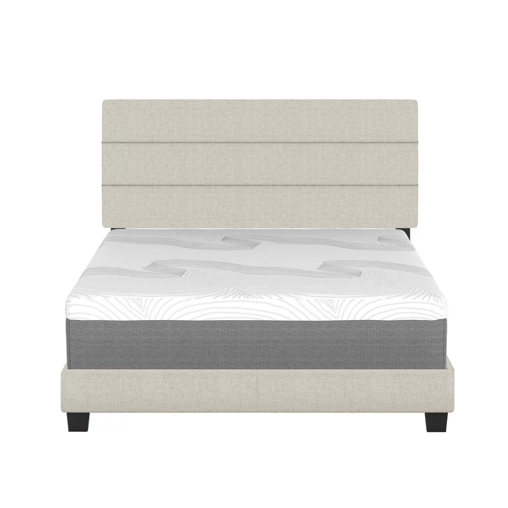 Boyd Sleep Sicily Upholstered Linen Tri Panel Platform Bed Frame with Headboard, Queen, White