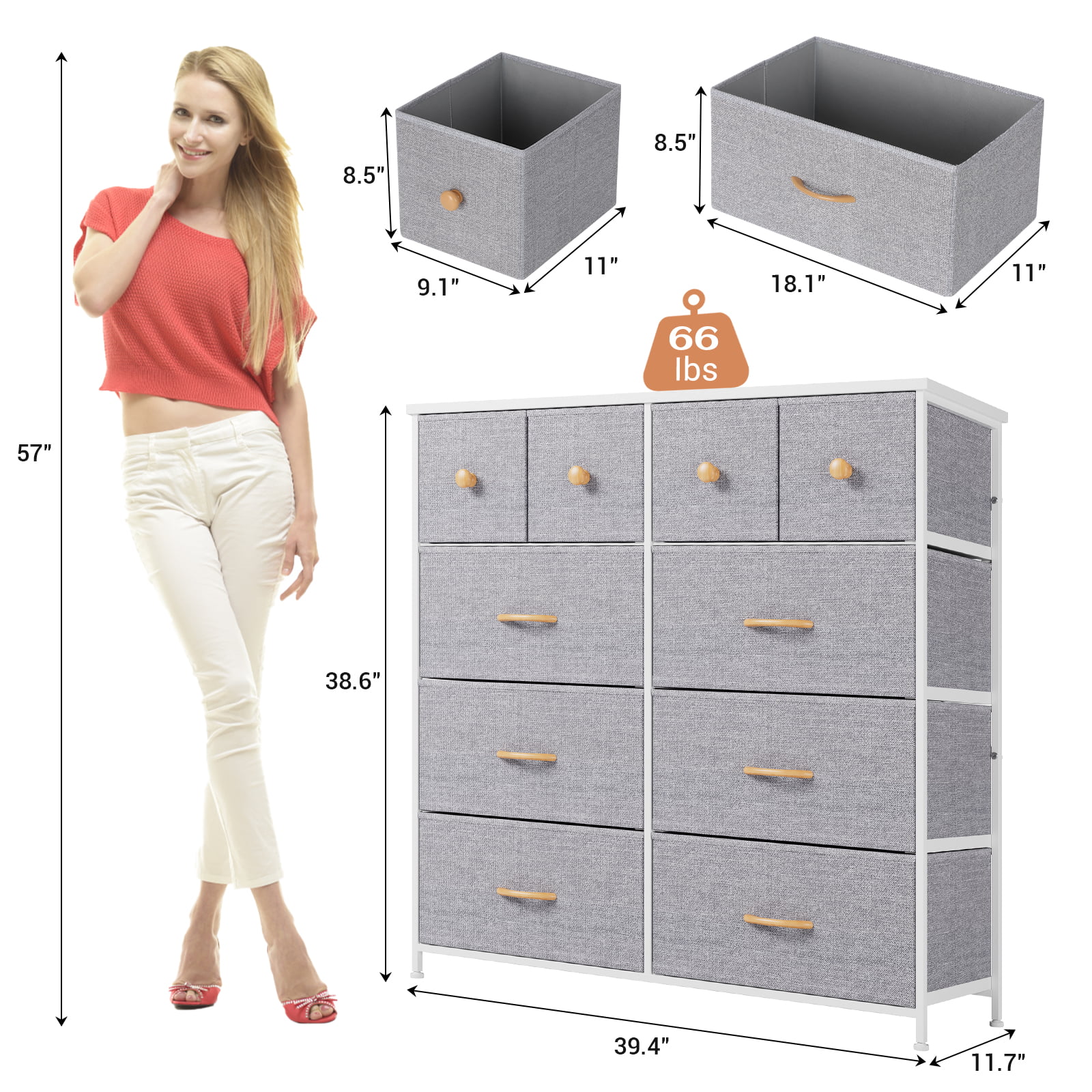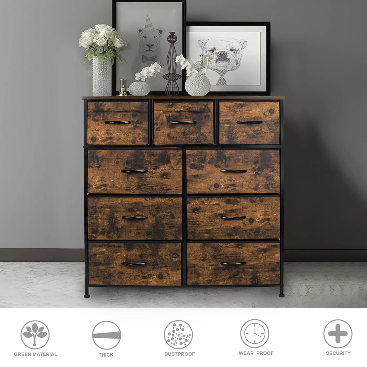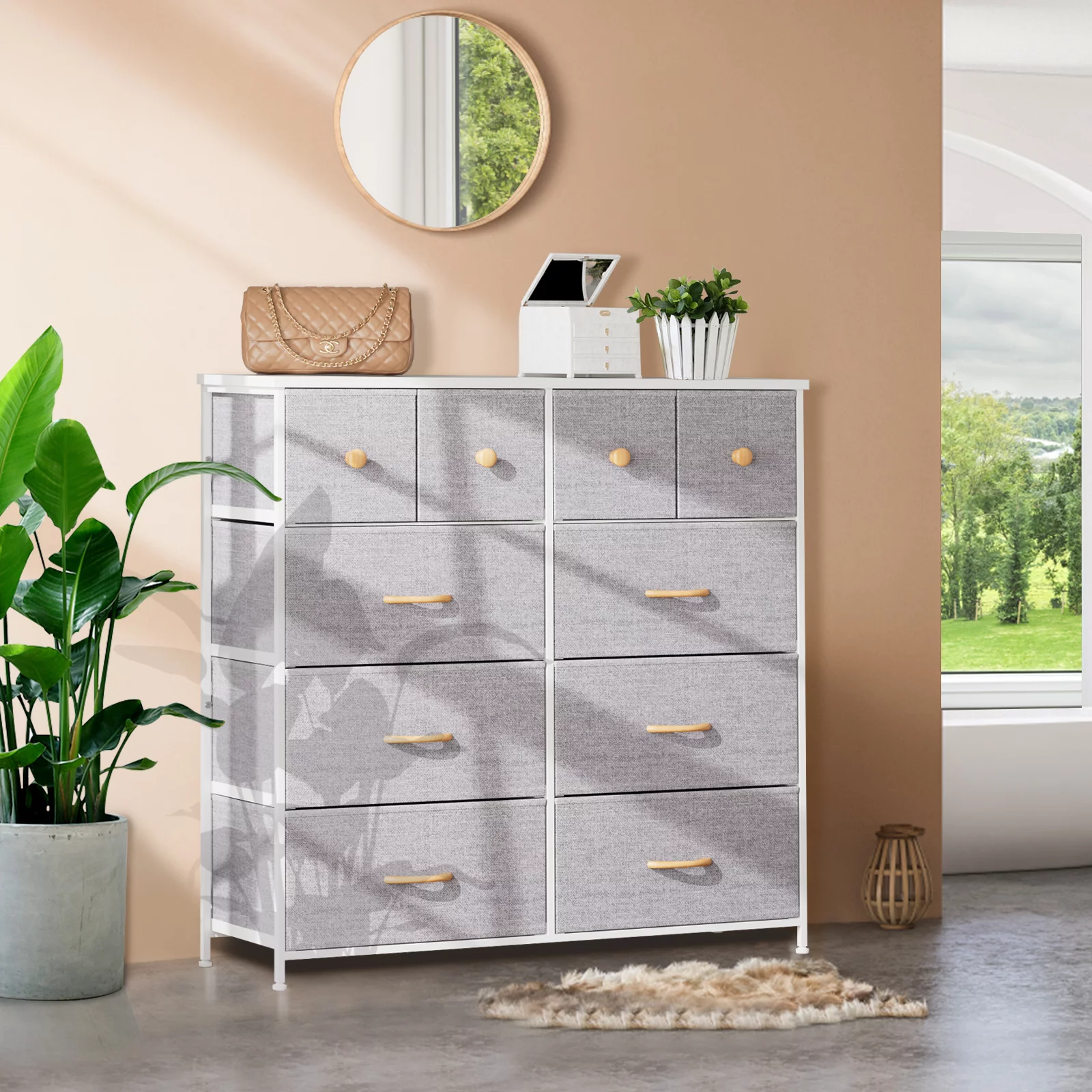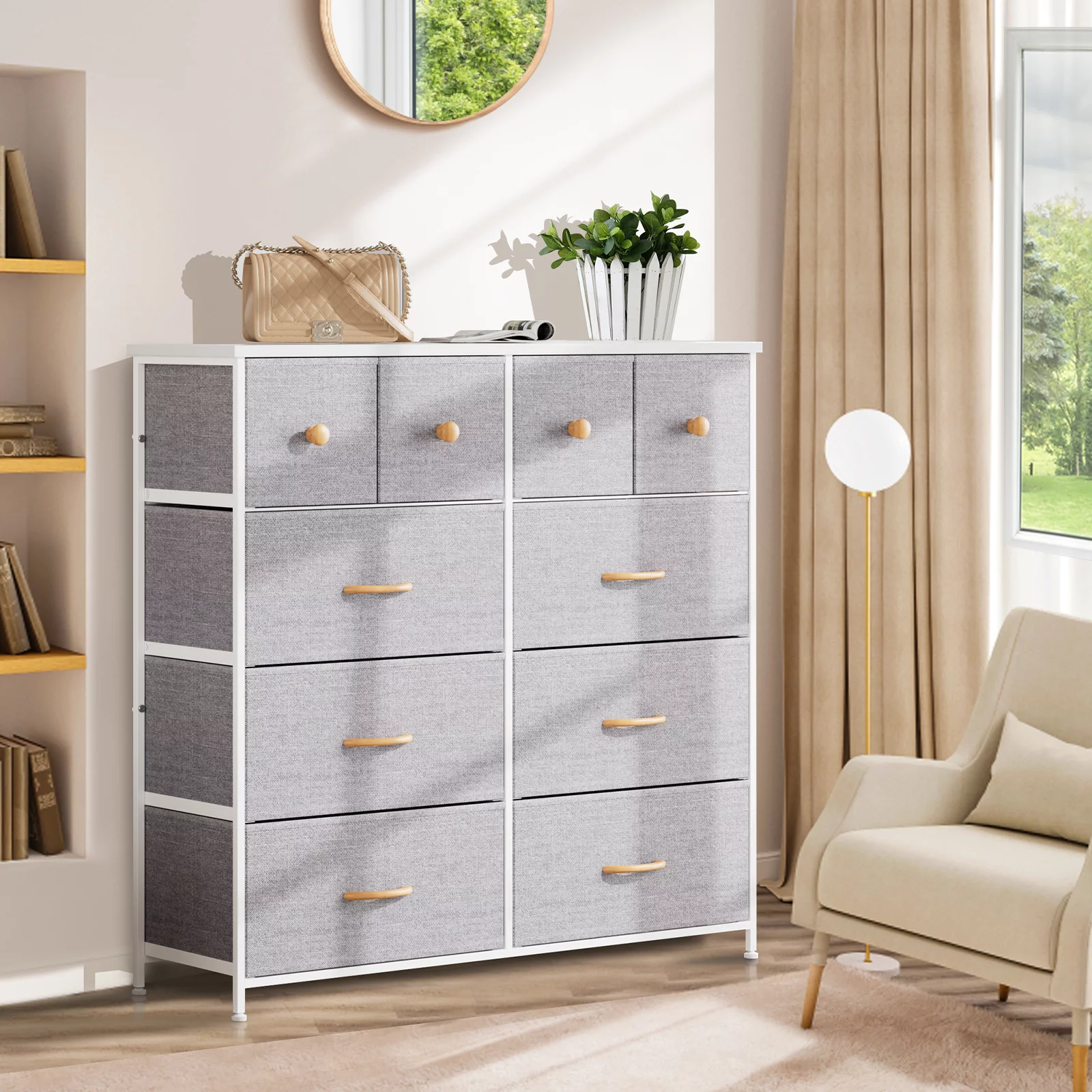 Nicehill 10 Drawer White Dresser for Bedroom ,Tall Chest with Wooden Top & Aluminum Alloy Frame, Storage Dresser