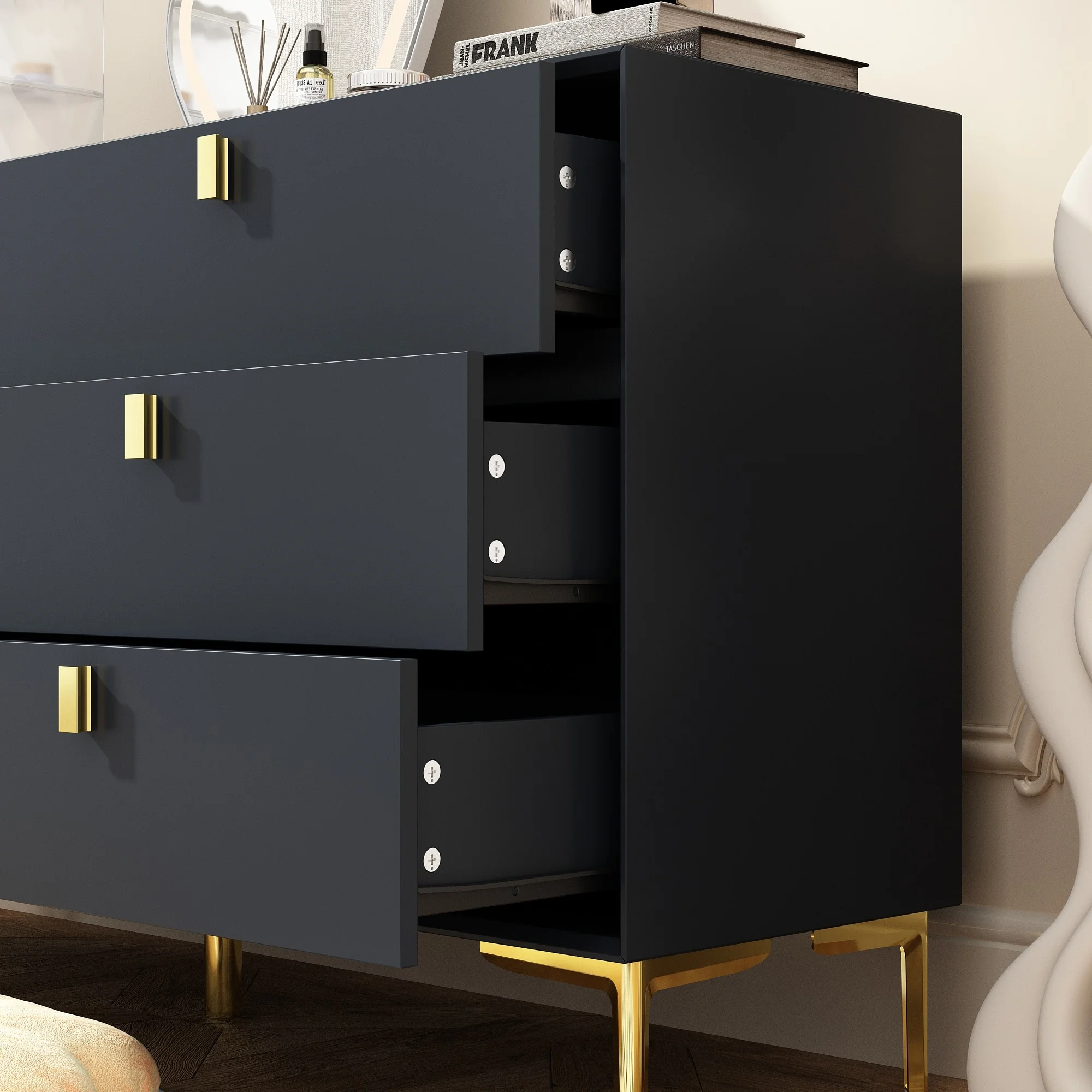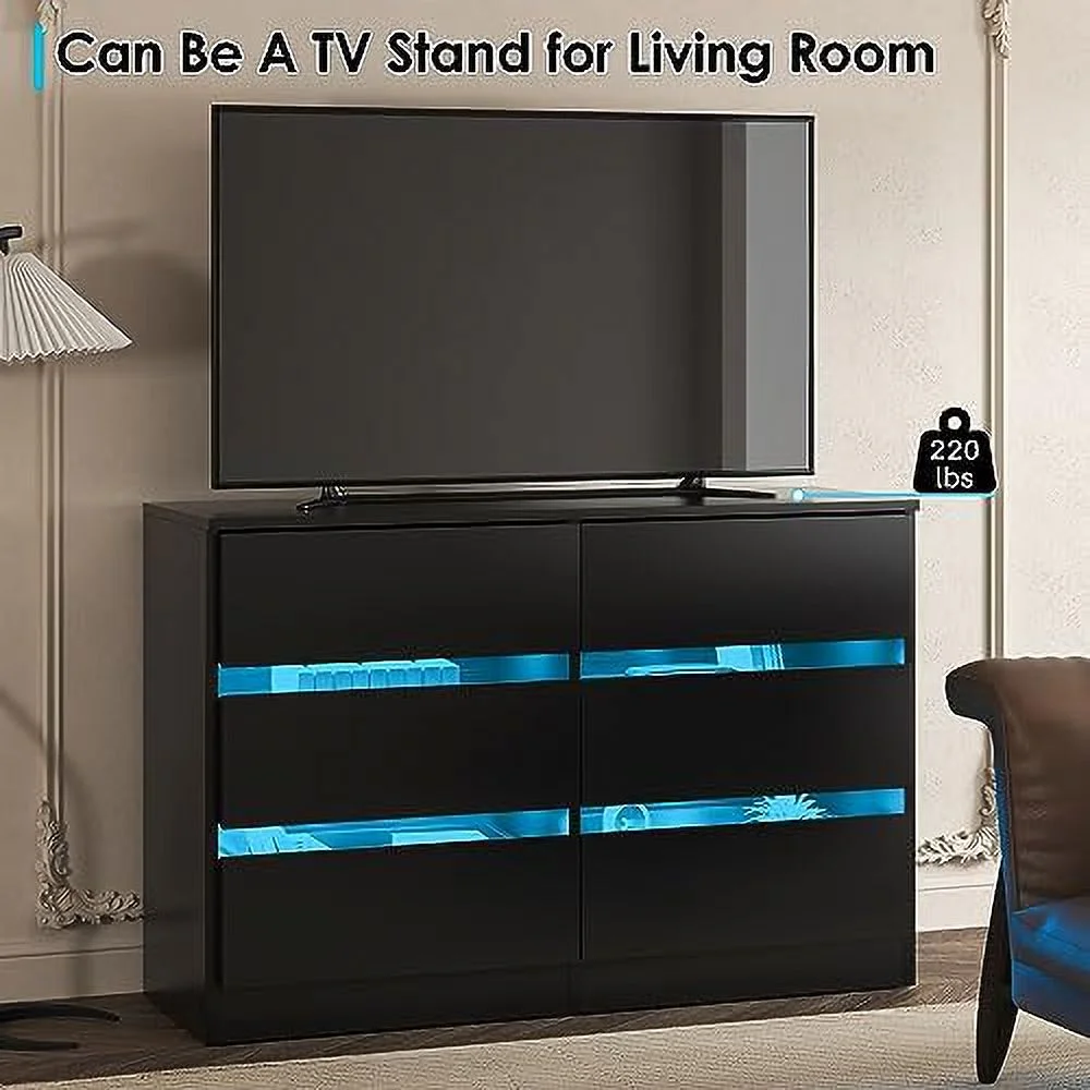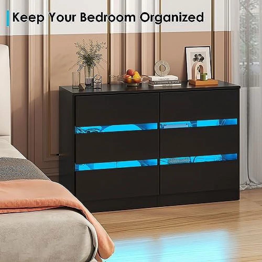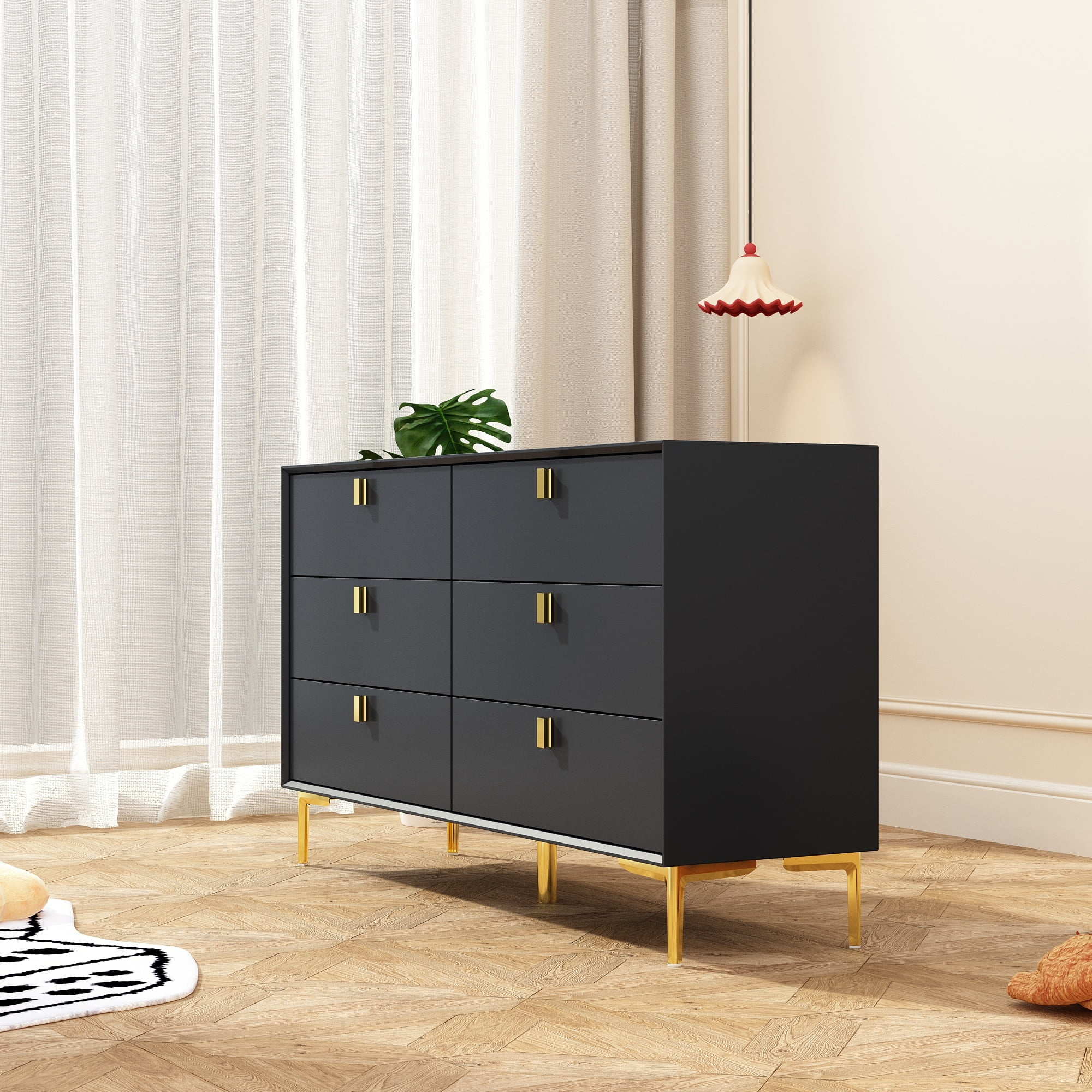 Dresser 6 Drawer Wood Dresser for Bedroom with Storage Modern Gold Navy Blue