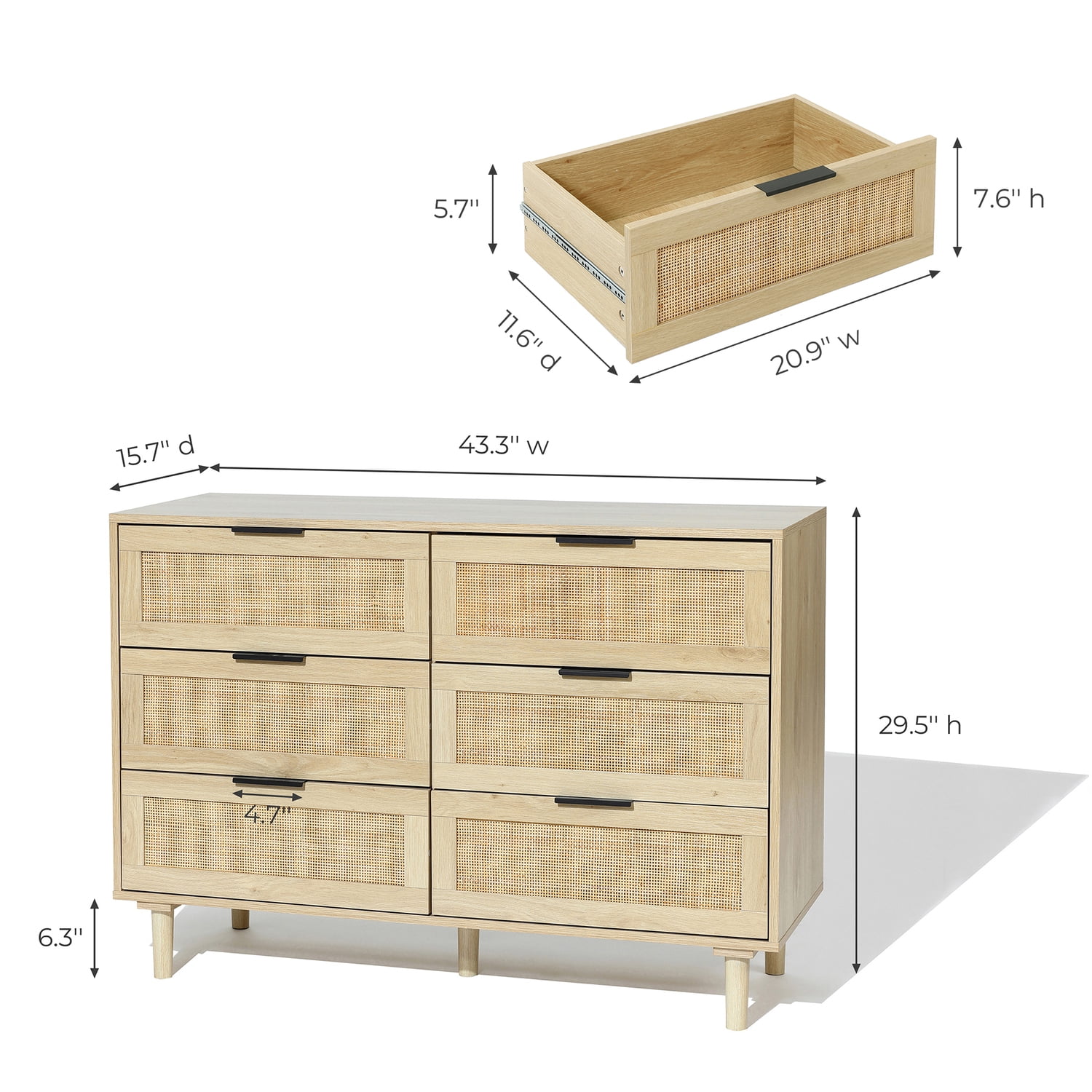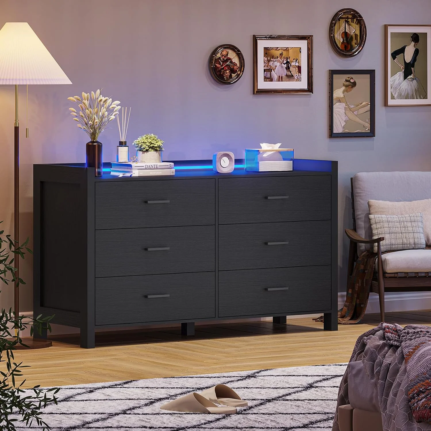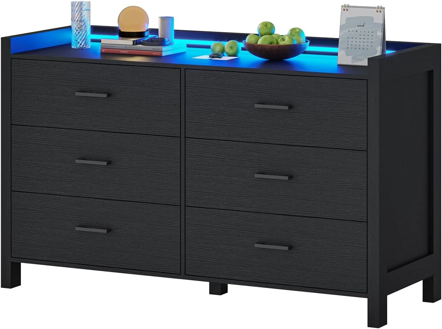 Dresser 6 Drawer Wood Dresser for Bedroom with Storage Modern Gold Navy Blue