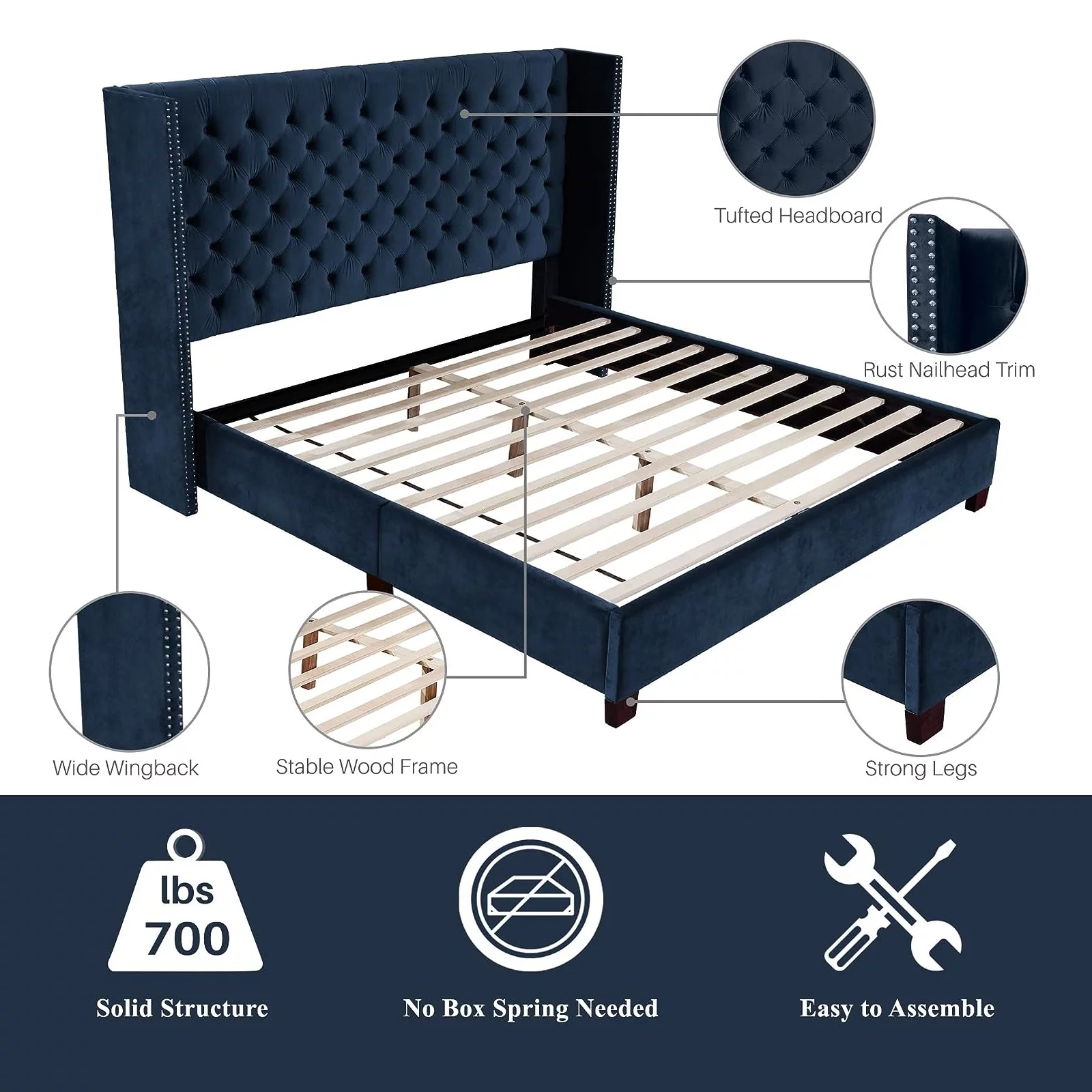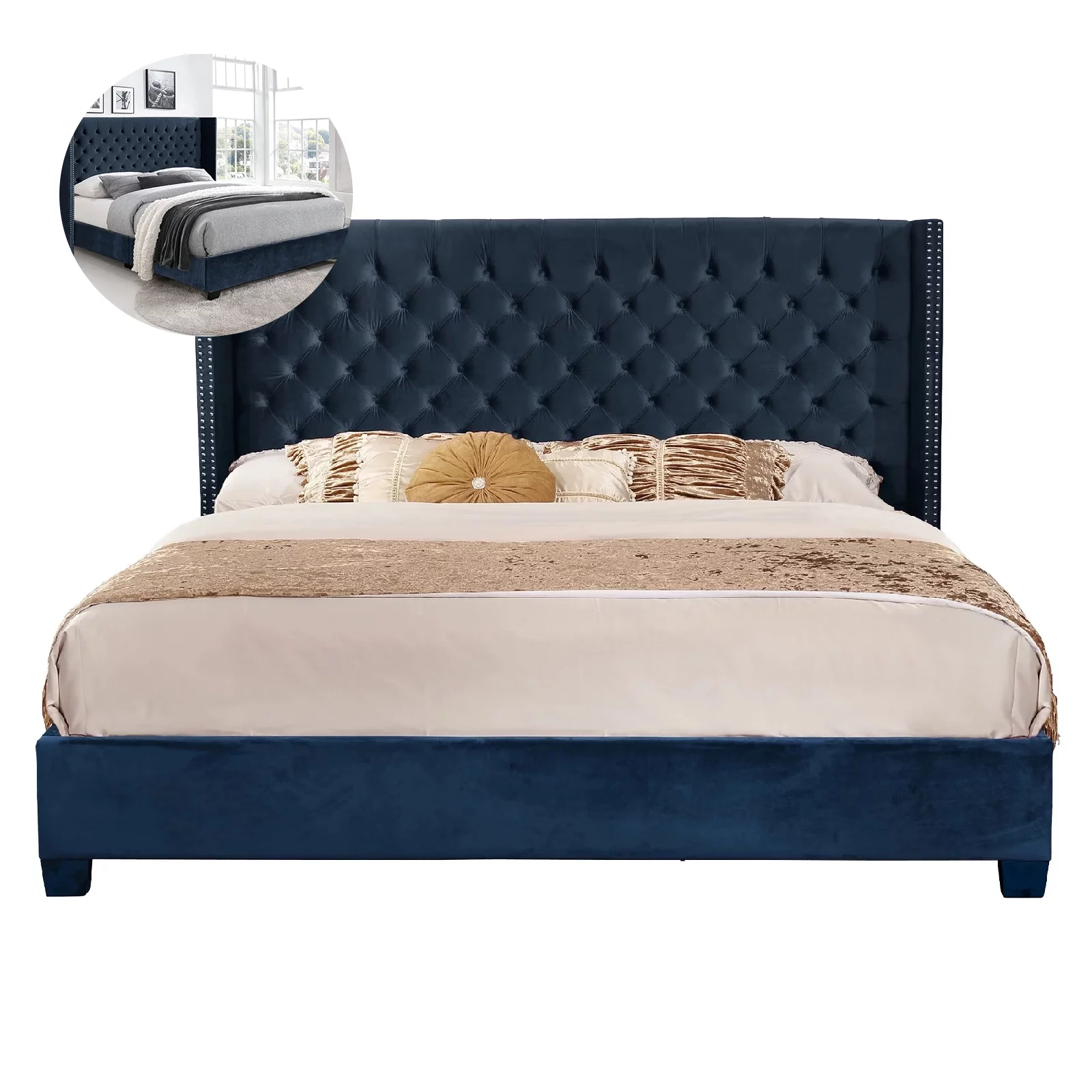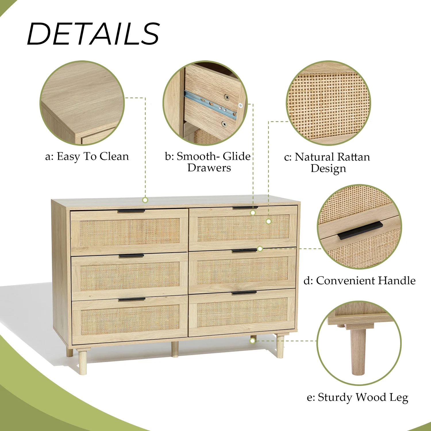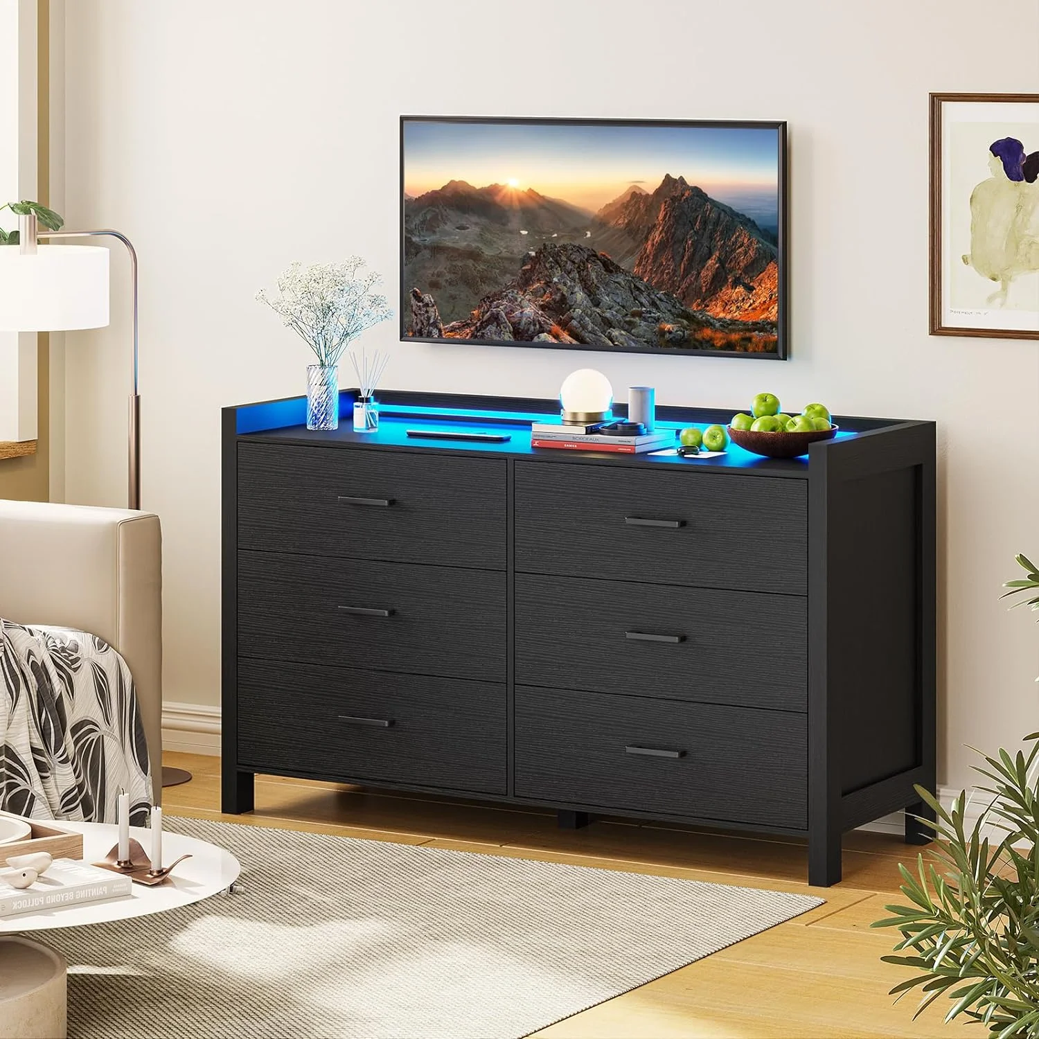 Dresser 6 Drawer Wood Dresser for Bedroom with Storage Modern Gold Navy Blue