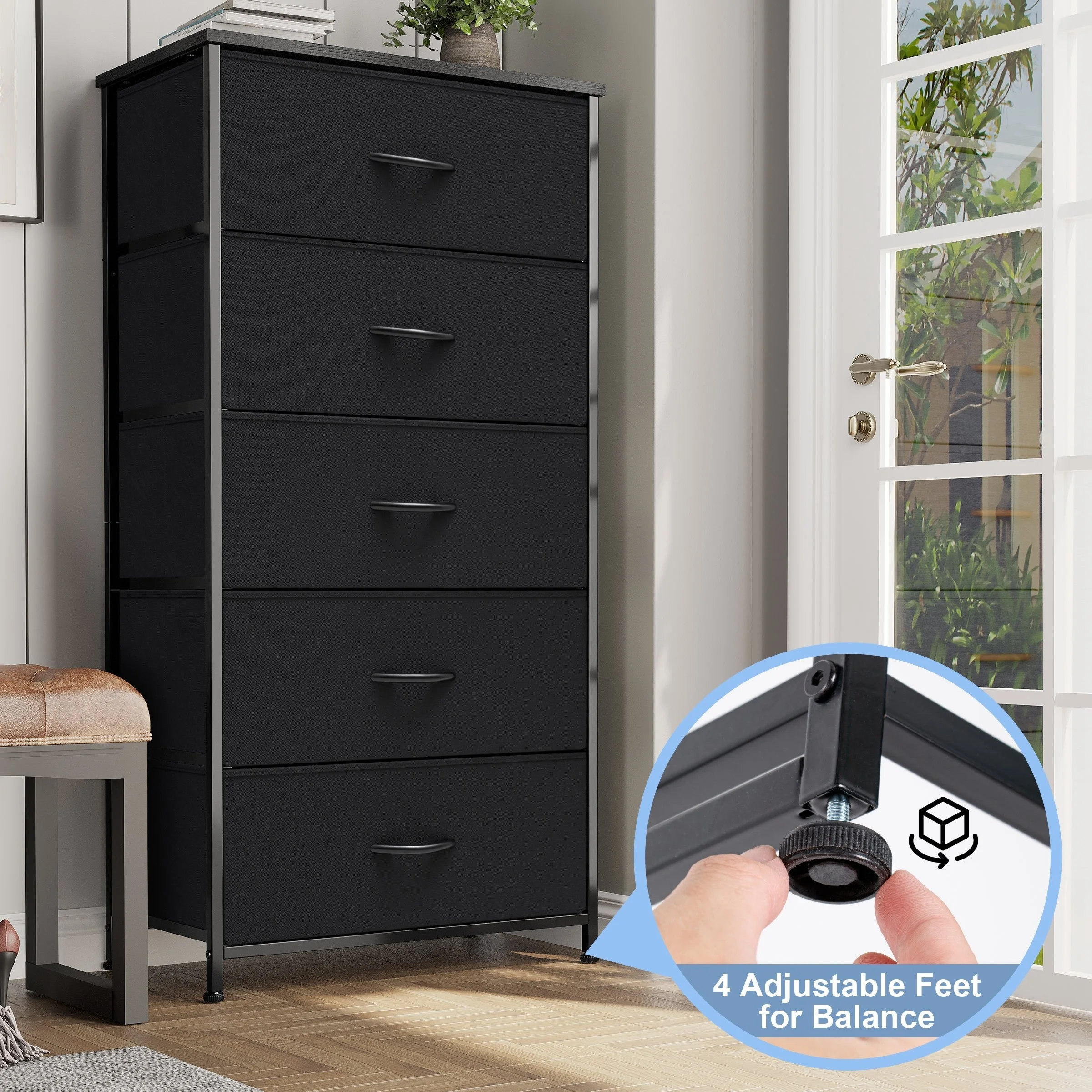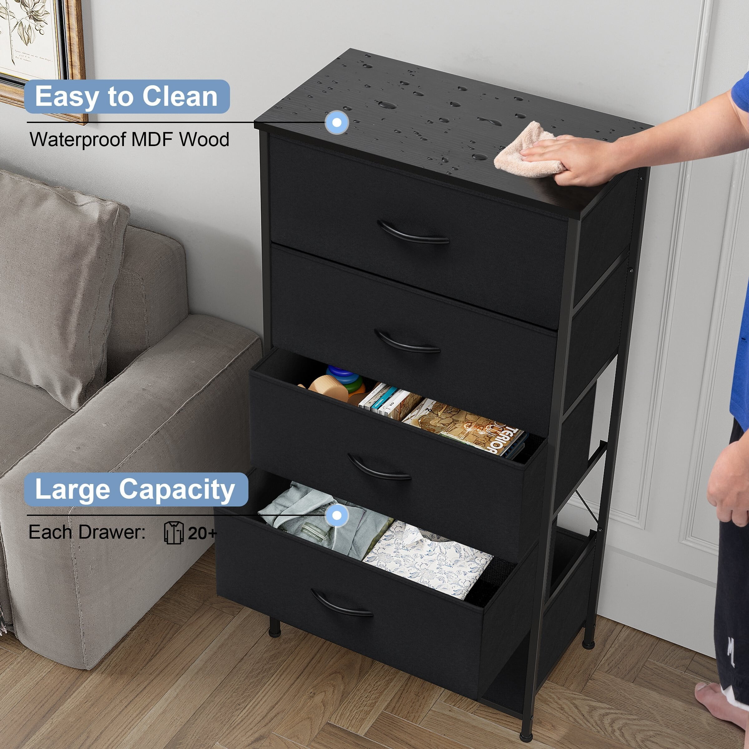 Crestlive Products 5 Drawers Vertical Dresser Storage Tower Organizer Unit for Bedroom Black Dark Wood