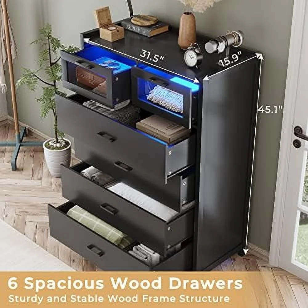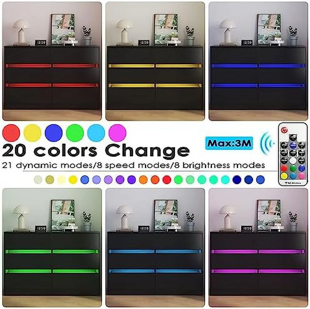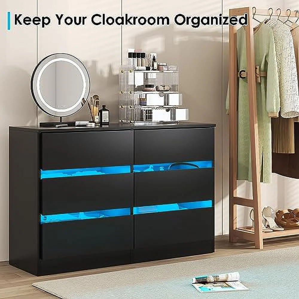 Afuhokles 4 Drawer Dresser for Bedroom with Clothing Rack, Dressers and Chests of Drawers with LED Lights, White
