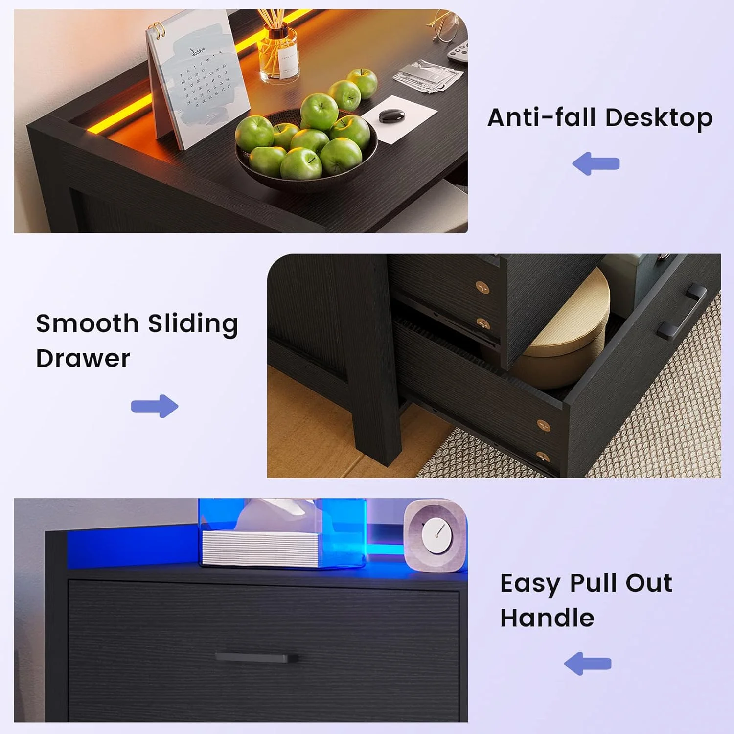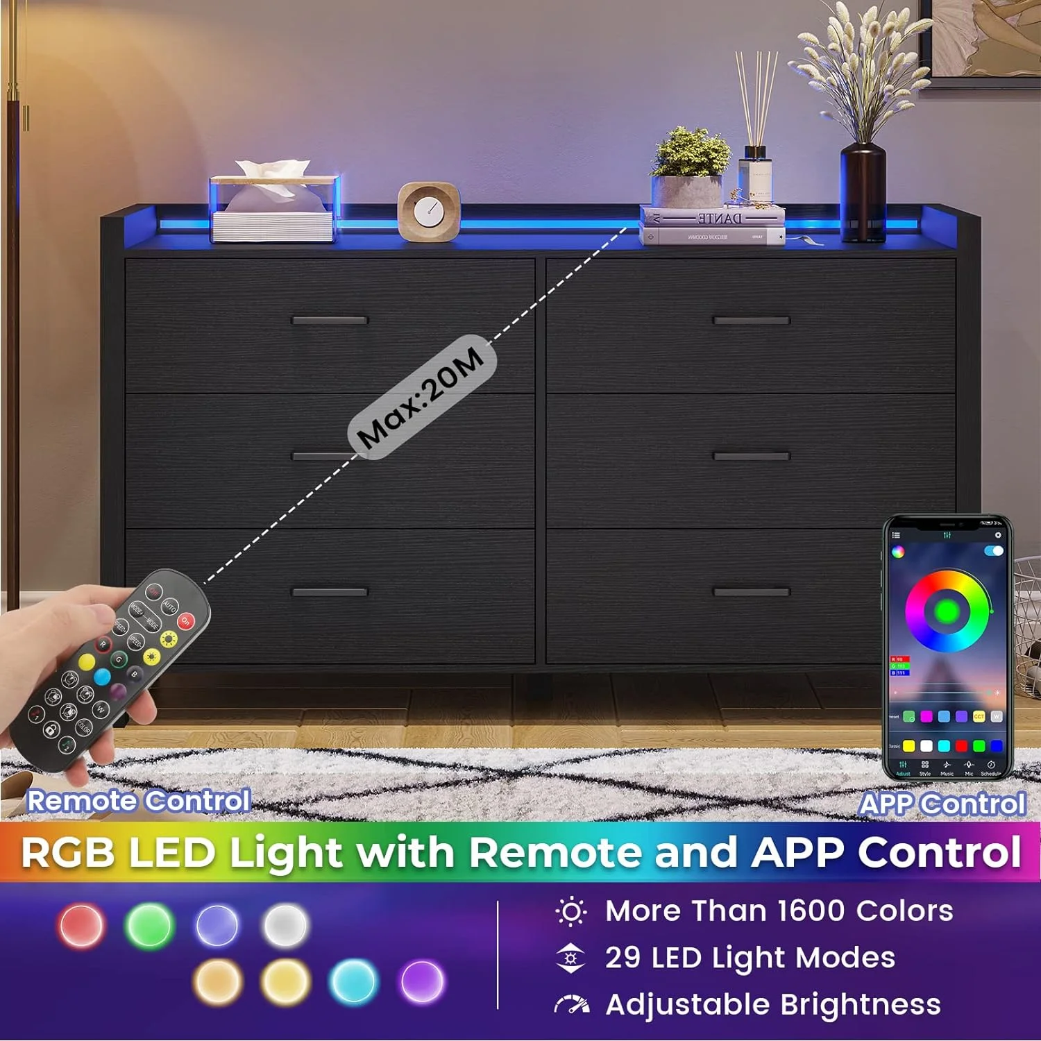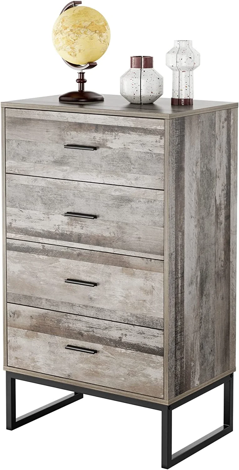 Afuhokles 4 Drawer Dresser for Bedroom with Clothing Rack, Dressers and Chests of Drawers with LED Lights, White