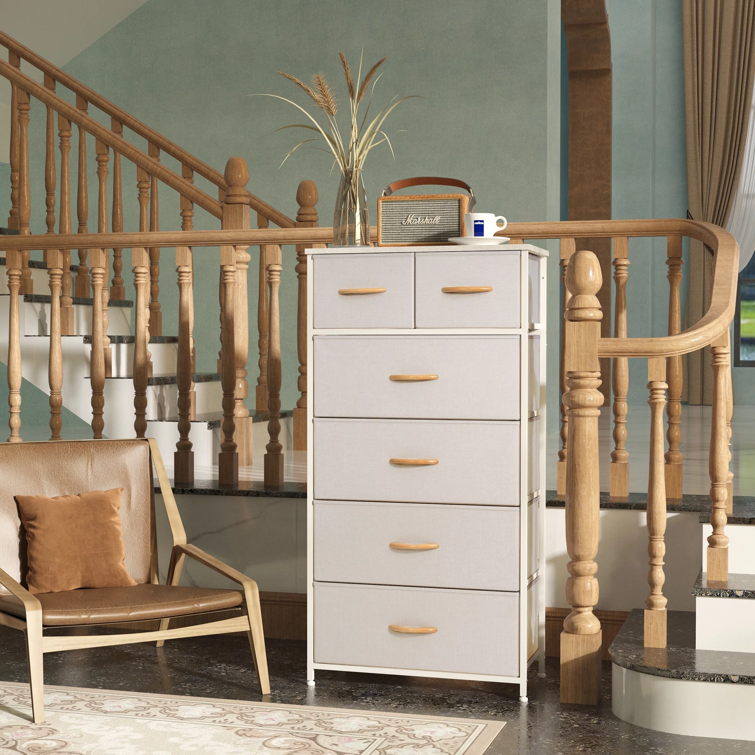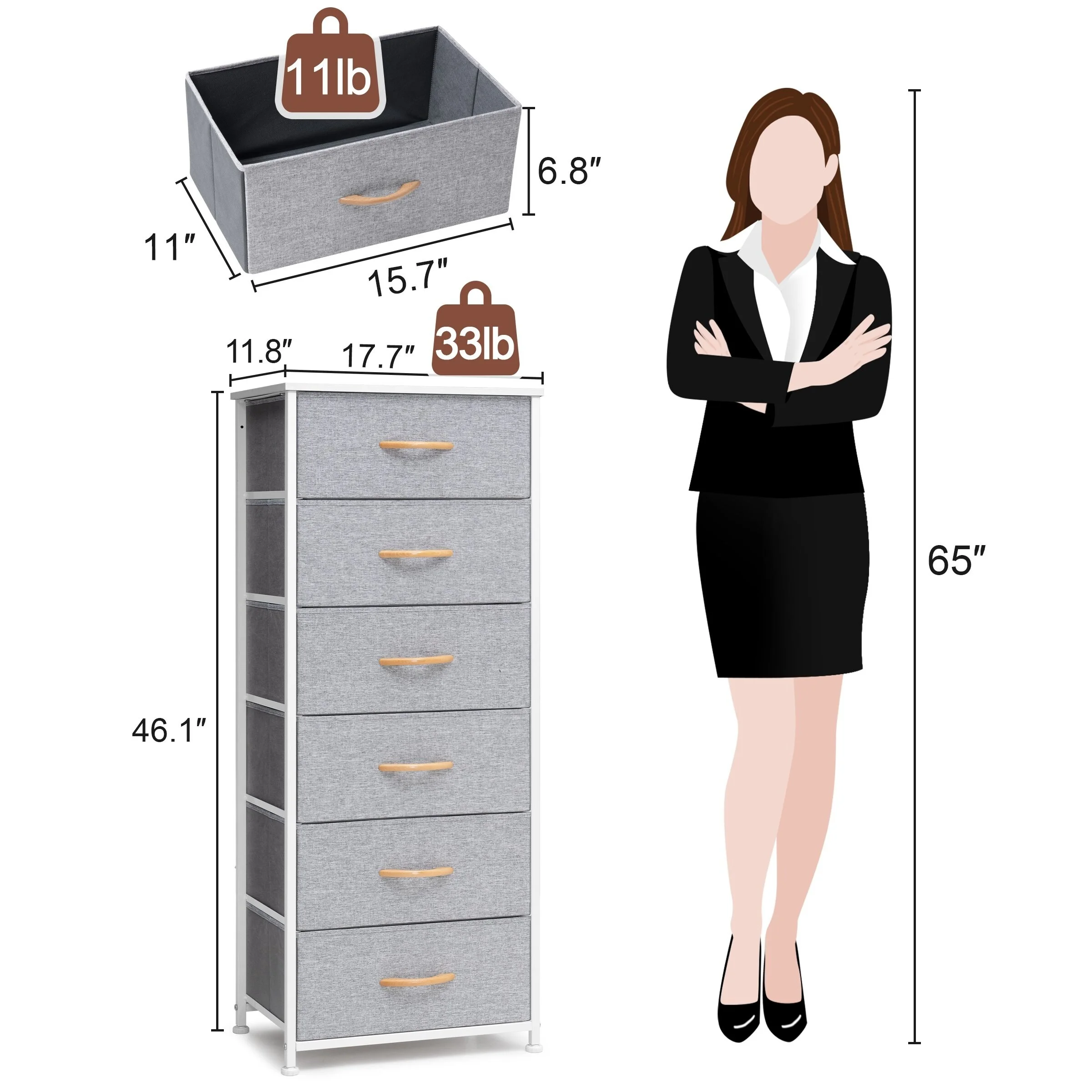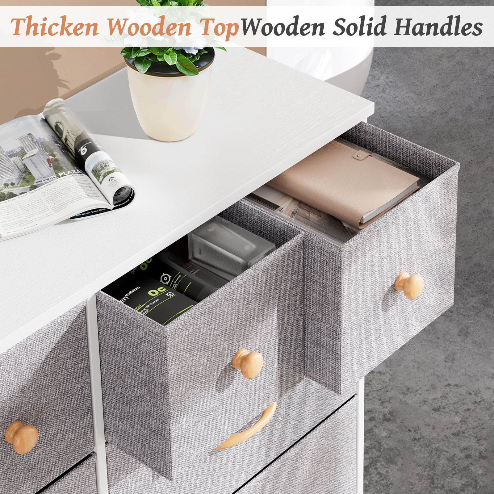 Crestlive Products Vertical Dresser Storage Tower with Wood Top Light Gray Light Wood