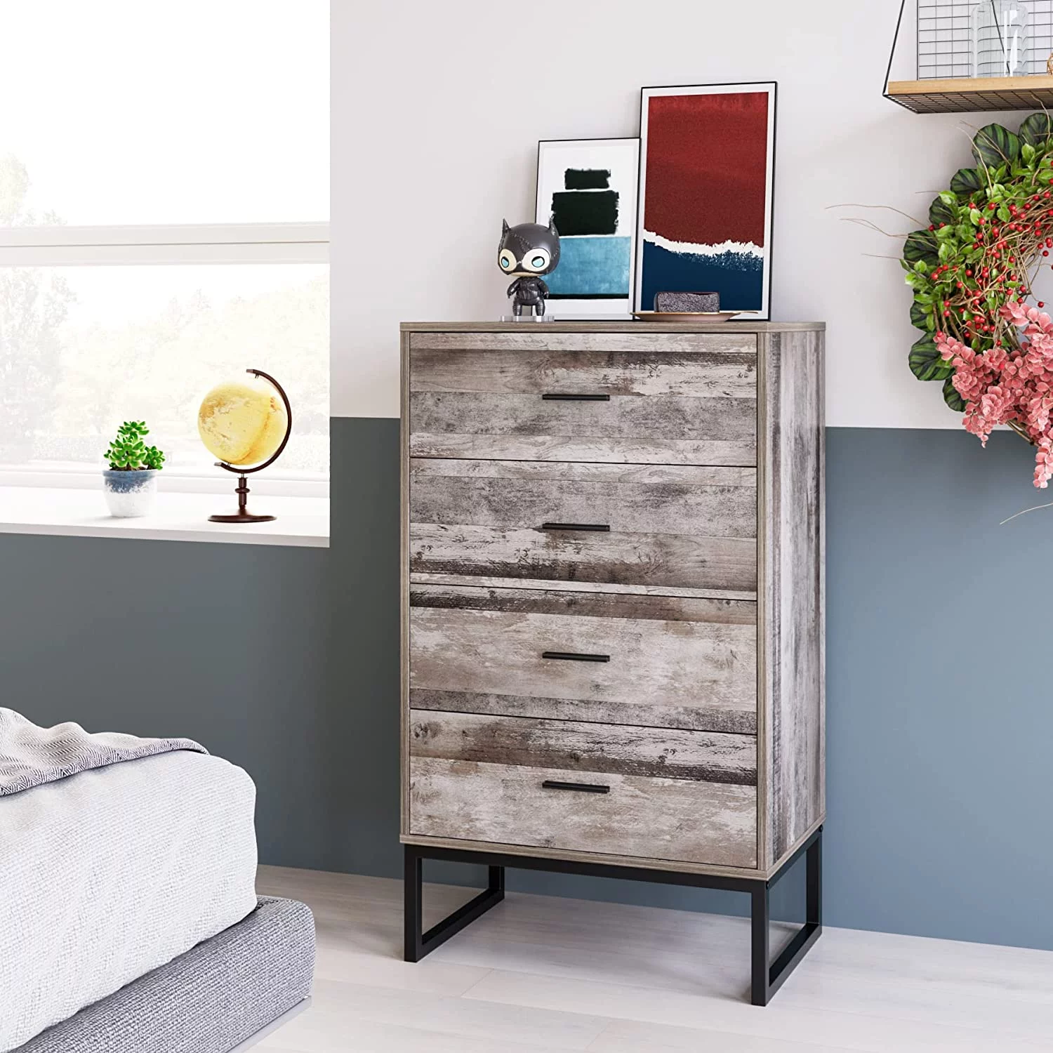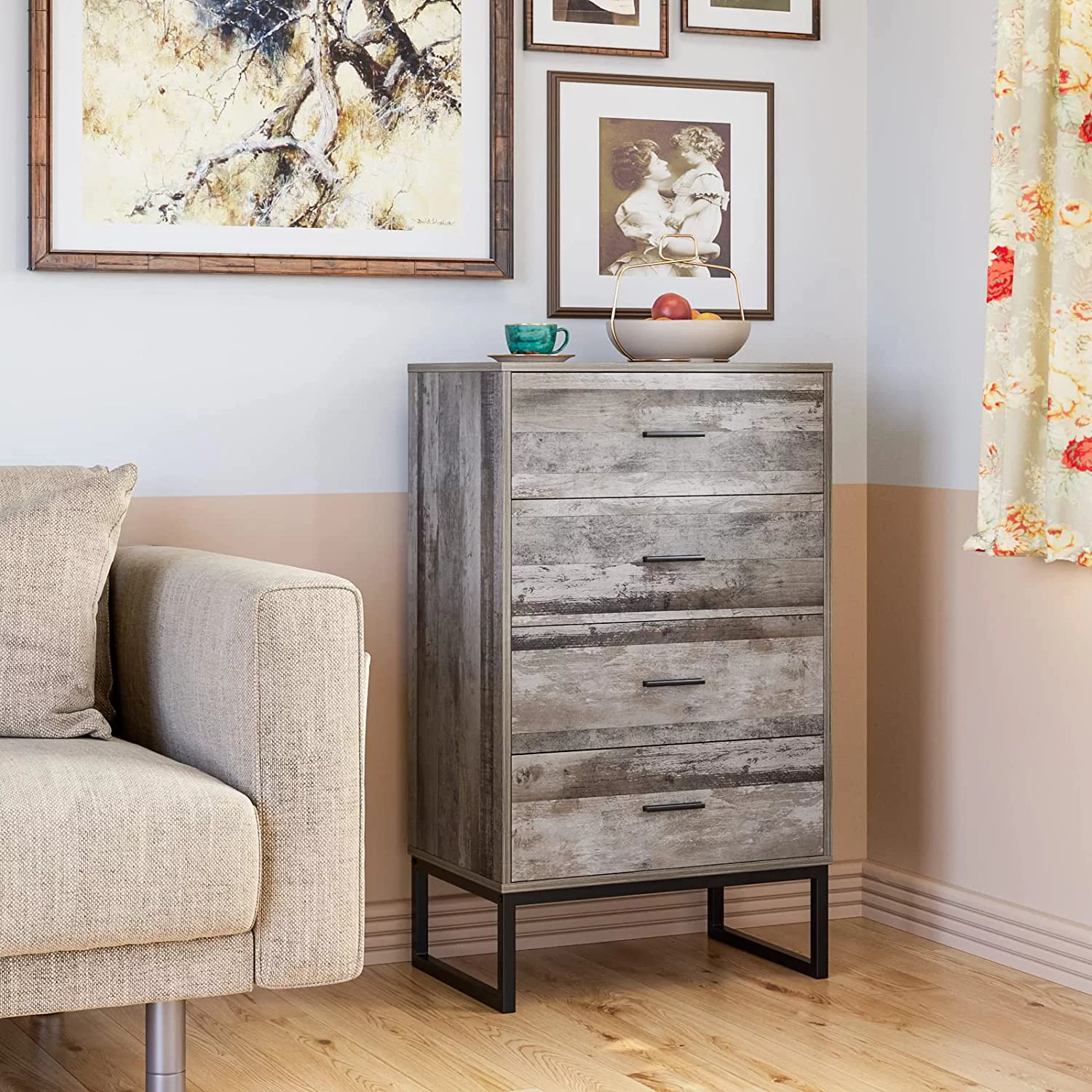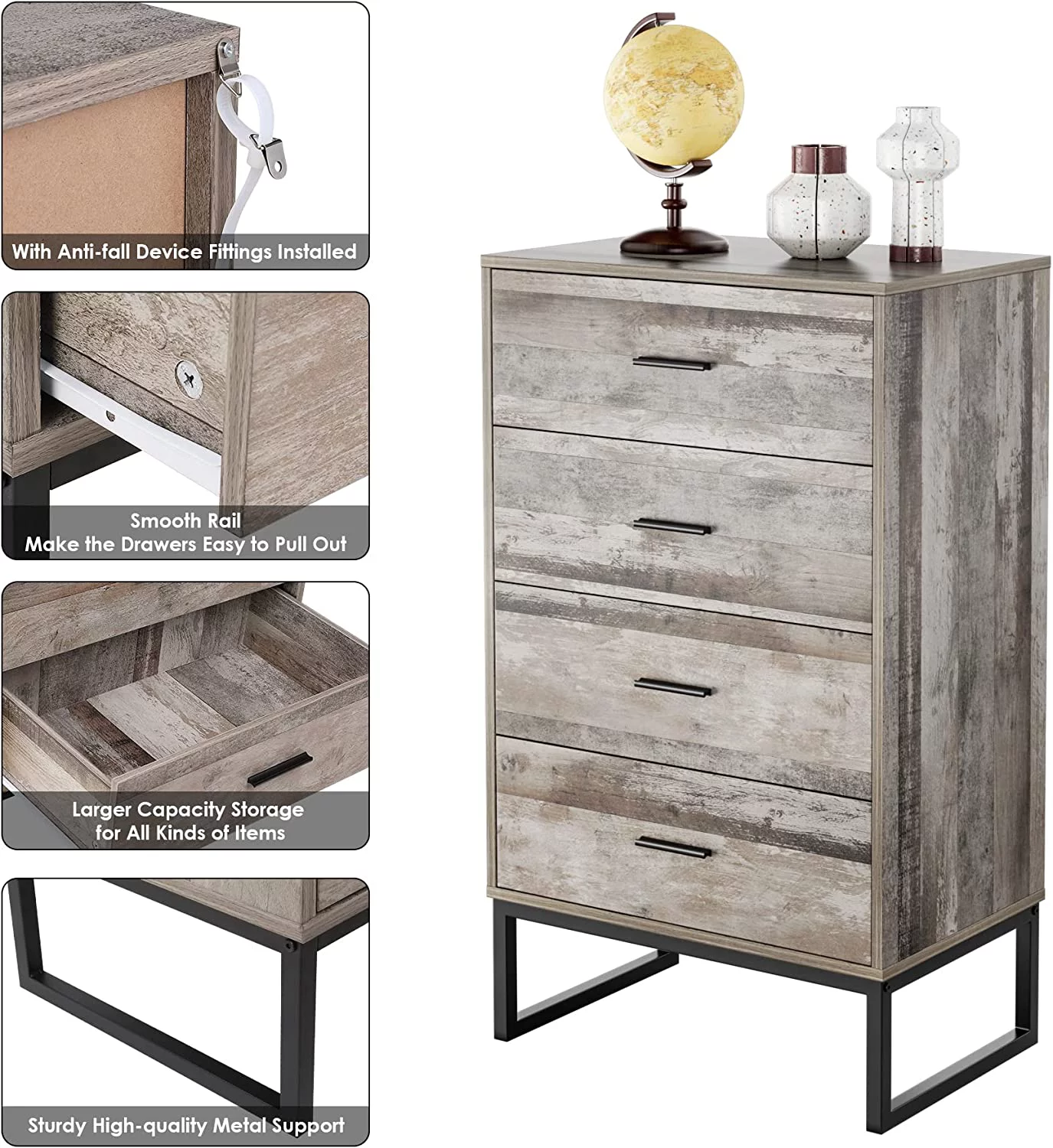 Crestlive Products Vertical Dresser Storage Tower with Wood Top Light Gray Light Wood