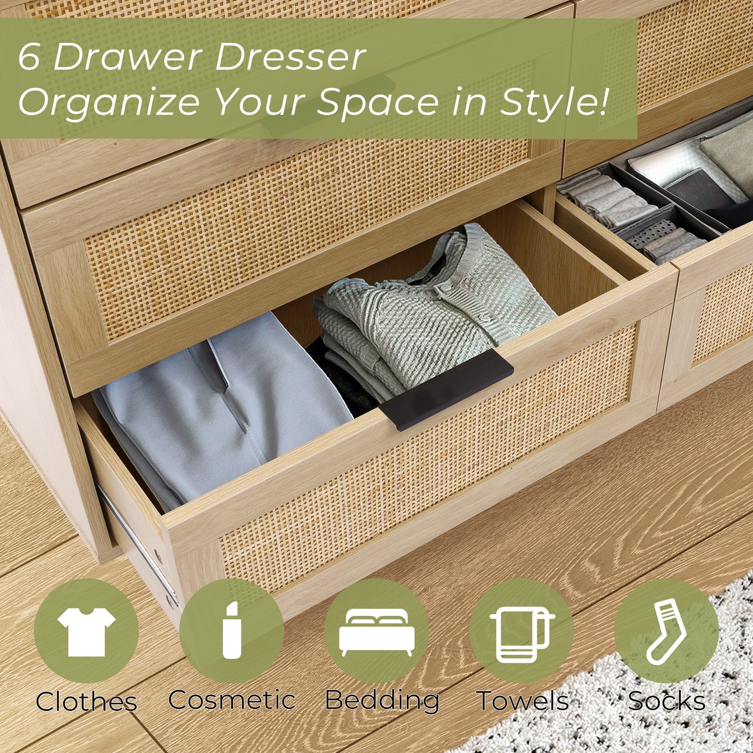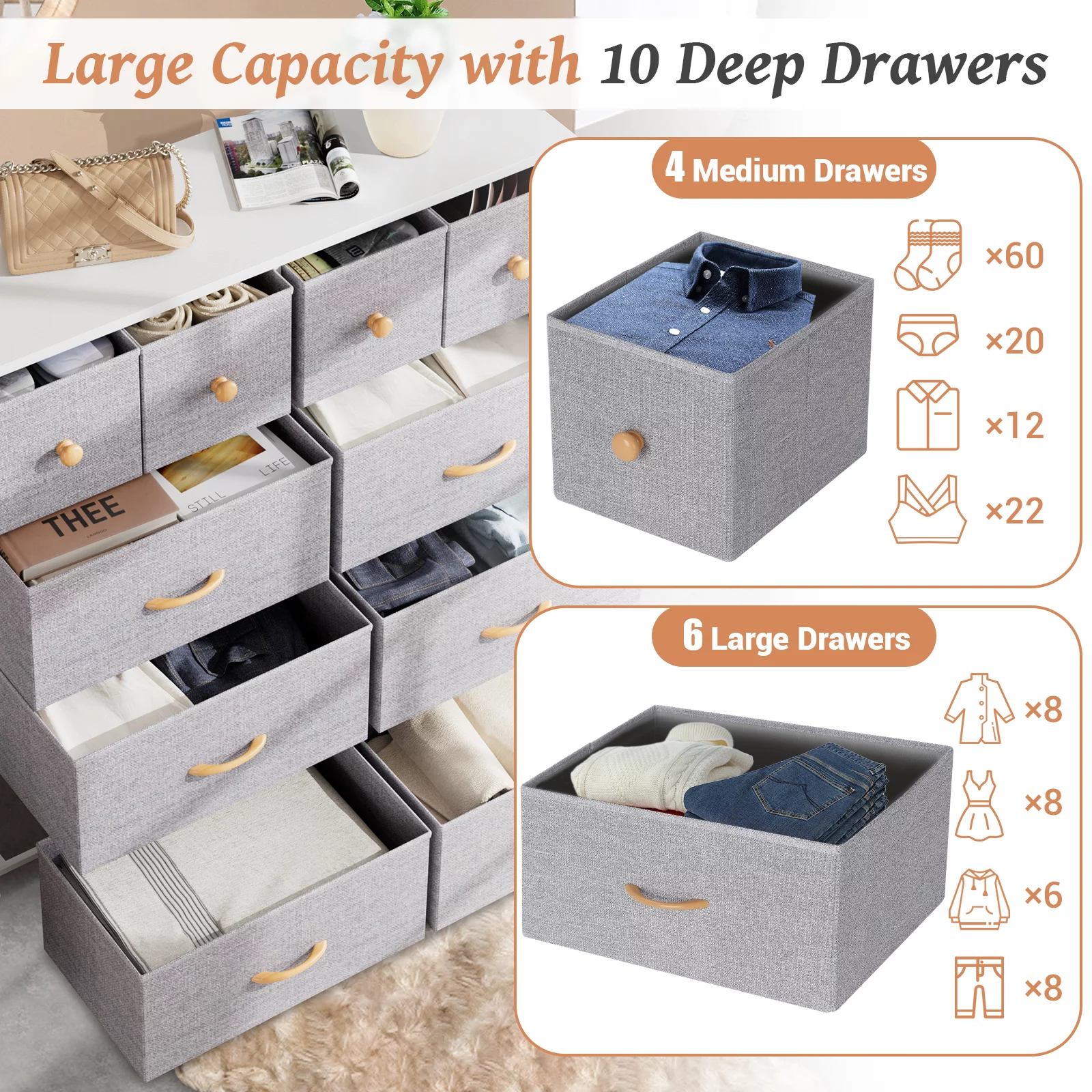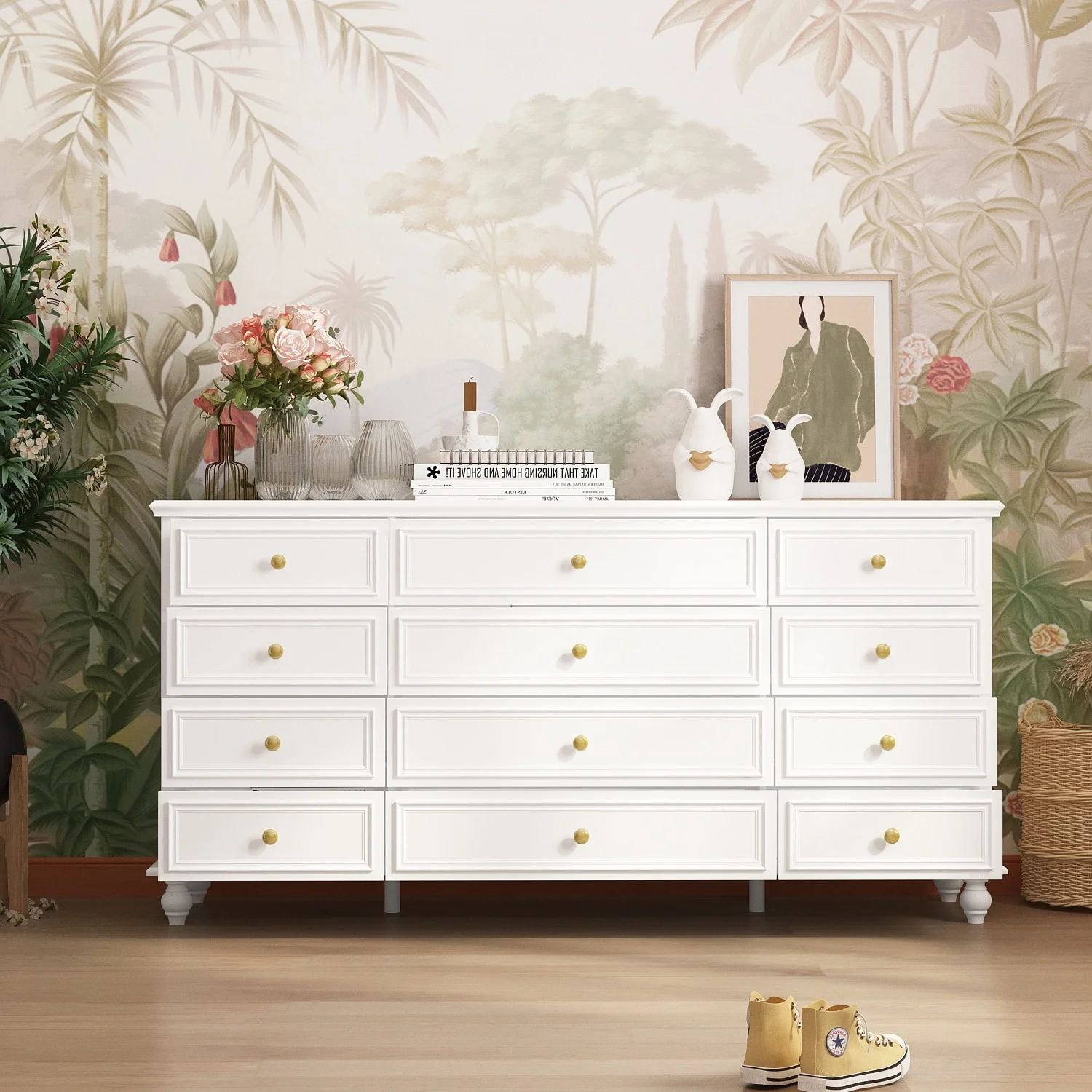 Modern Wood Dresser Bedroom Storage Drawer Organizer Closet Drawers White 12-drawer