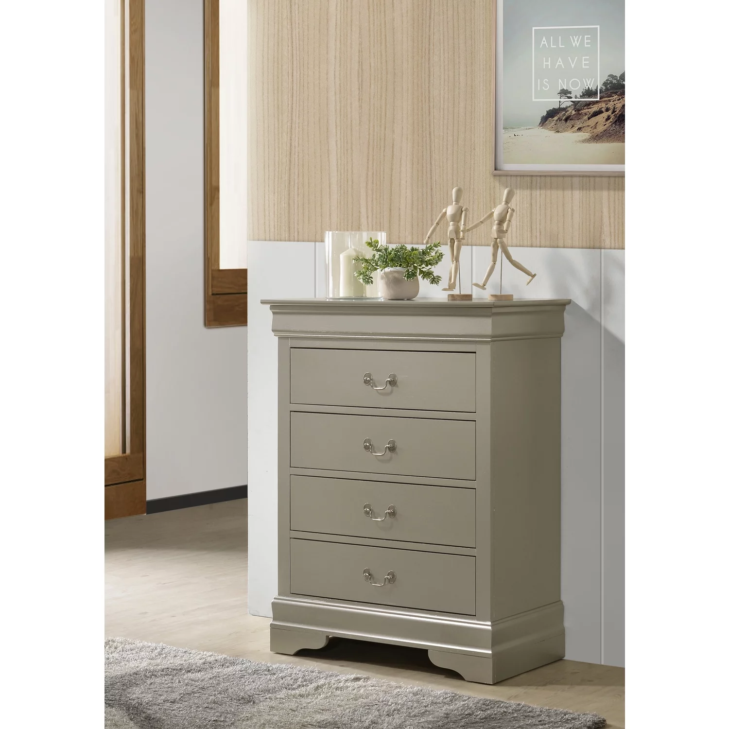 Glory Furniture Louis Phillipe G3103-BC 4 Drawer Chest , Silver Champagne