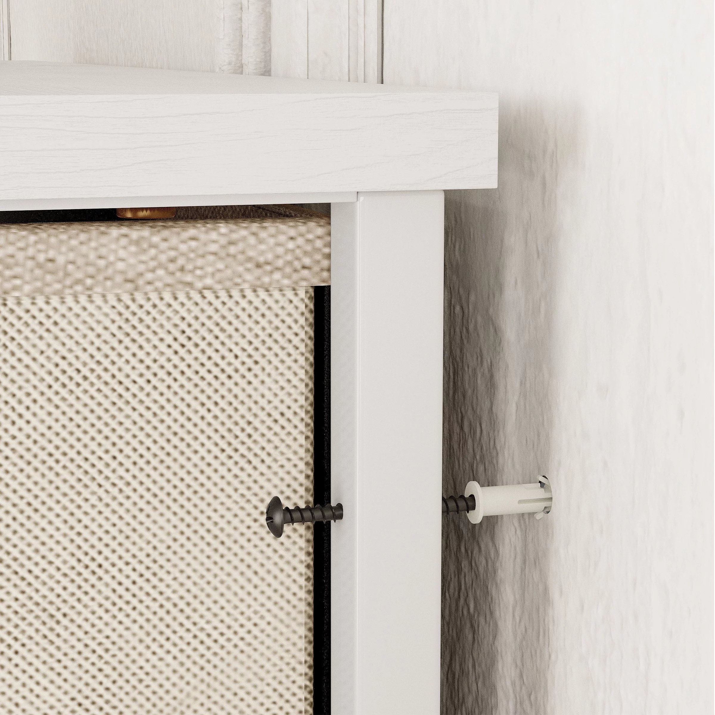OKD 48" Wide Farmhouse White 4-Drawer Dresser Chests Organizer with Barn Door for Bedroom, Living Room