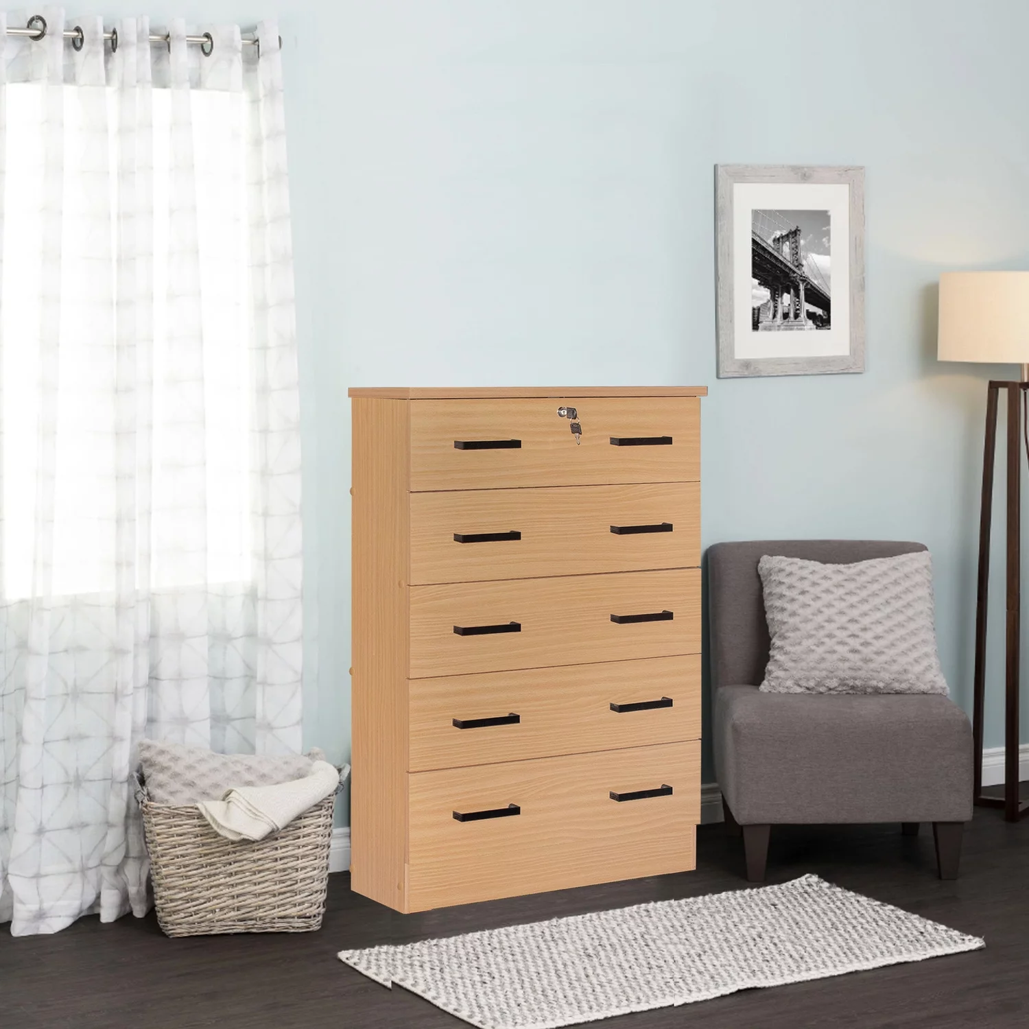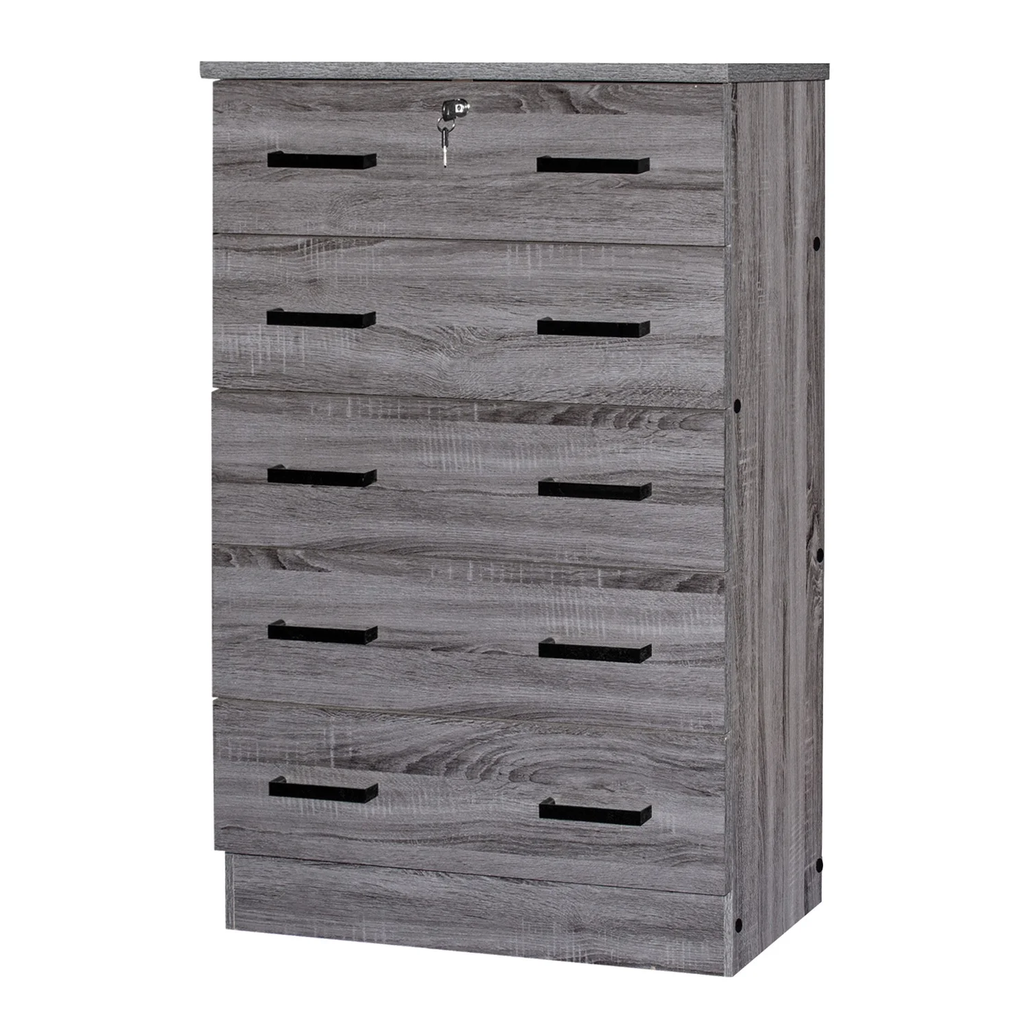 Better Home Products 5 Drawer Chest Dresser Wooden Storage Unit with Lock