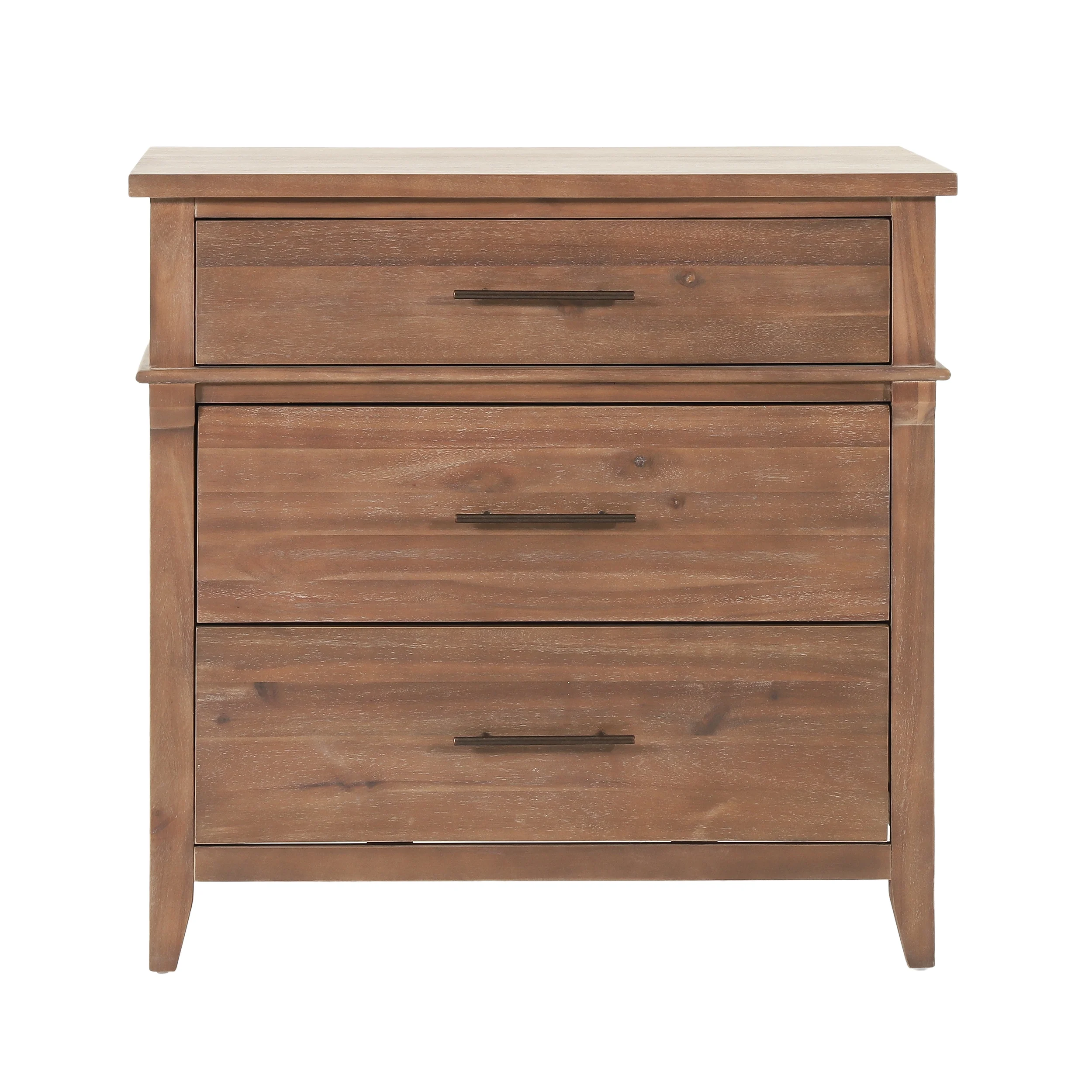 GDF Studio OkiOki Coastal Acacia Wood 3 Drawer Dresser, Light Brown Glaze