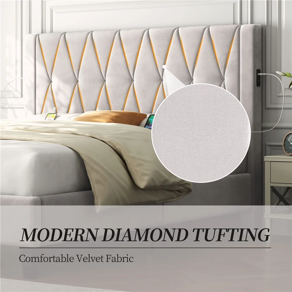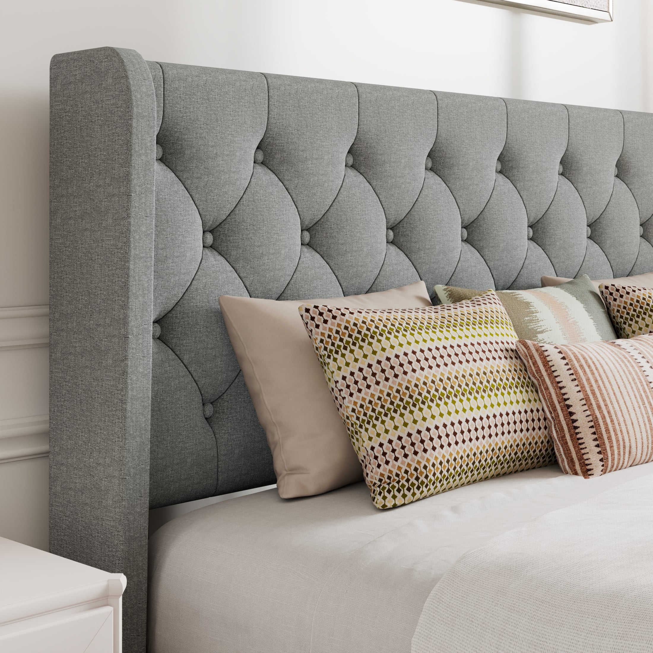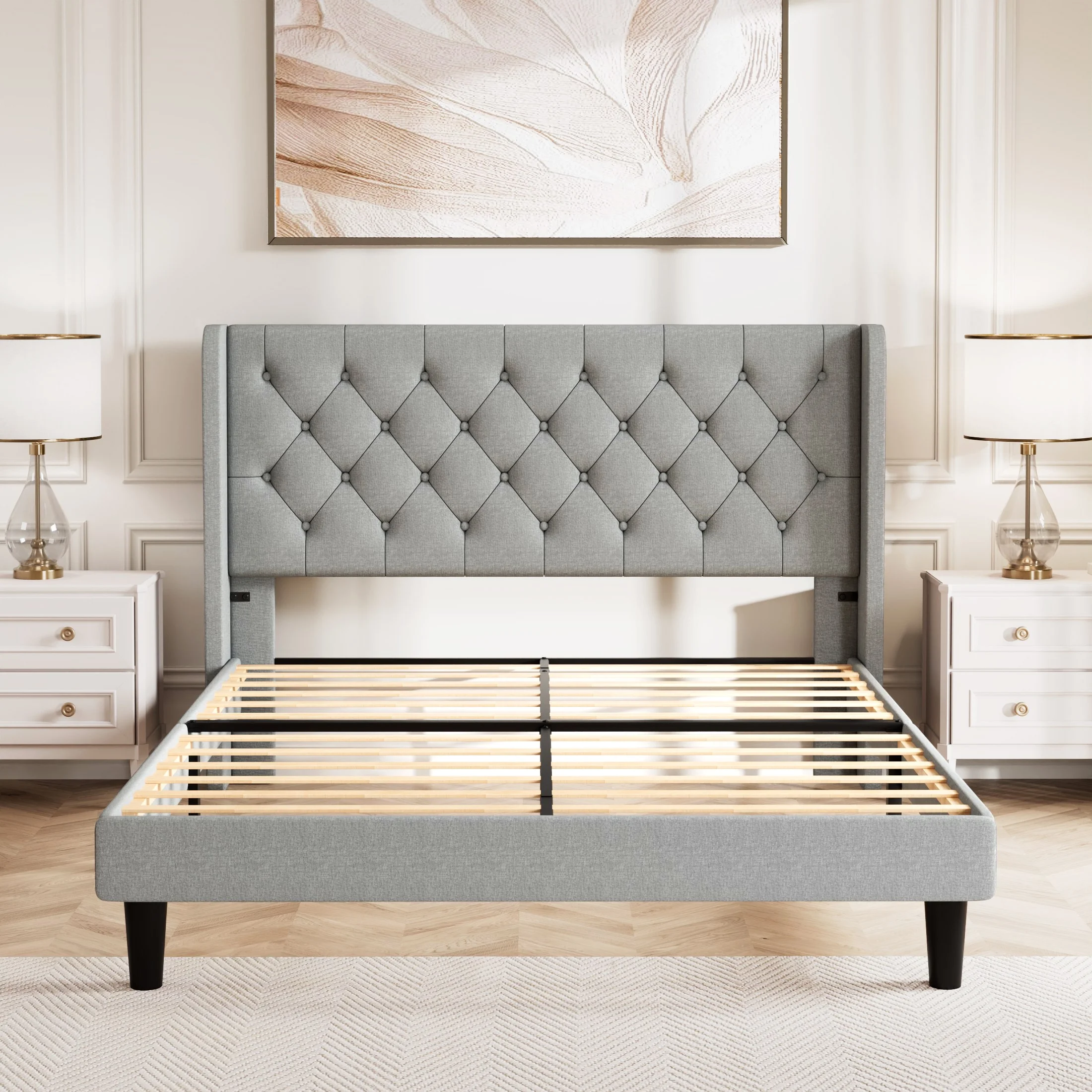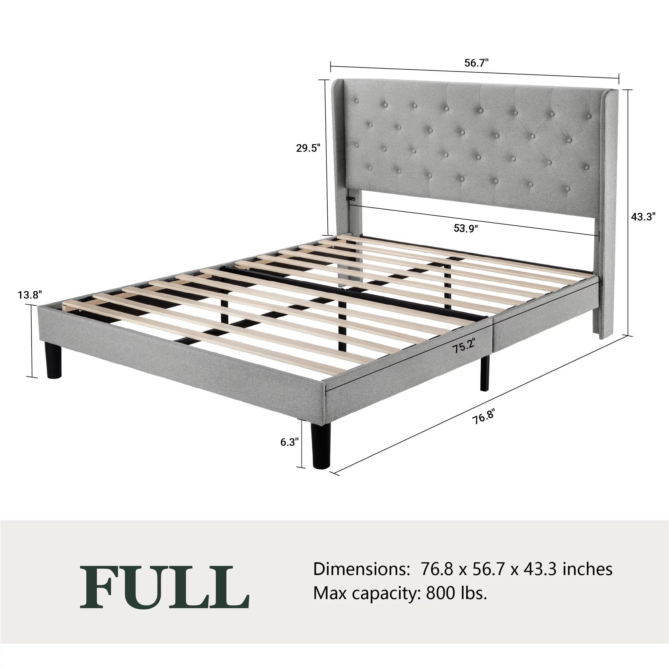 Amolife Full Size Fabric Diamond Upholstered Platform Bed Frame with Deluxe Wingback, Light Grey